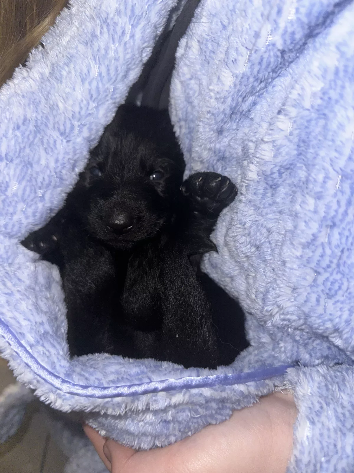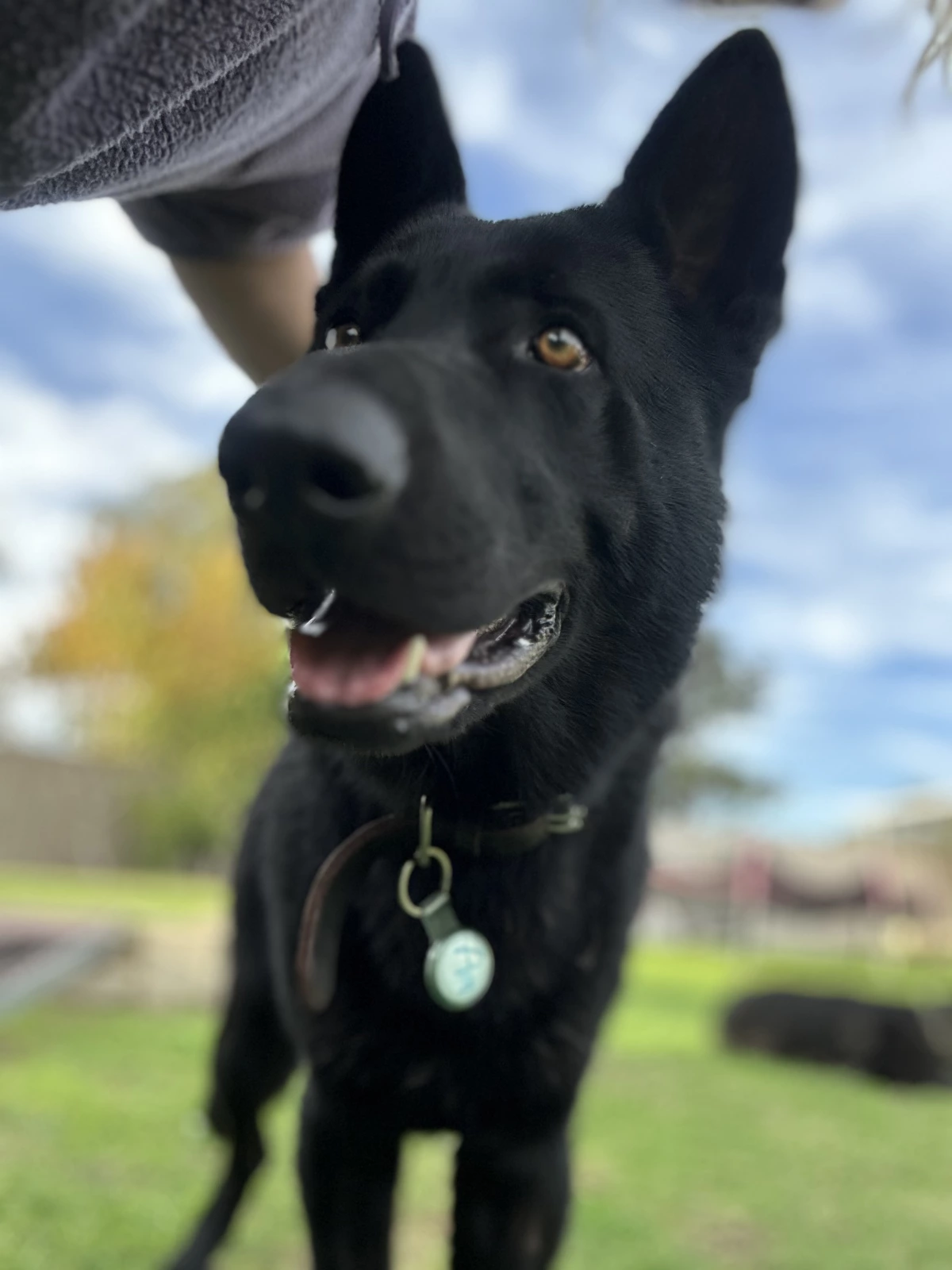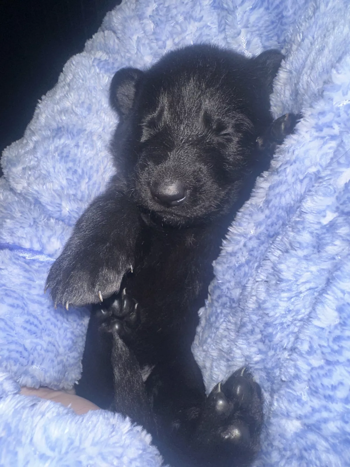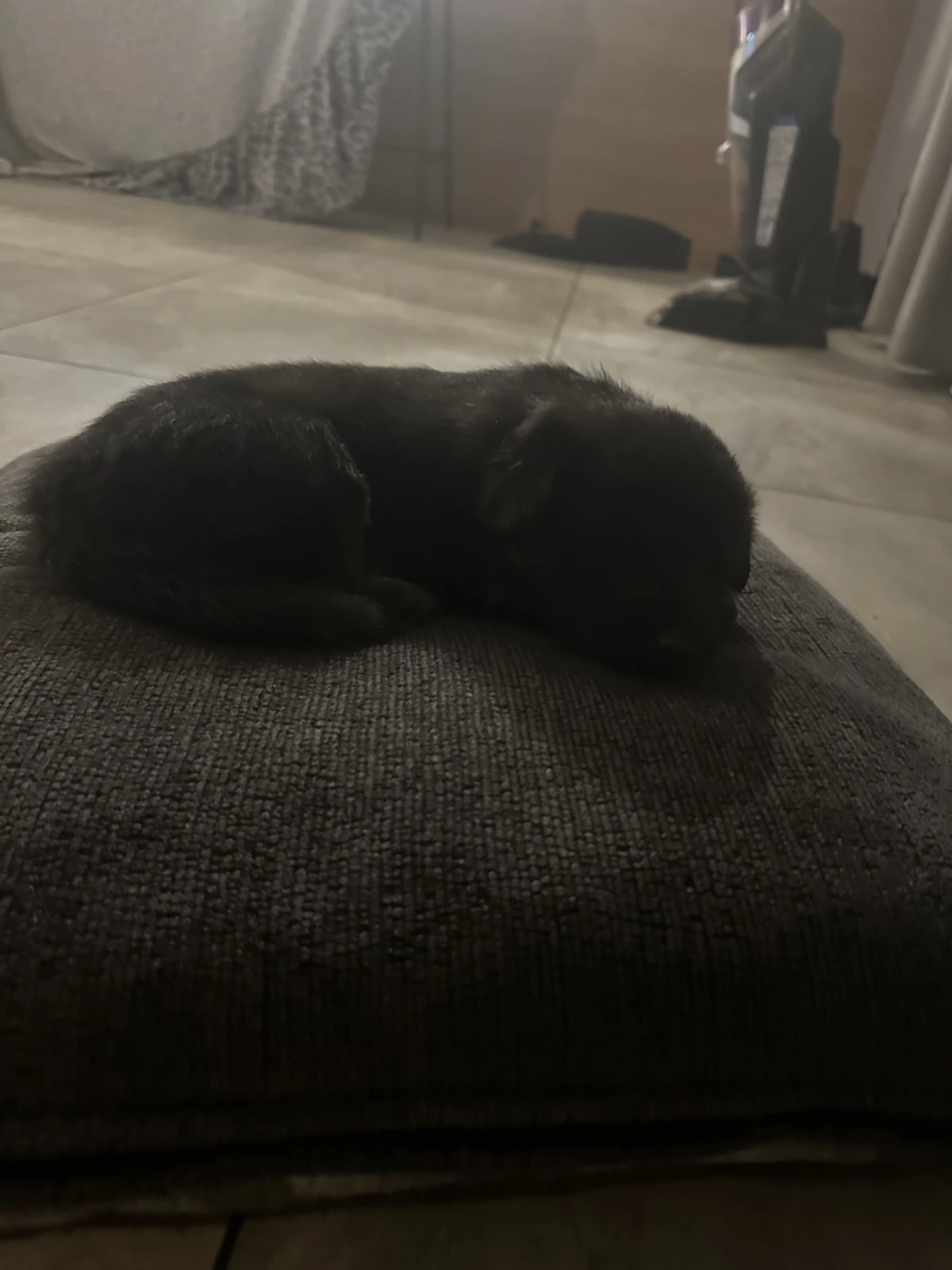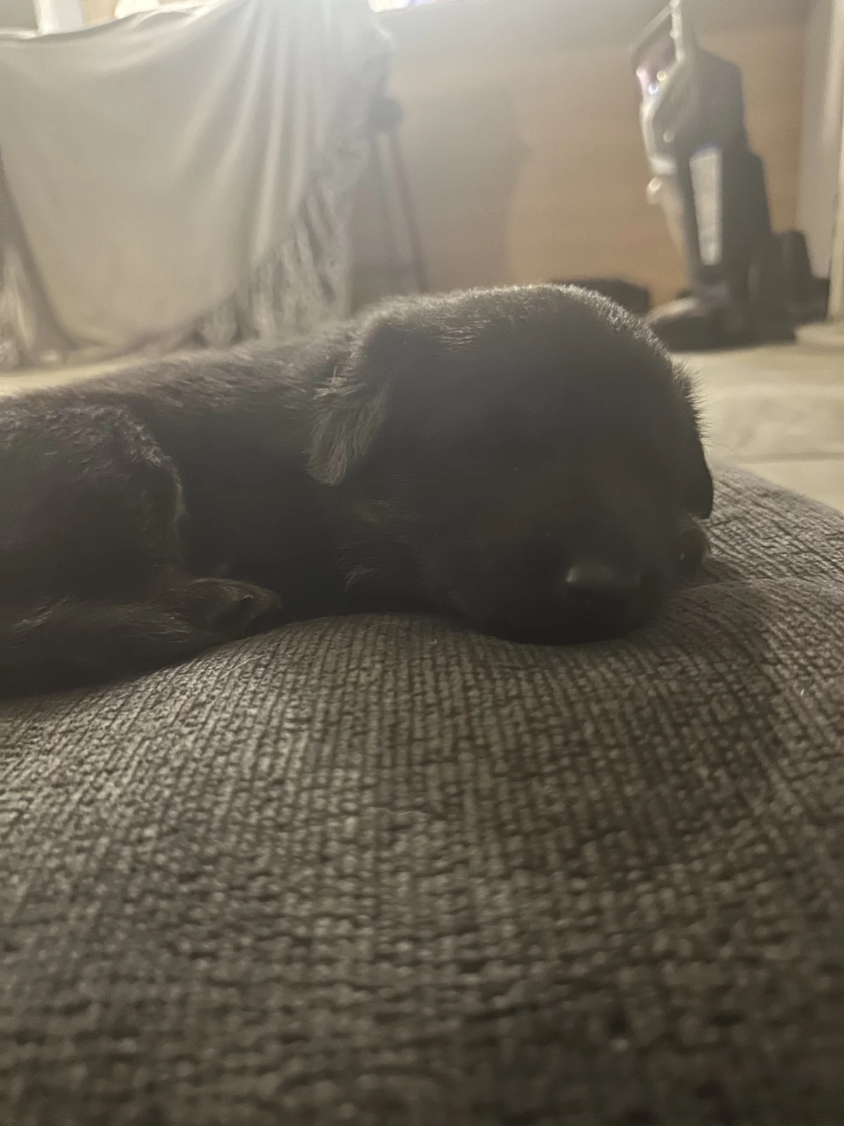Dad is a pedigree black German Shepherd trained in protection. He is fit and healthy and has no skin or joint issues- available to view (pictured black adult short coat)