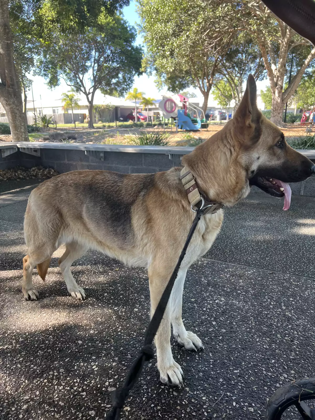 Mum is our German shepherd who is almost 3 years old. She’s a lovely family member with quite a bit of character to her. She loves water and loves her ball. She’s a beautiful tan GSD with flecks of black. Her mum is sable and her dad white. She averages around 30kgs.