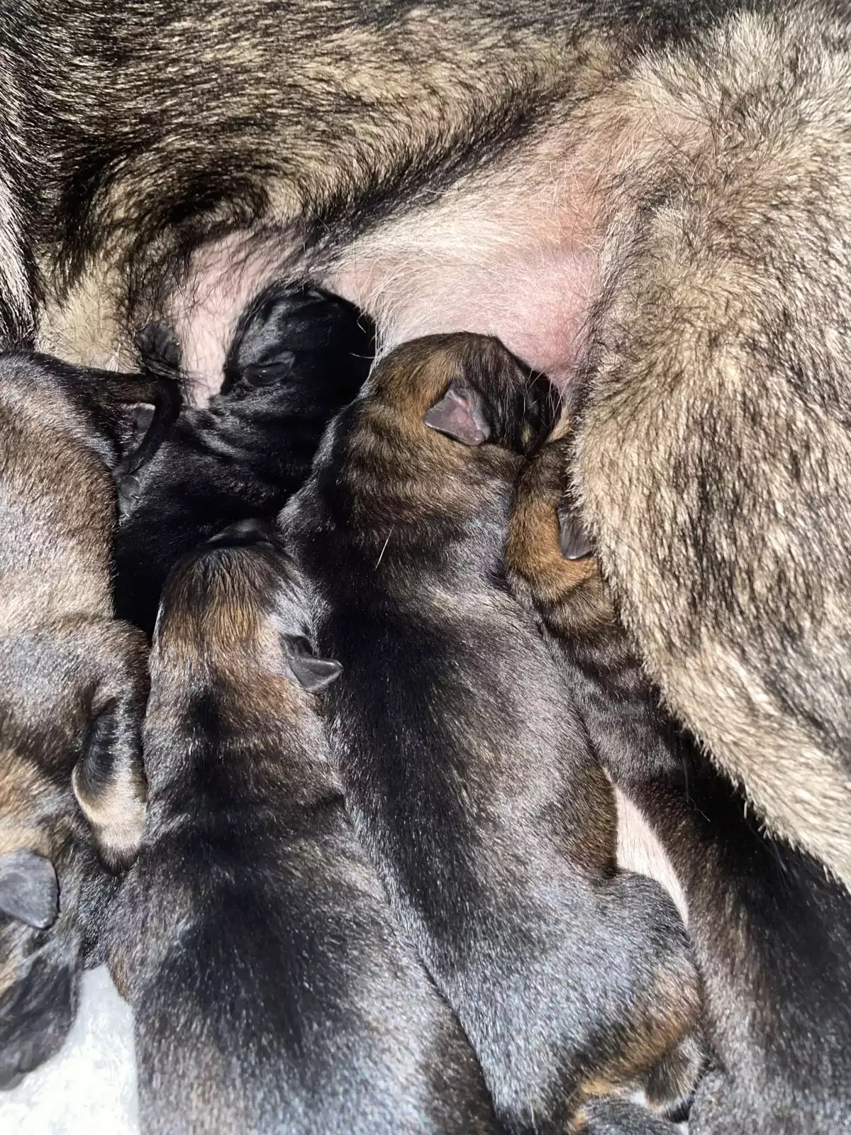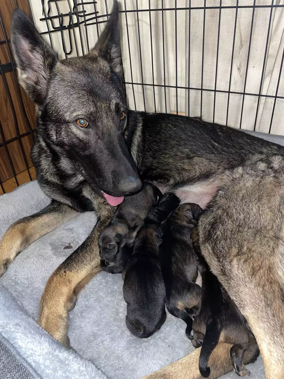 There are 4 girls and 2 boys in the litter. Five puppies are sable in colour and one is black and tan. Mum is a sable German Shepherd, and dad is black and tan. All puppies will have their vet work completed at approximately 6–8 weeks, including a full health check. Deposits will be taken once the puppies are 2 weeks old to secure your chosen pup. Raised in a loving environment and growing well.