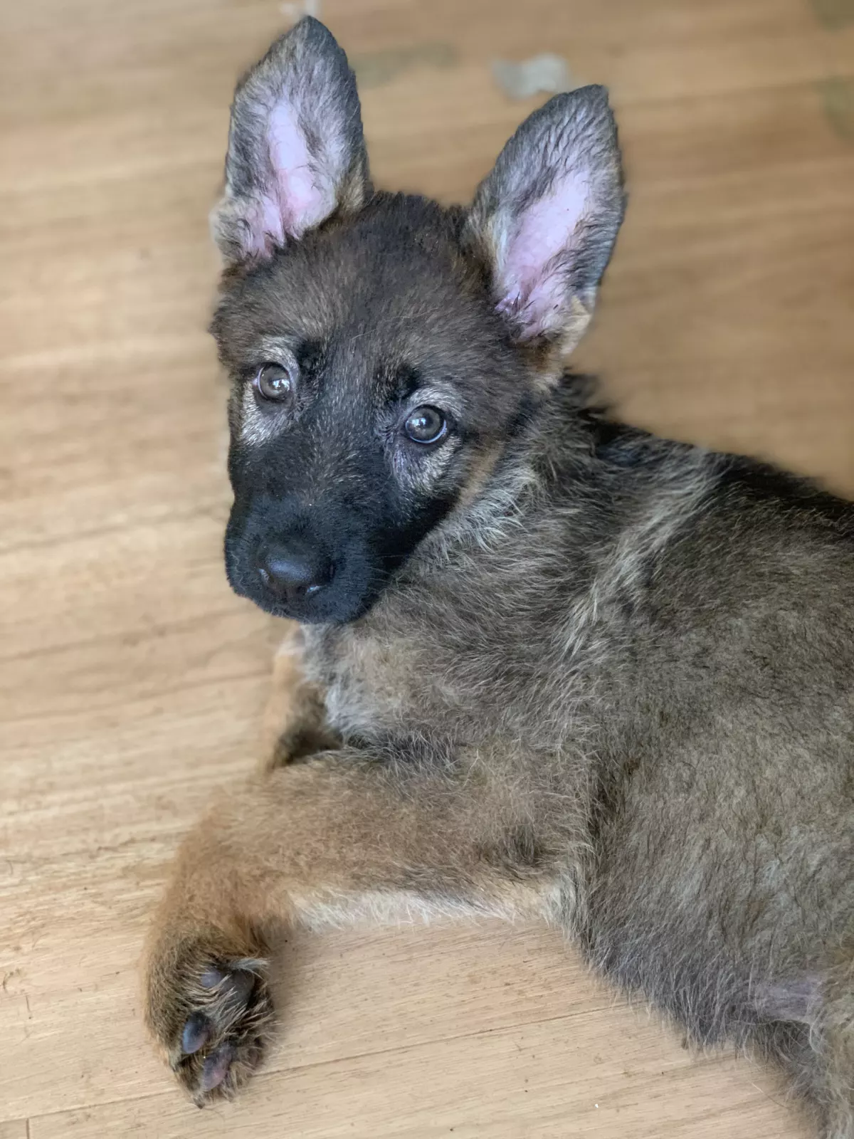 The dad is a short coat sable German Shepherd. He is a very sweet boy and has been a delight to train. He absolutely loves attention.