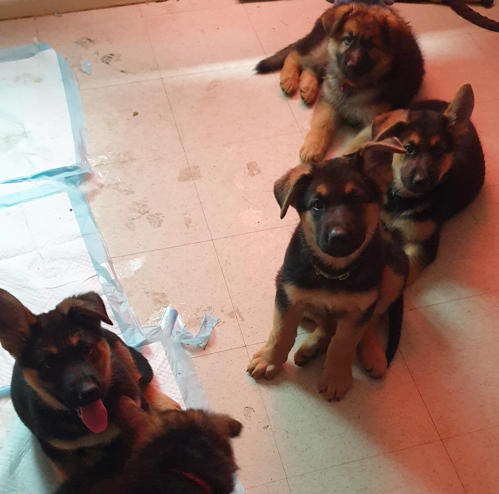 Dad is a beautiful long-haired German Shepherd and mum is a stunning short-haired girl. Only short-haired puppies are still available. We currently have 2 females and 2 males ready for loving homes. These pups are well socialised, playful and eager to learn. They will make fantastic companions and guard dogs.
