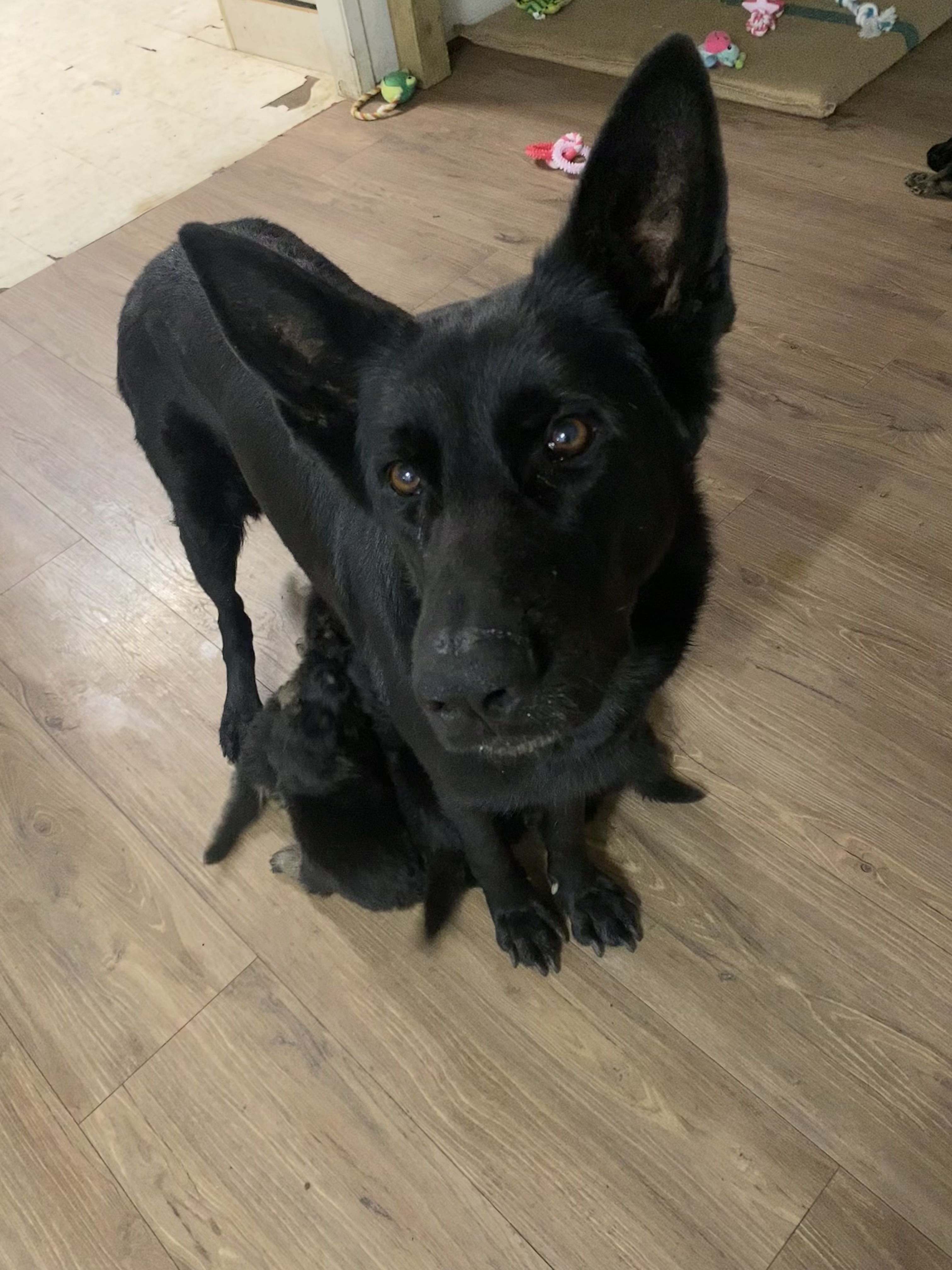 Mum: Pedigree pure black working-line German Shepherd - loyal, intelligent, athletic, excellent temperament and calm in the home.