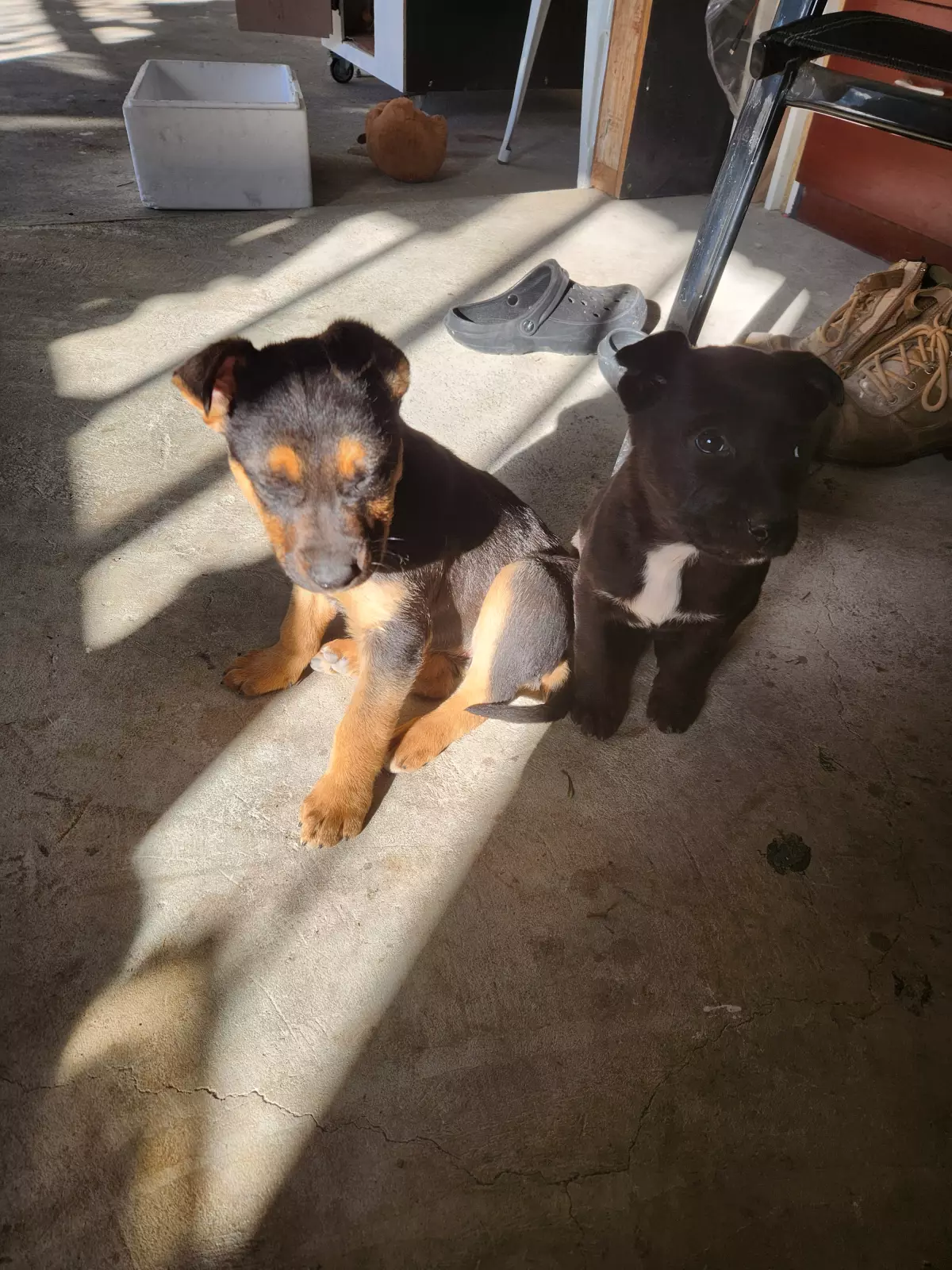 Both pups have a nice mix of breeds — strong like their dad and smart like their mum. They’ve been raised in a family home and are used to kids and other pets. Healthy, active and full of energy. Great temperaments and ready to join loving families, not a ton of space requirements. Please message for more info or photos.