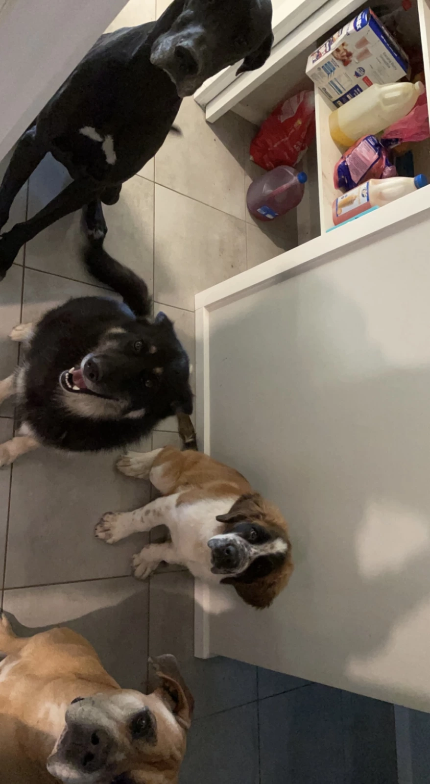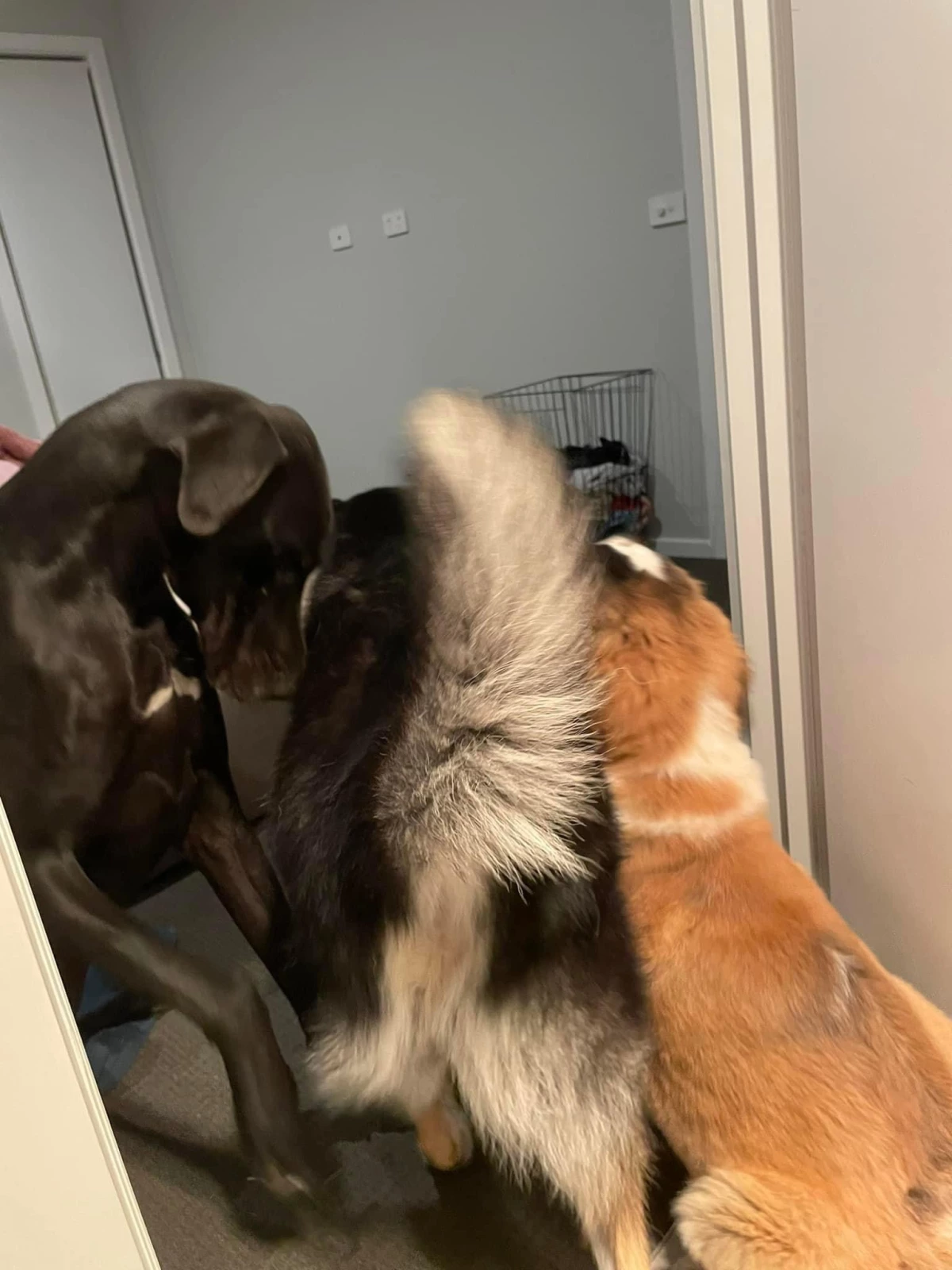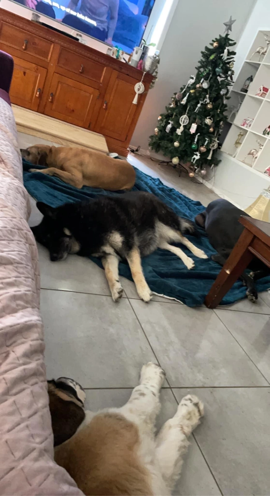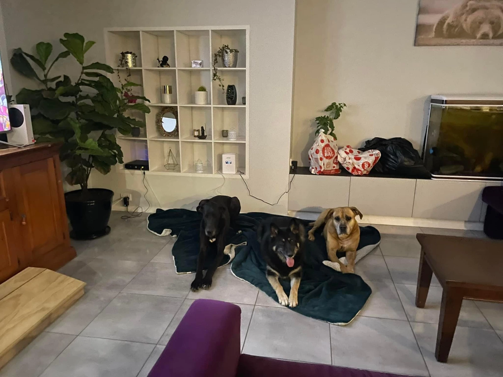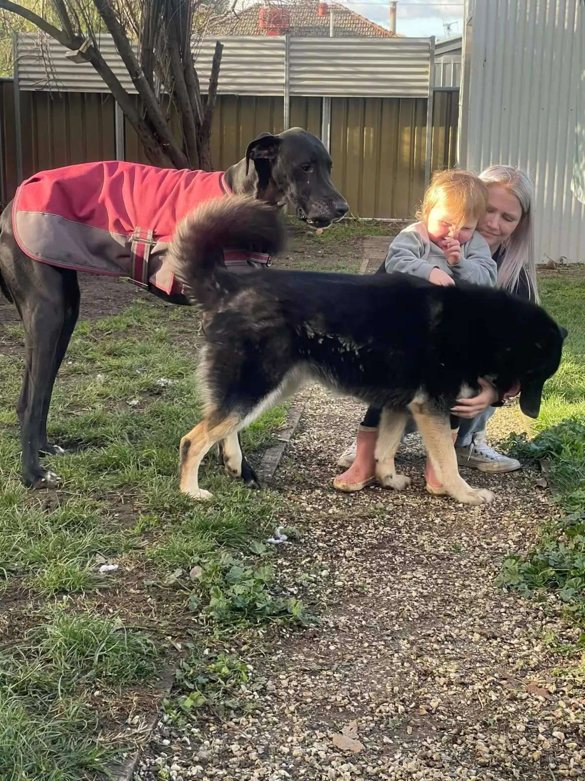 Georgie is very loving, loyal and protective over her family. Over the past year Georgie has shown a huge improvement in her behaviour as we introduced a Saint Bernard puppy into the family. Georgie took on the ‘mother role’ and has continued to provide guidance and affection towards the puppy. Saint Bernard puppy is now 1 and weighs 65 kg, she’s beginning to take on Georgie’s traits, ie. attacking birds
