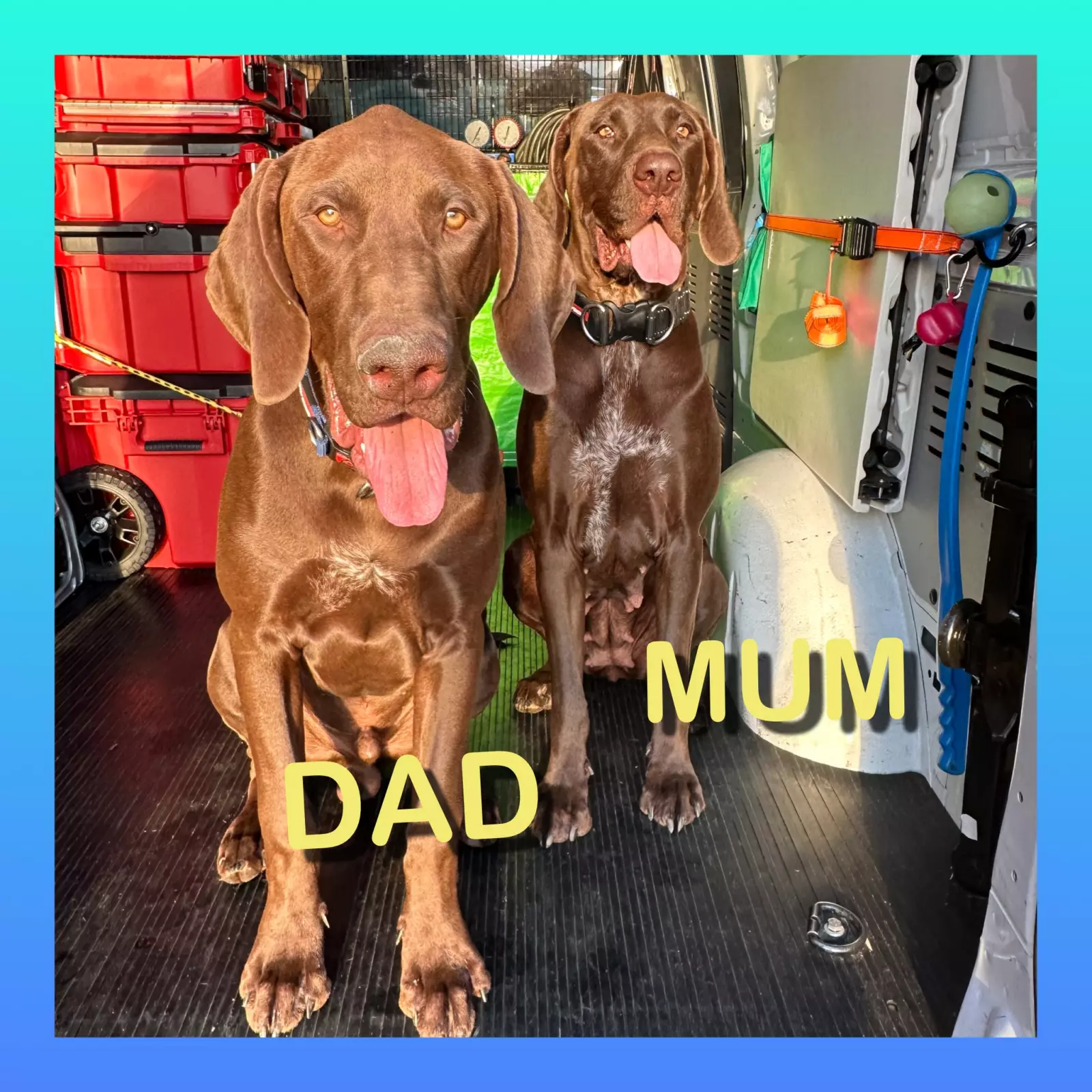 Mum and Dad were the largest from their respective litters—Mum comes from an active hunting line and Dad from a calm, retired companion line.