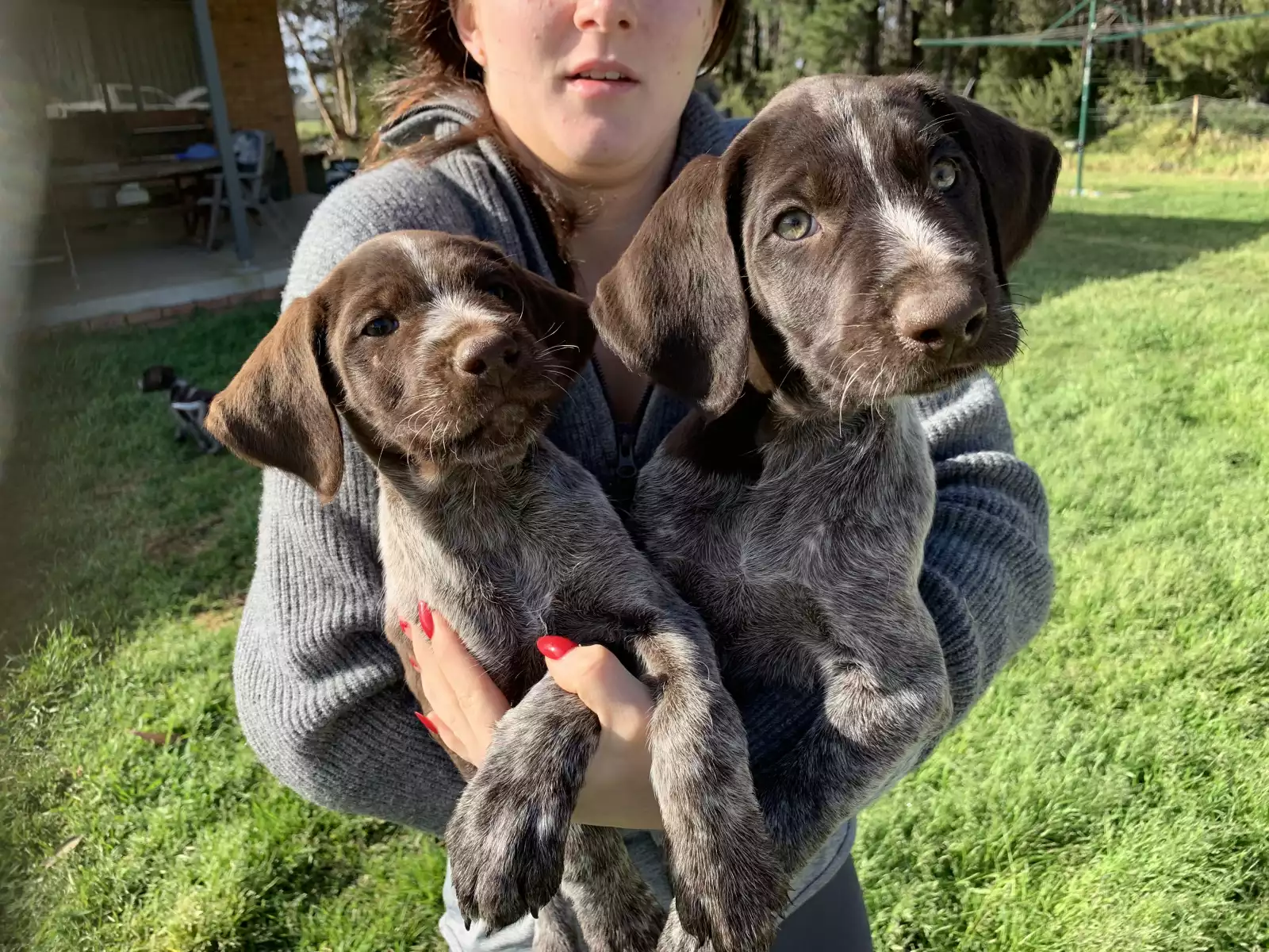 Mum and Dad are both purebred German Wire haired pointers. Both parents can hunt deer, ducks and bail up pigs. Any species on any terrain very obedient dogs. Testimonials from previous buyers of our other letters can be provided upon request about these amazing hunting dogs.