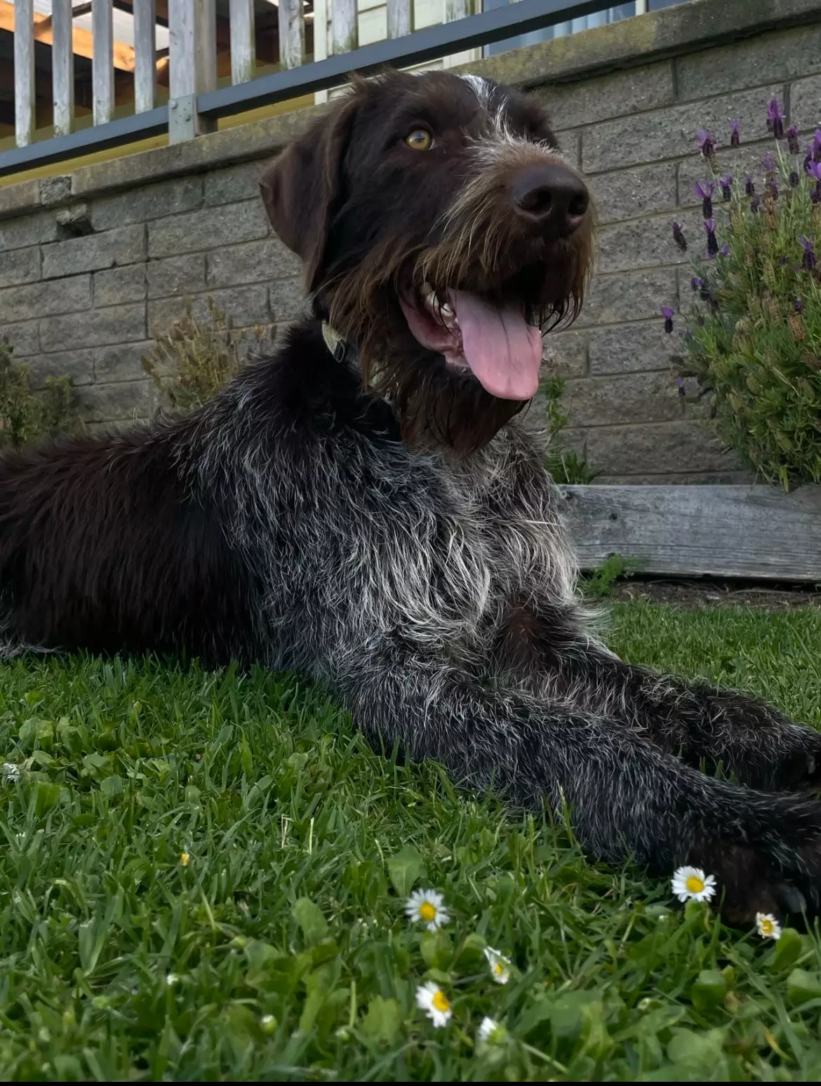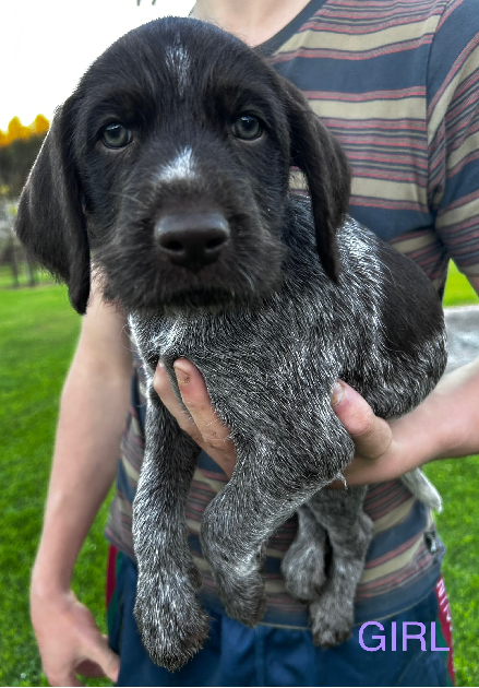 1 beautiful male GWP (German Wirehaired Pointer) puppy left out of a litter of 9, looking for a loving home to call his own.