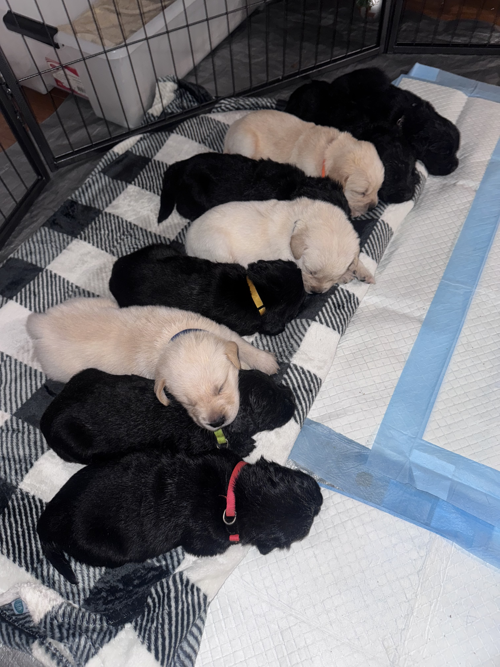 6 X Goldador puppies available. Black or Gold pups available. Mum is a black lab and Dad is a Golden Retriever. Pups can be be viewed with both mum and dad as they are our family pets.