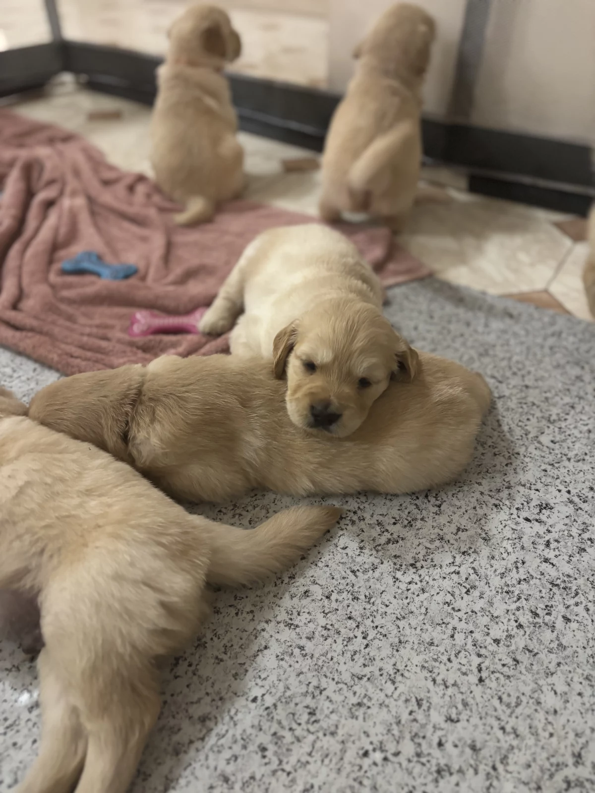 Golden retriever x Labrador puppies for sale. Puppies will be ready for their homes on the 14th of May. We 7 gorgeous males left all were born without issues, and have reached all their milestones so far. Mum(Opal) is a pedigree golden retriever and dad (Bentley) is a golden x lab. Both are gorgeous animals, with beautiful playful natures and are well trained and are great with children and families. We are members of the responsible breeders association Australia and are ethical breeders. All puppies must go to happy healthy homes where they will be safe and loved. Puppies will be vaccinated with their first vaccine, vet health checked, wormed and microchipped and come with puppy packs to take home to their new families. Puppies will also be in the process of being toilet trained to make it easier for their new families. More photos can be given if requested. Puppies are curious, playful and learning quickly.