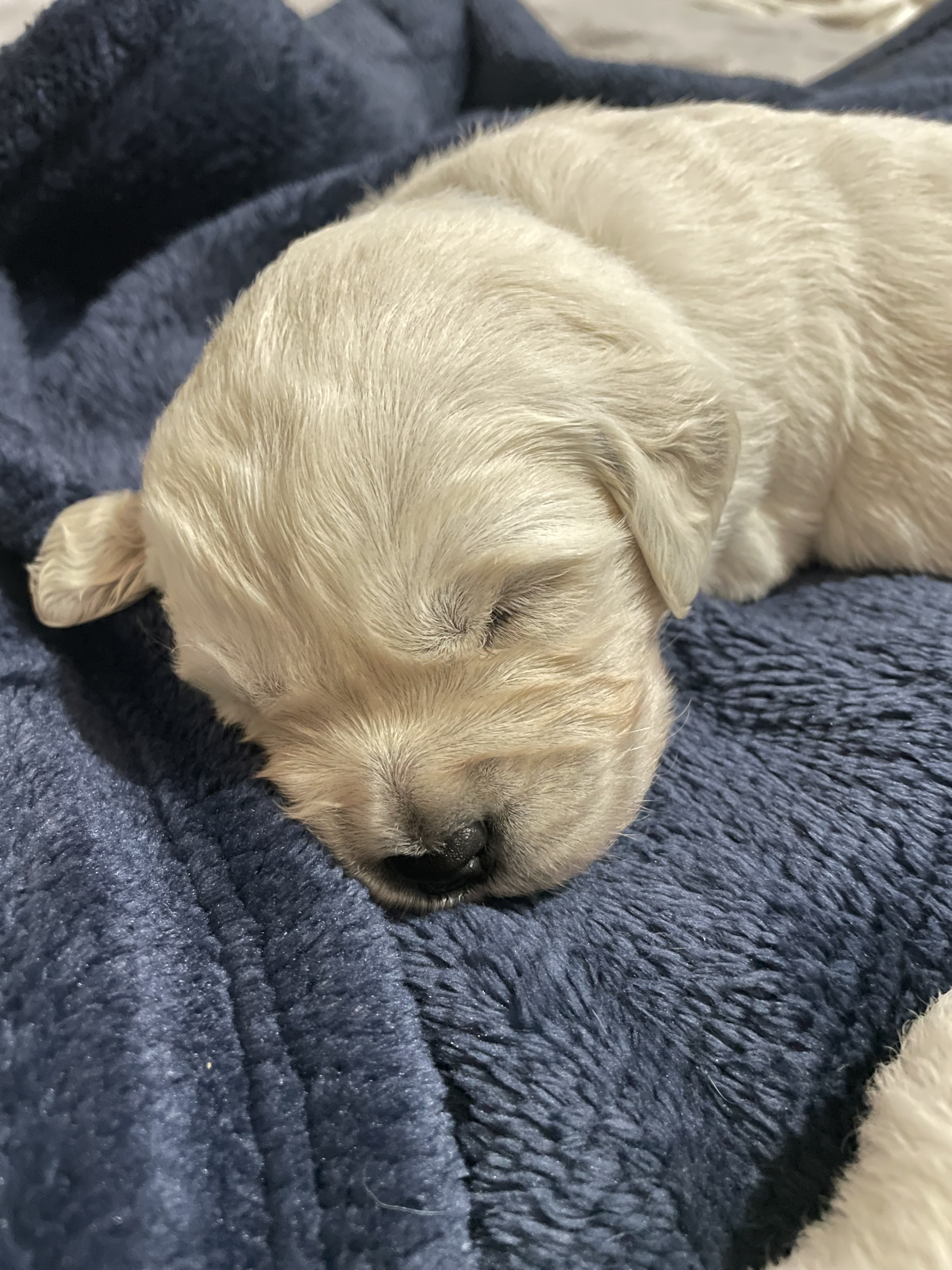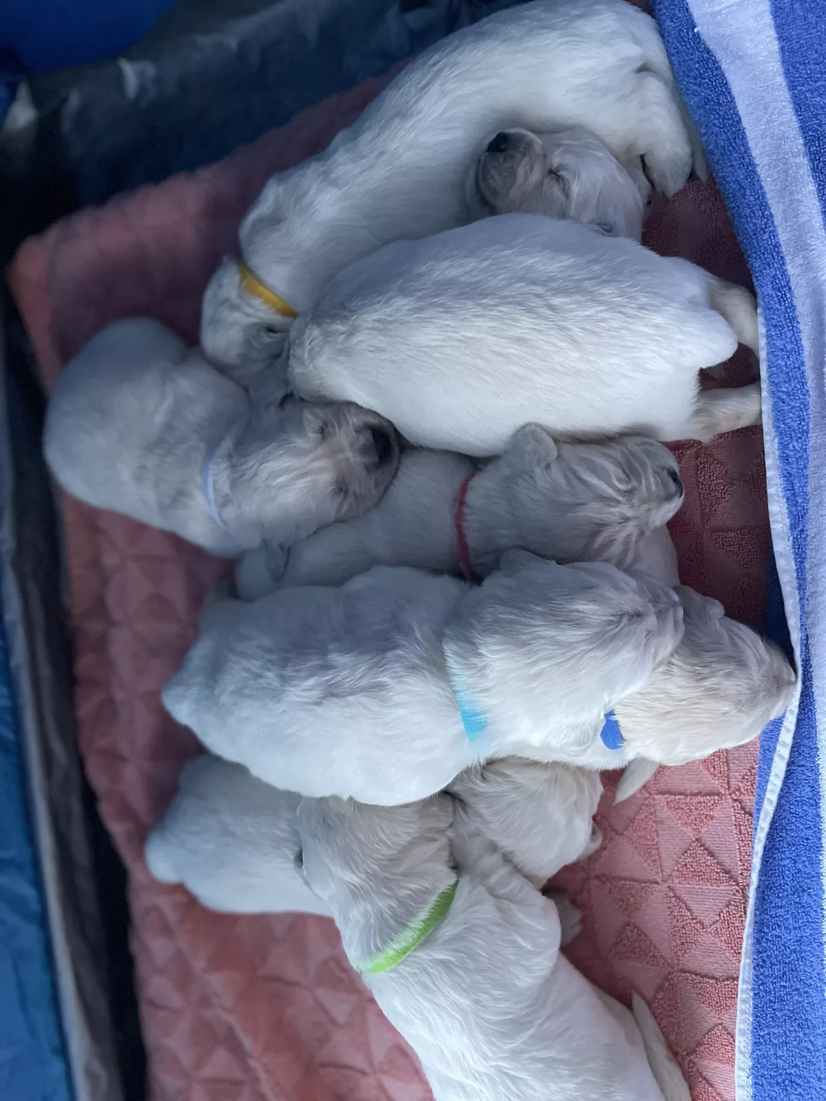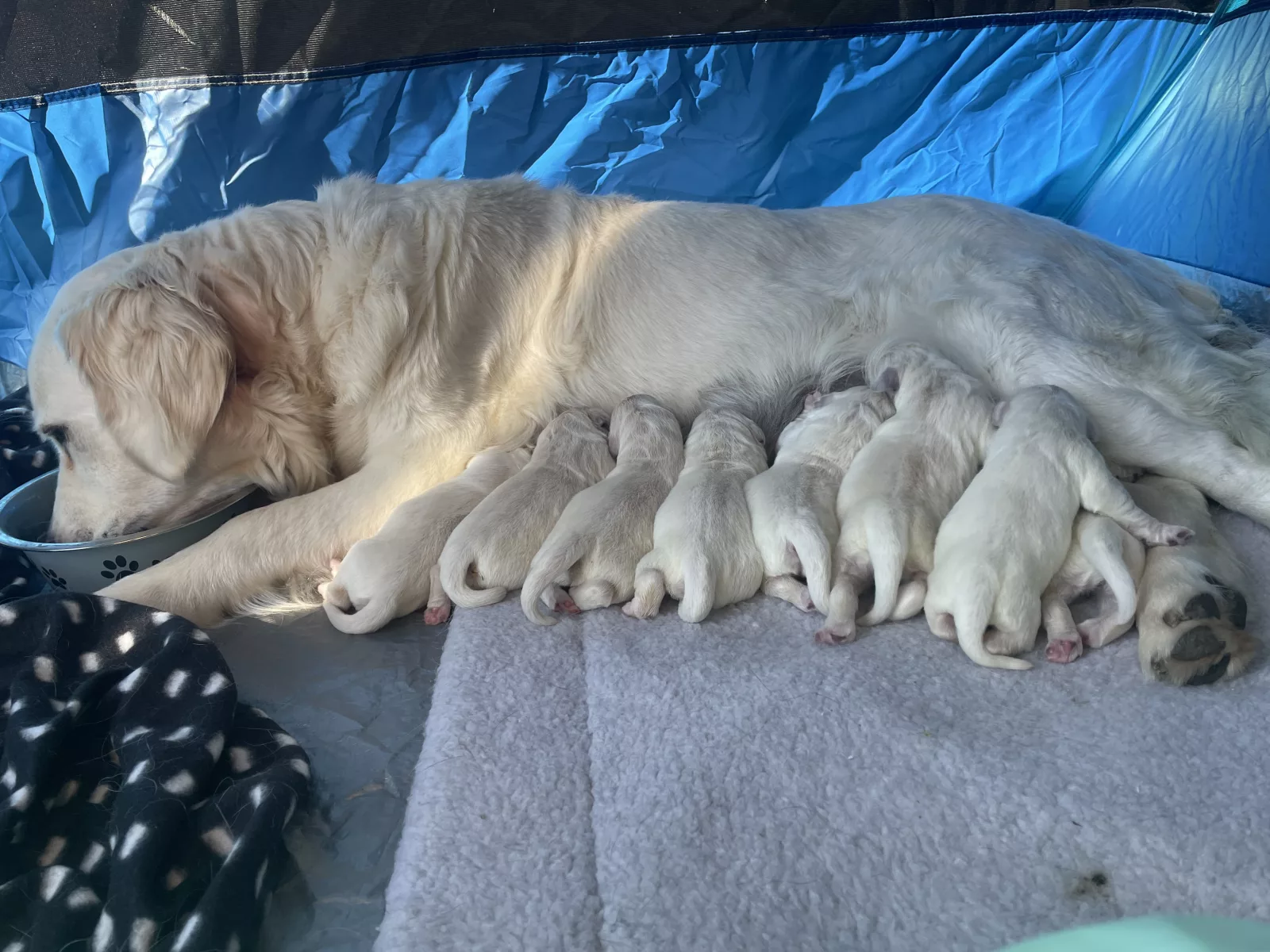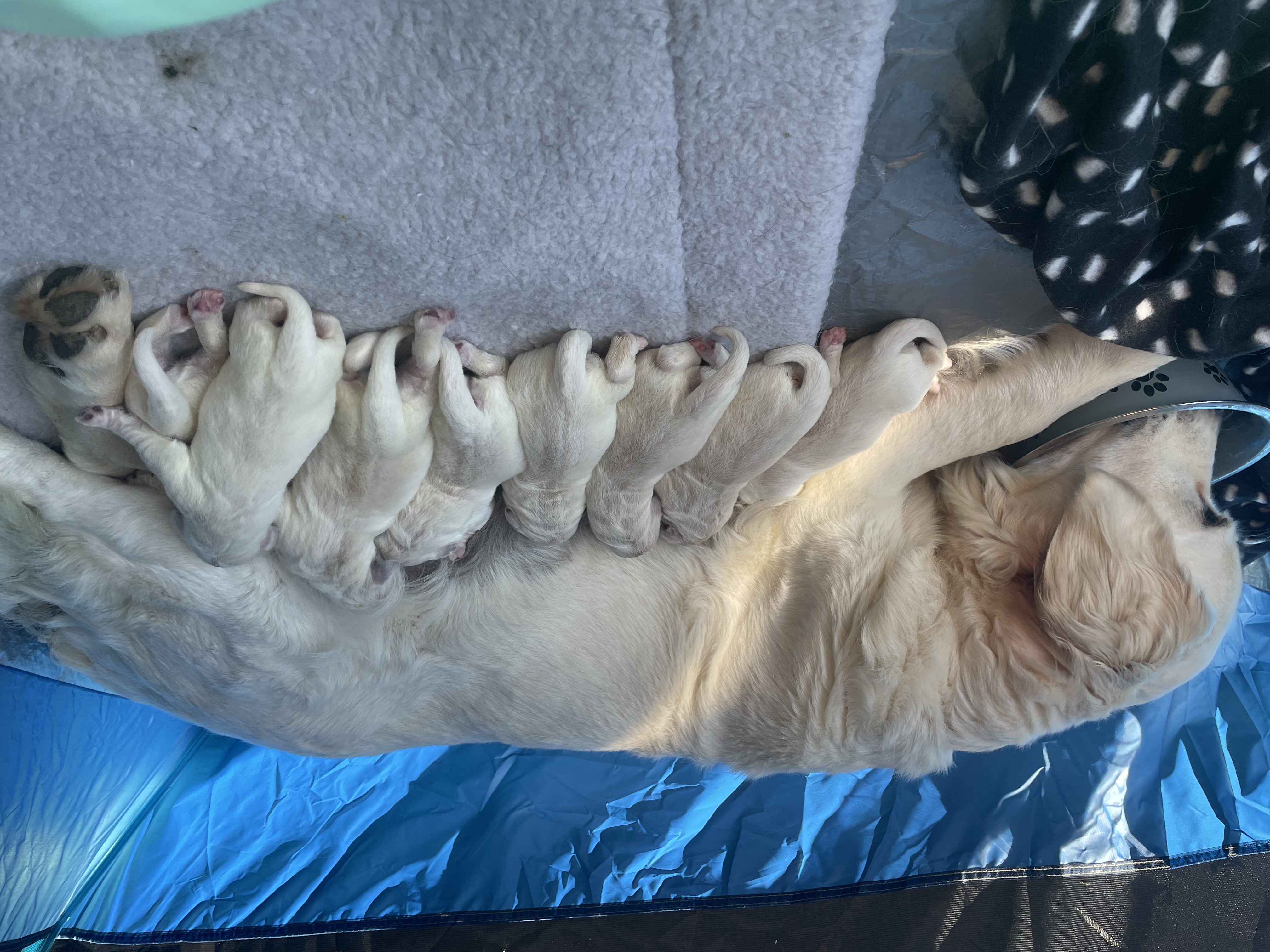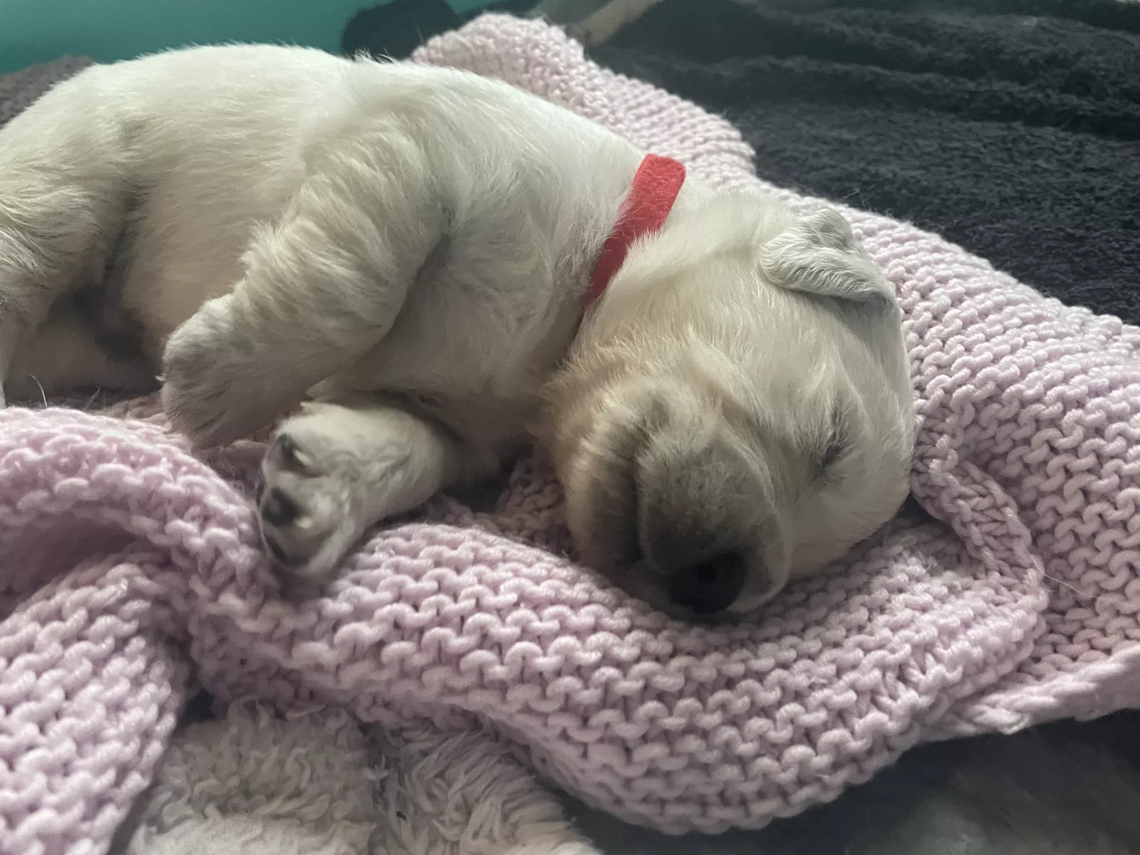 Pedigree Golden Retriever puppies born on 12 July and ready to go their new homes in mid September. Bred by vets with expert care combining excellent blood lines with hip, elbow, eye and heart certification and DNA tests to ensure that every effort has been made to uphold or improve breed standards. All puppies come with health checks, vaccinations, microchipping, deworming and registered papers at the time of rehoming. These dogs are part of our family and have been raised amongst children and cats and are part of all normal family routines. Currently, there are 2 girls and 2 boys still available. Message us if you would like to secure a pup.