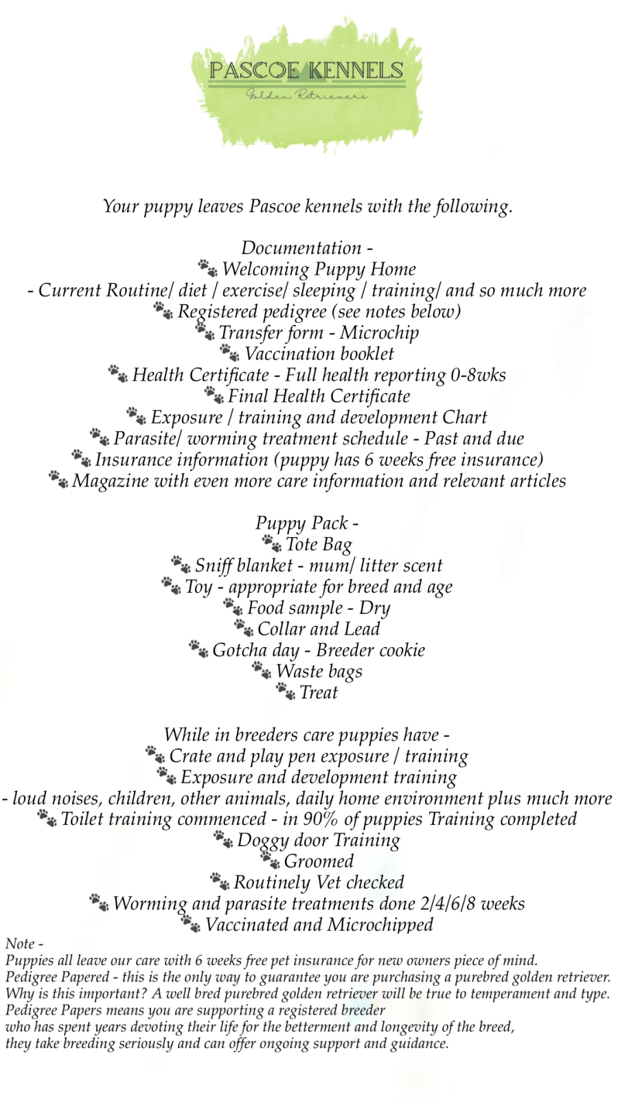 All our parent dogs are tested and cleared healthy, with DNA, HIP and Elbow, Eyes and heart checks preformed. Our parent dogs are calm, inelegant and extremely loyal, we pride ourselves on breeding true to temperament and type with our Golden Retrievers.