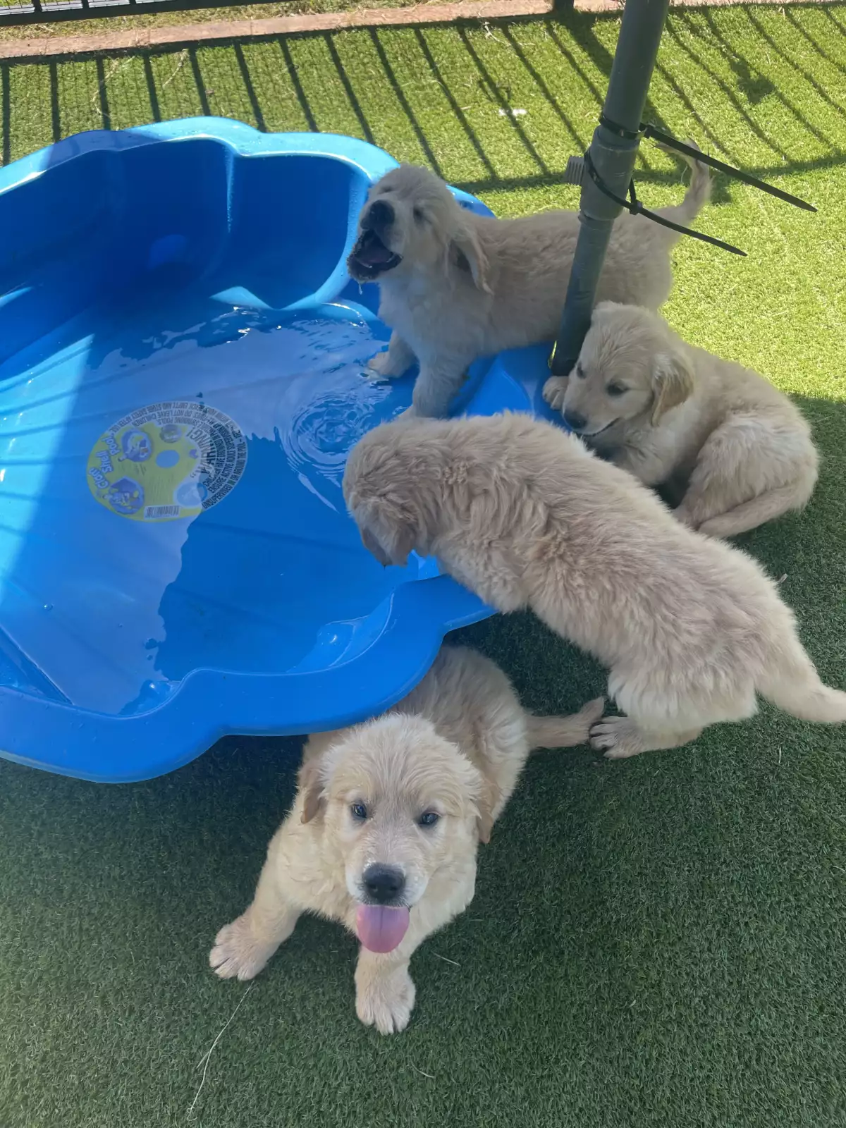 We have available from this litter 1 female and 2 male, Golden Retriever puppies from our litter of 10. Pups are available to head off from the 21st of June once 8 weeks old.