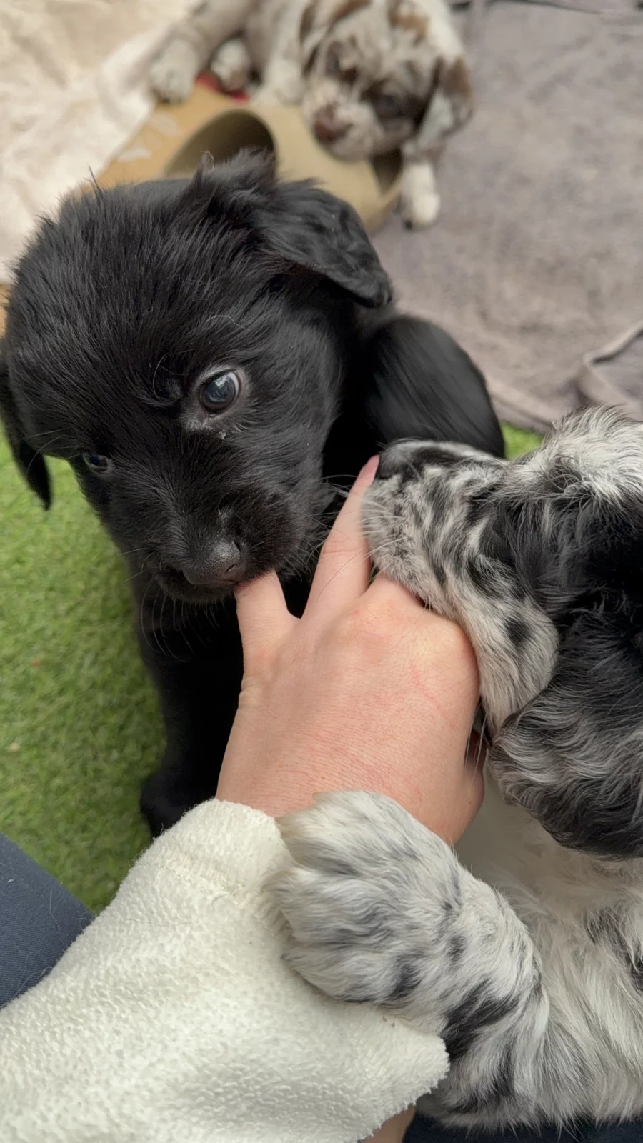 They have been raised in a loving family environment, they’re well-socialised, playful, and very much used to being around people.