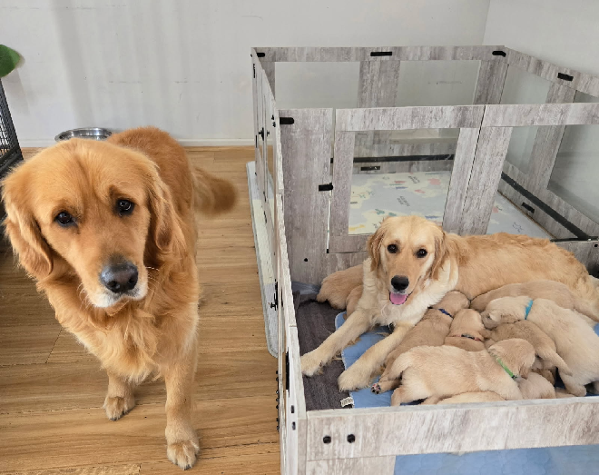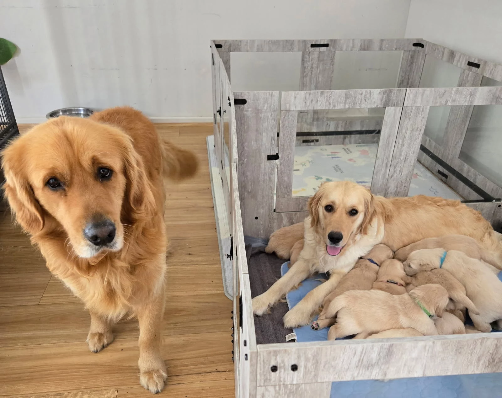 Golden Retrievers are known for their gentle, family-friendly temperament. Both parents are available to view and have calm, affectionate natures. These puppies would suit families or individuals seeking a loyal, loving companion.