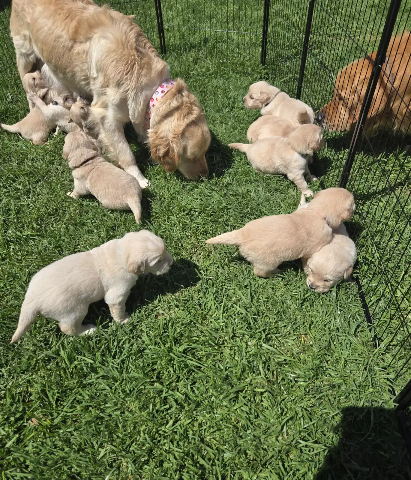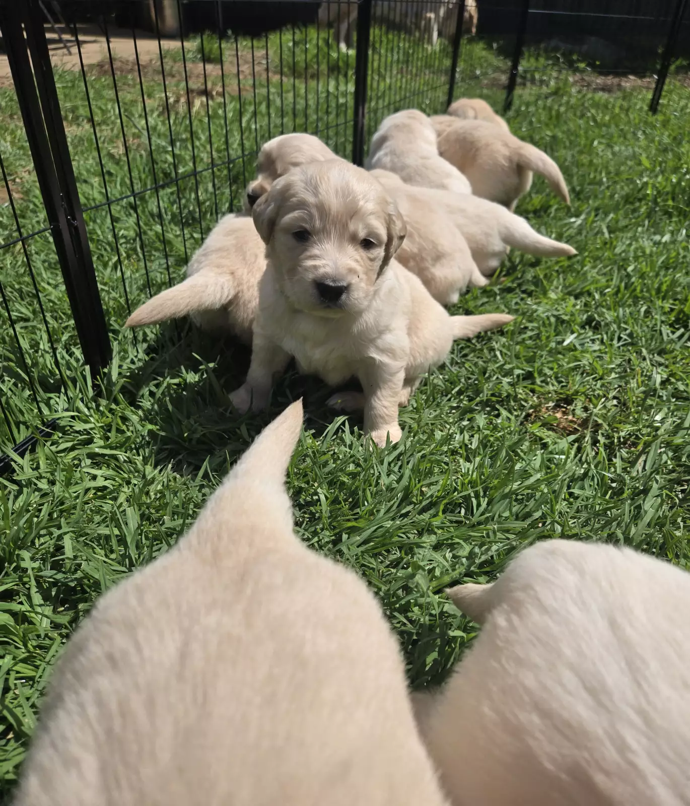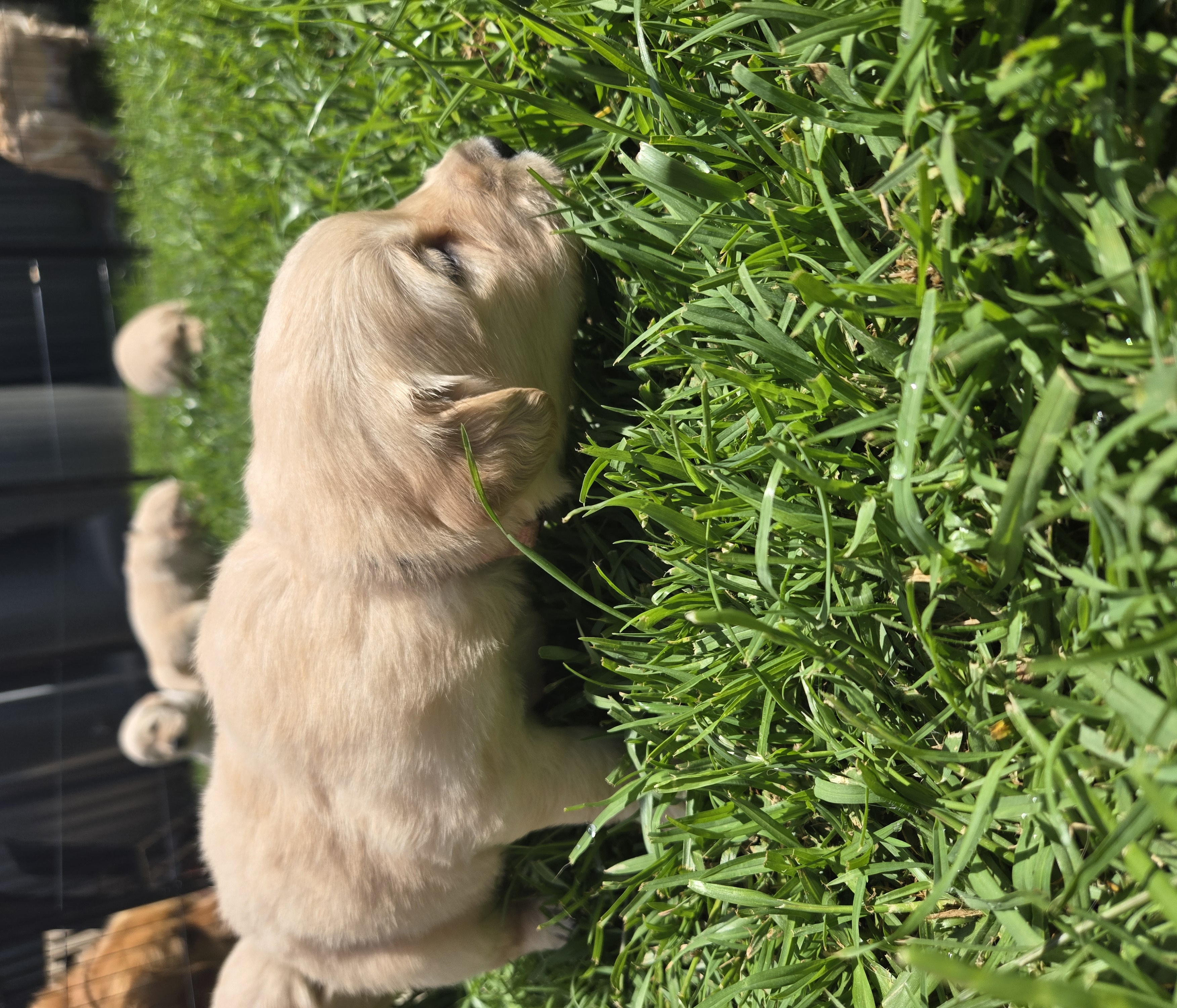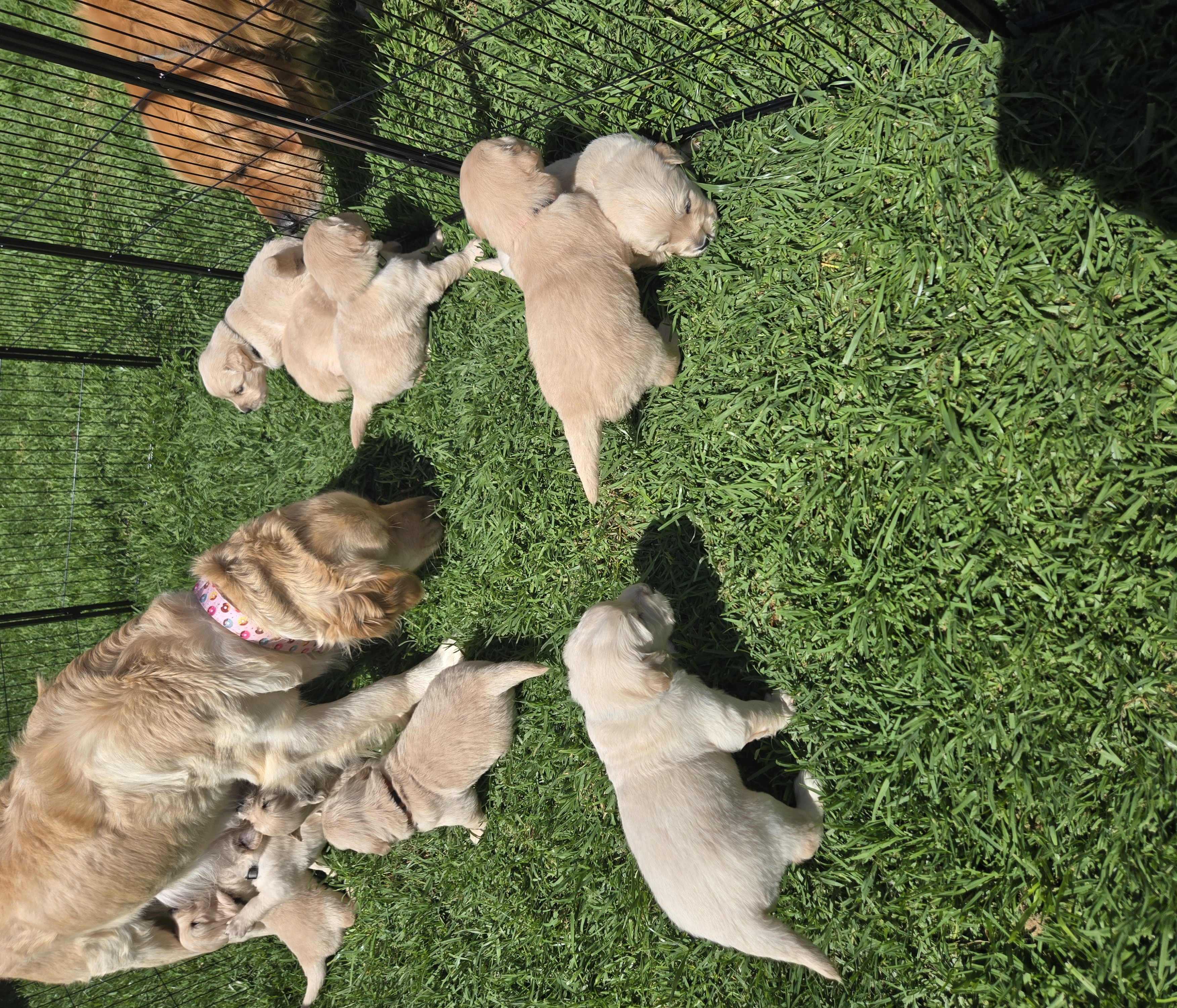 Five female and one male Golden Retriever puppies available, with light and dark coated females to choose from and one light to medium coated male.