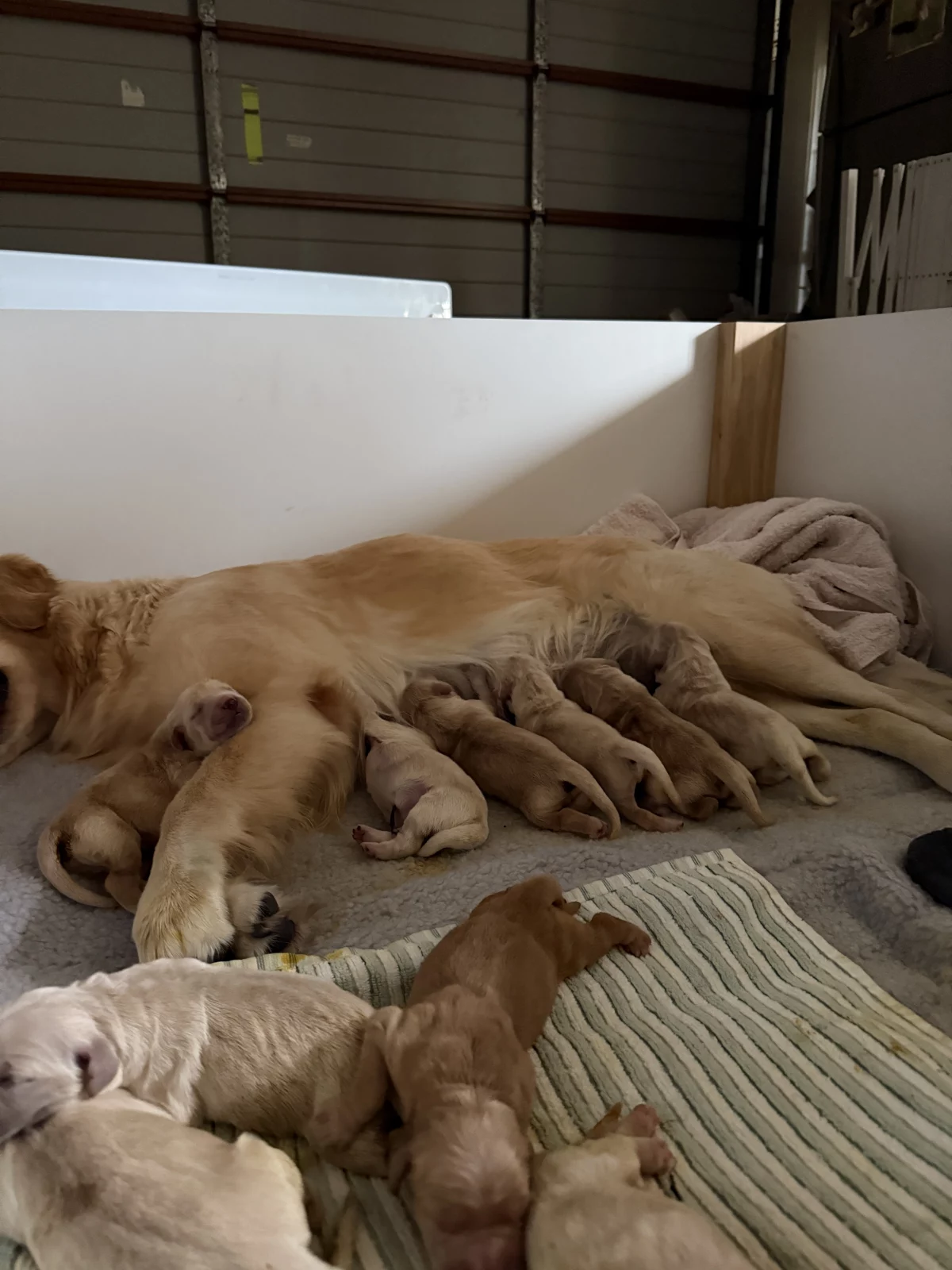 Weβre excited to announce that our beautiful Golden Retriever Stormi has welcomed a healthy litter of 10 purebred puppies on 18th June 2025 β 5 boys and 5 girls ππ