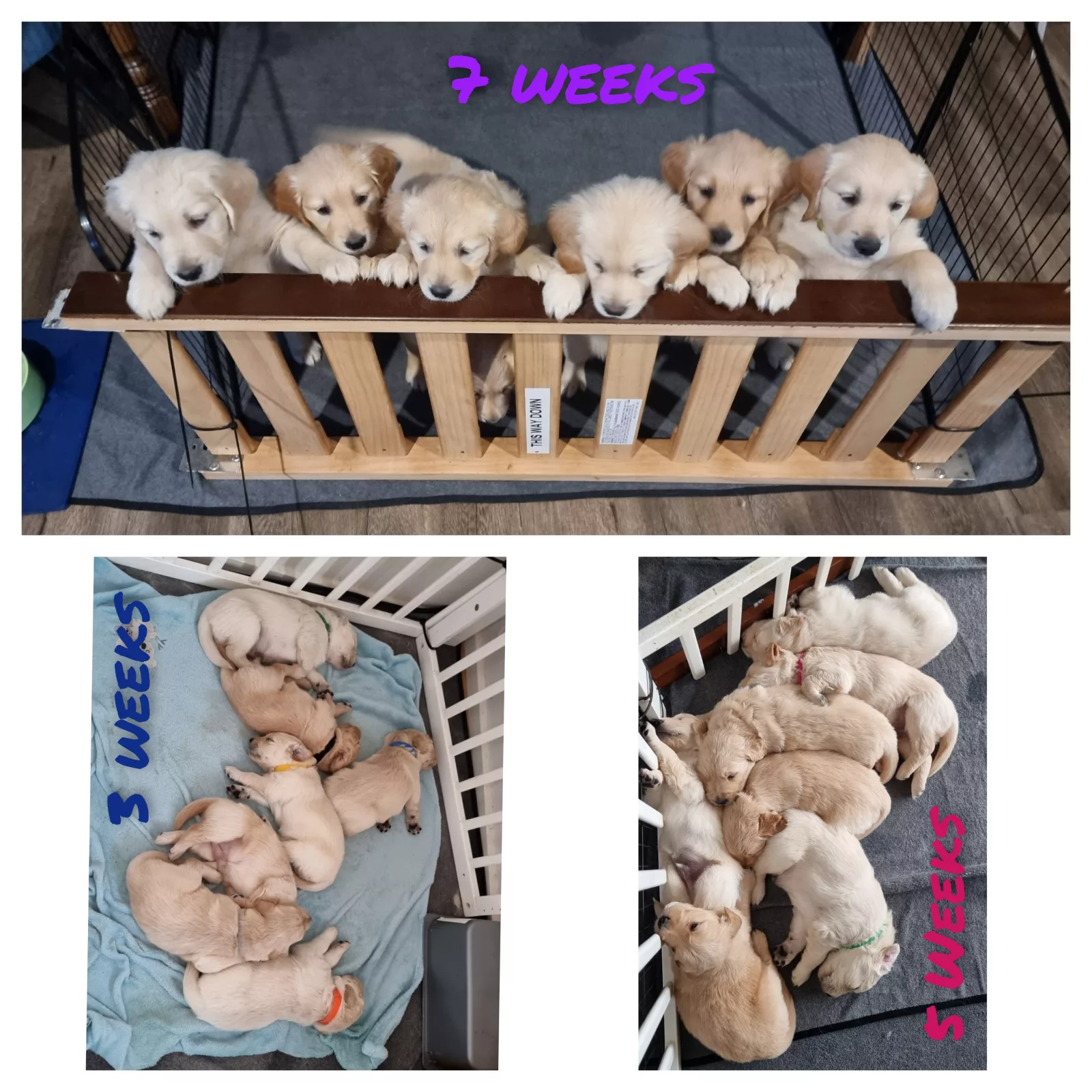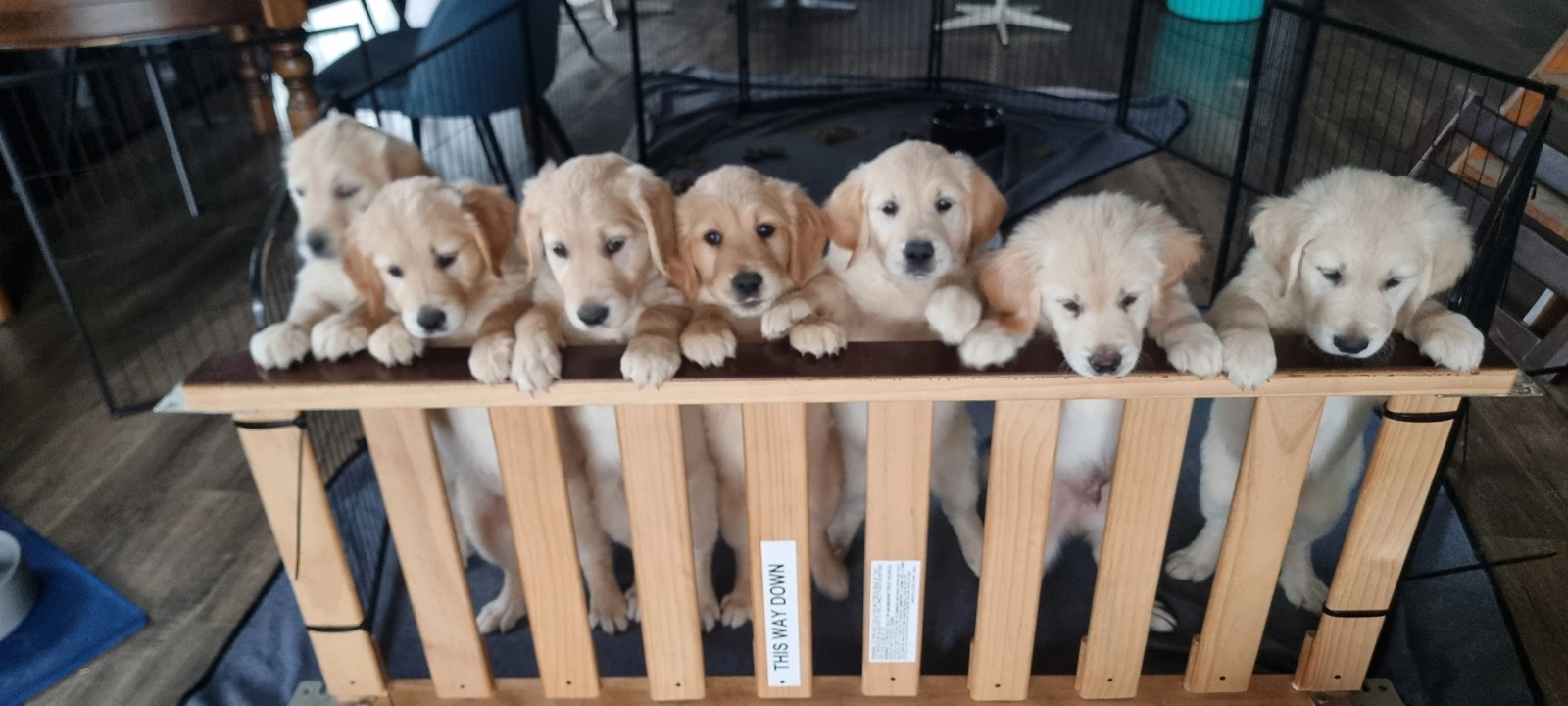 We have 6 Gorgeous Golden Retriever puppies that are looking for their forever homes. They have been raised with constant interaction and gotten a lot of handling.