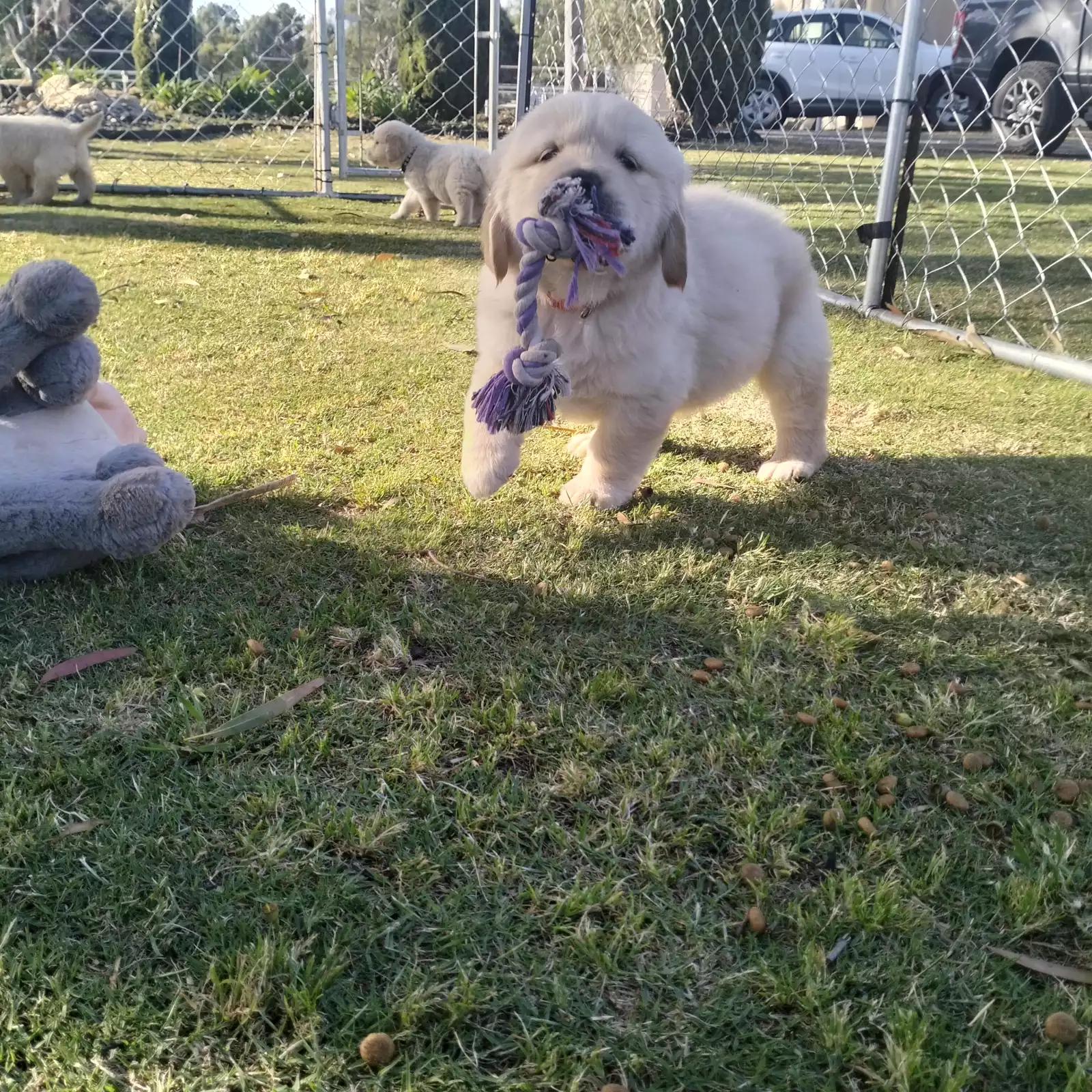 Beautiful purebred Golden Retriever puppies available to loving homes. These happy, healthy pups have been raised within our family environment and receive daily handling and care. They are well socialised with children and other animals, making them confident and people focused. Each puppy has been health checked, vaccinated, microchipped, and wormed, giving them a strong start in life. Golden Retrievers are known for their gentle temperament, loyalty, and suitability for family life. These puppies would suit active families, couples, or individuals ready for long-term commitment. Price is $1800 each. Registered breeder. Located in Two Wells, South Australia. Message us here to learn more.