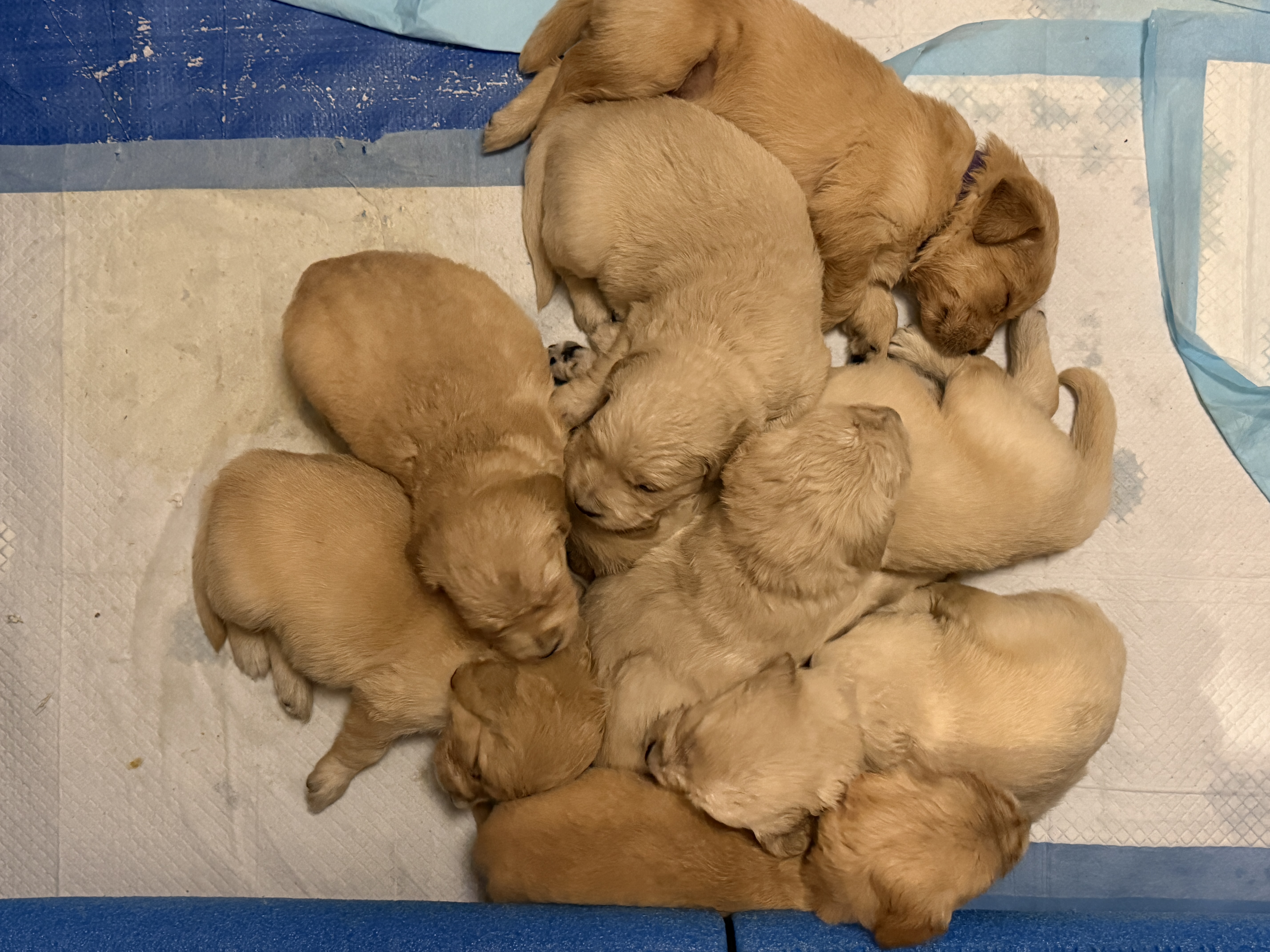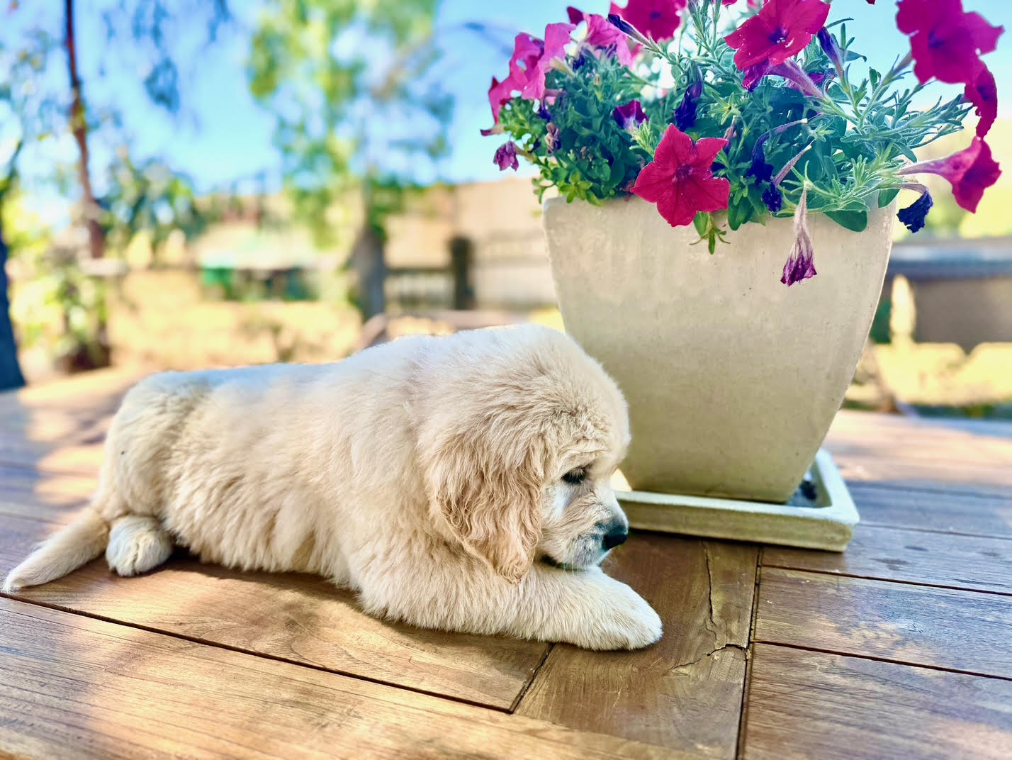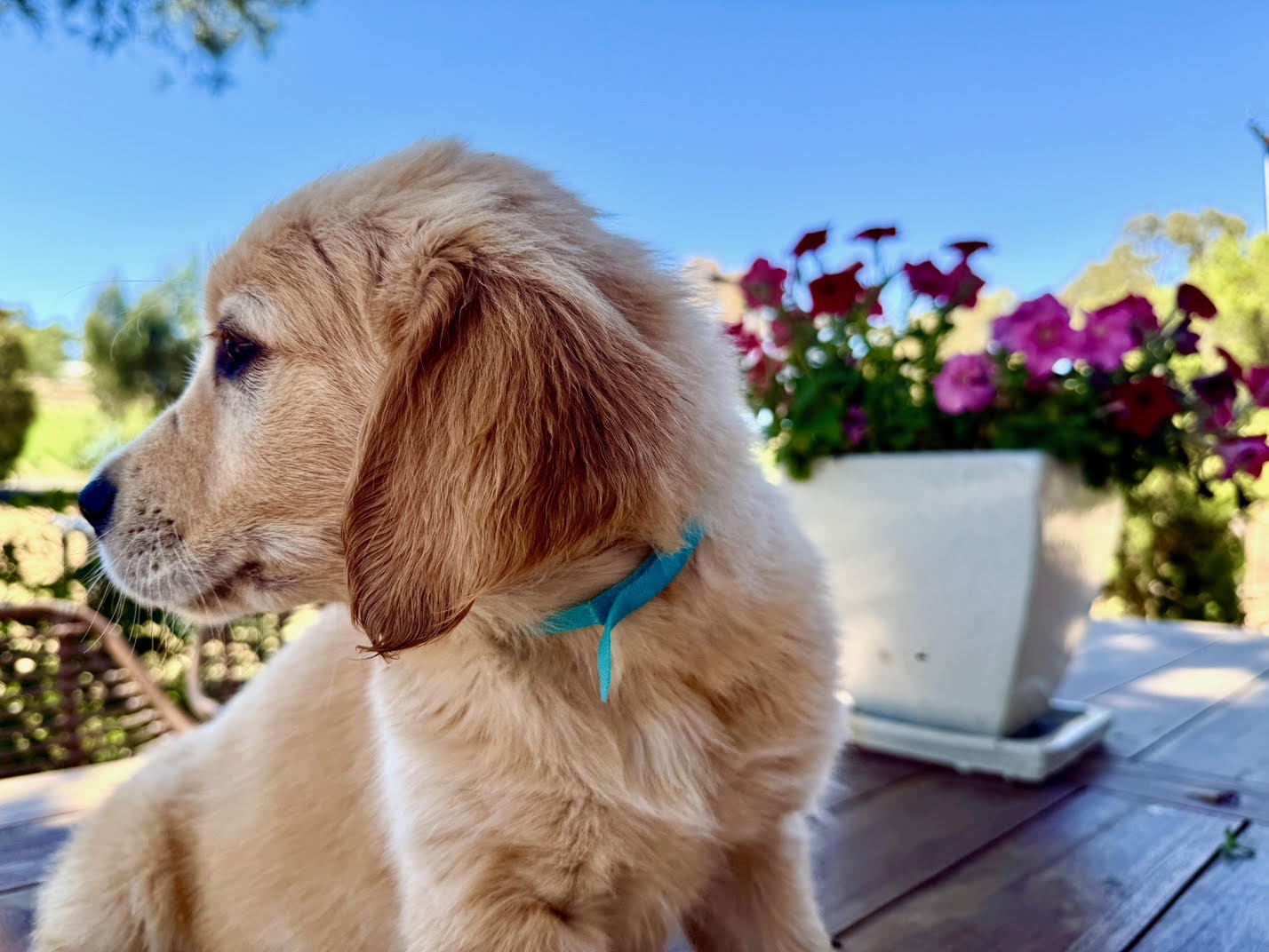They have been brought up around my 6 Golden Retrievers and well socialised with the adult dogs already. I live on a 320 acre vineyard in the Adelaide hills so lots of fresh air and a really peaceful environment for them to grow into. They are sleeping all night already. I am a registered breeder with the local Adelaide Hills Council and a member of the Responsible Pet Breeders Association.