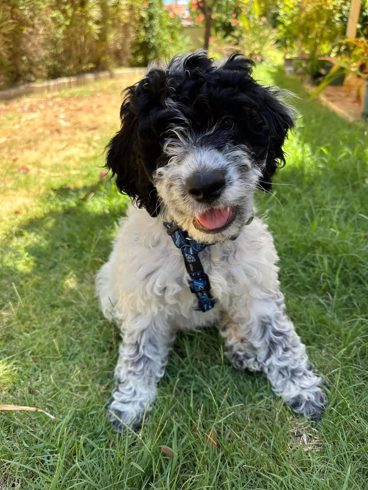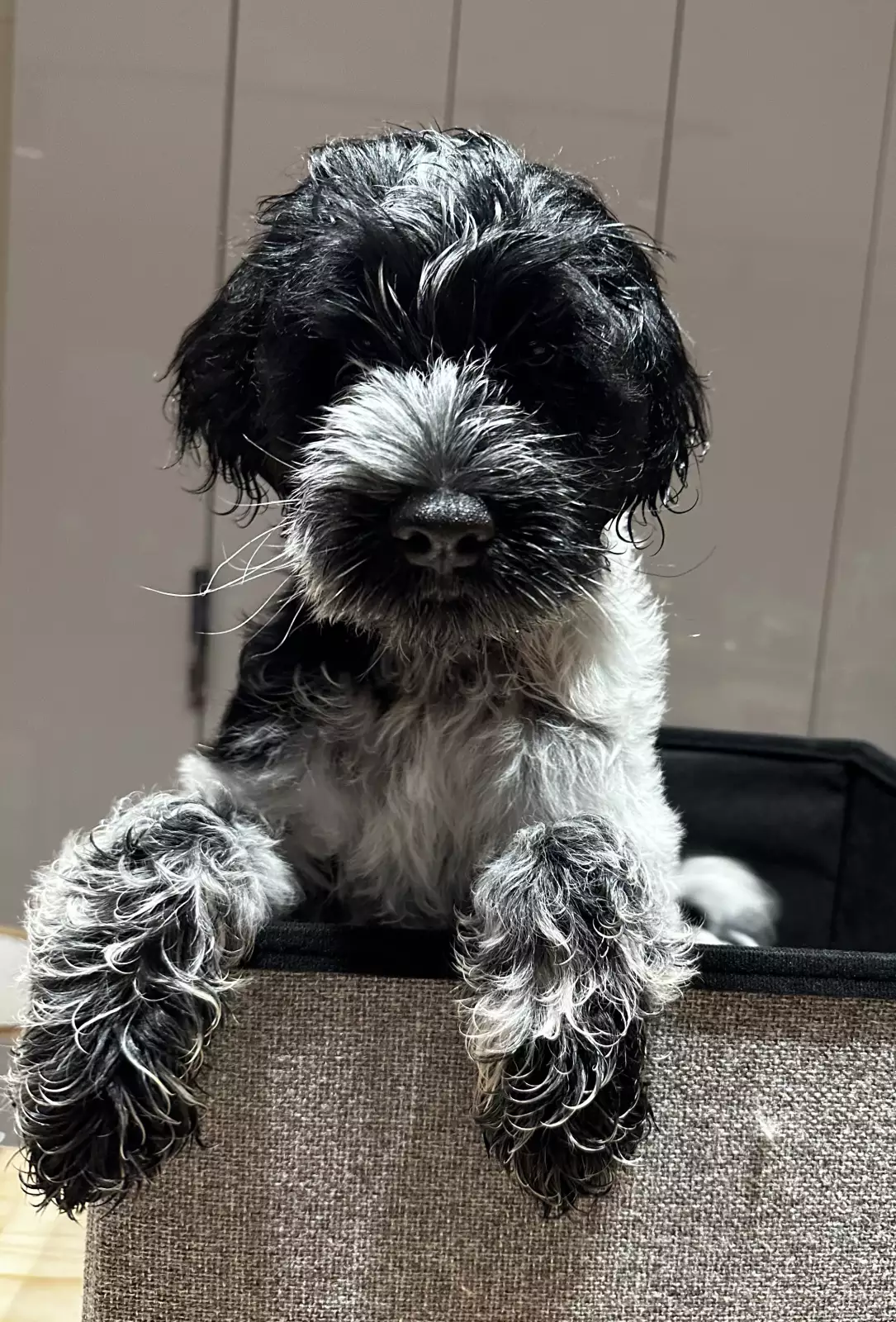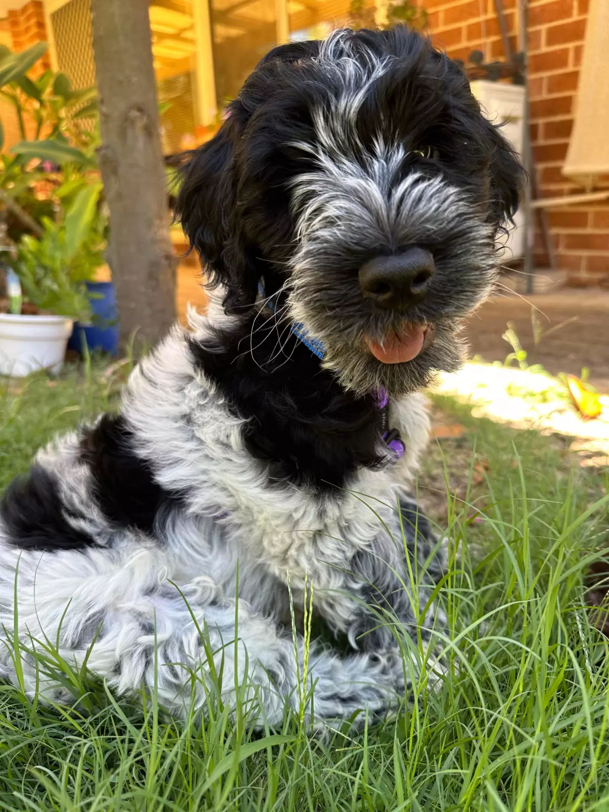 Mum is a medium white & gold groodle. Dad is a choc parti moyen poodle. Both have been fully DNA breed and health varified. All pups have been raised using an enrichment and socialization program and are super happy, social & well adjusted pups.