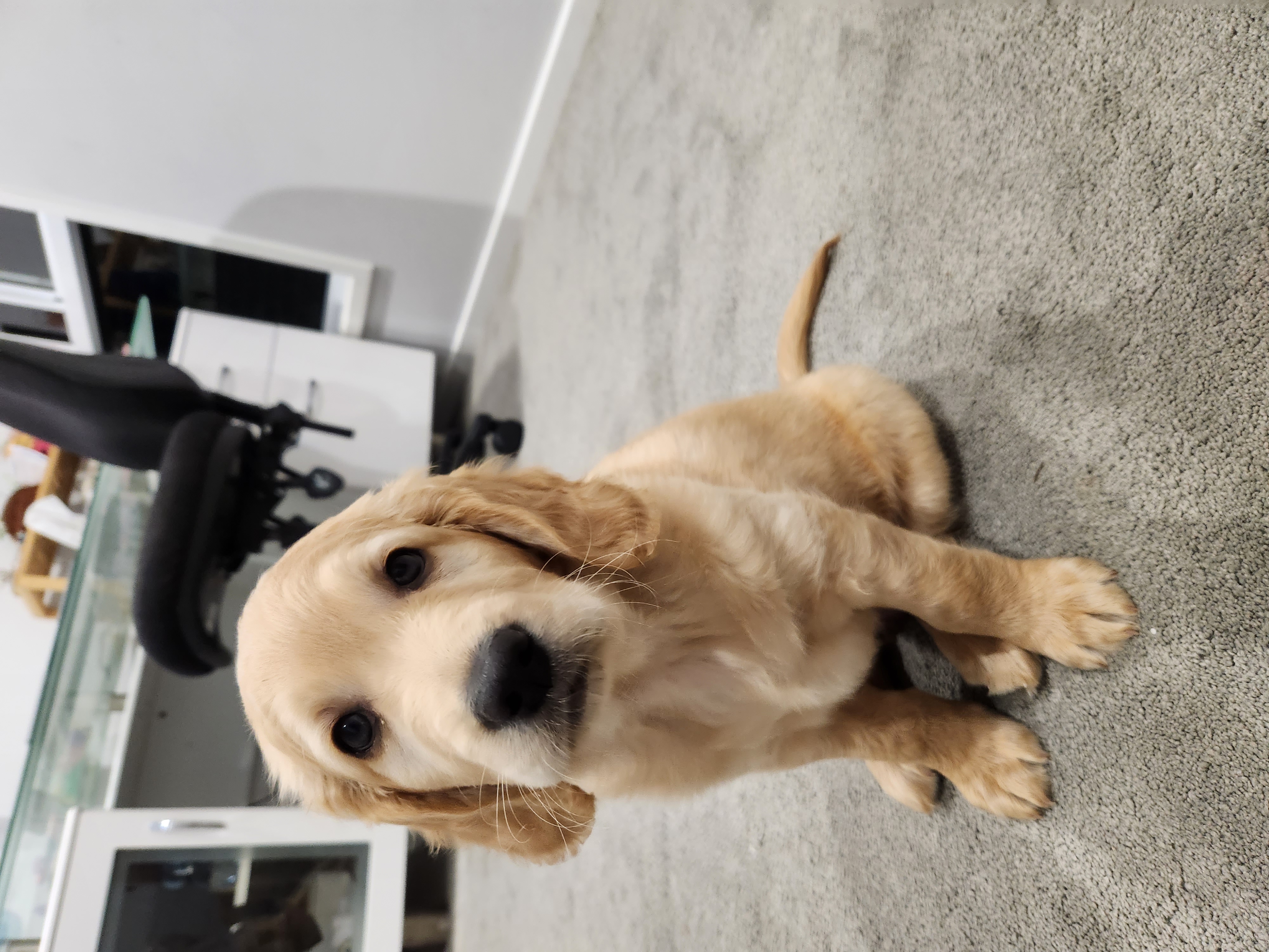 Dad – Jaxon: A striking peach-coloured Groodle, adored by everyone he meets for his warm, friendly personality.