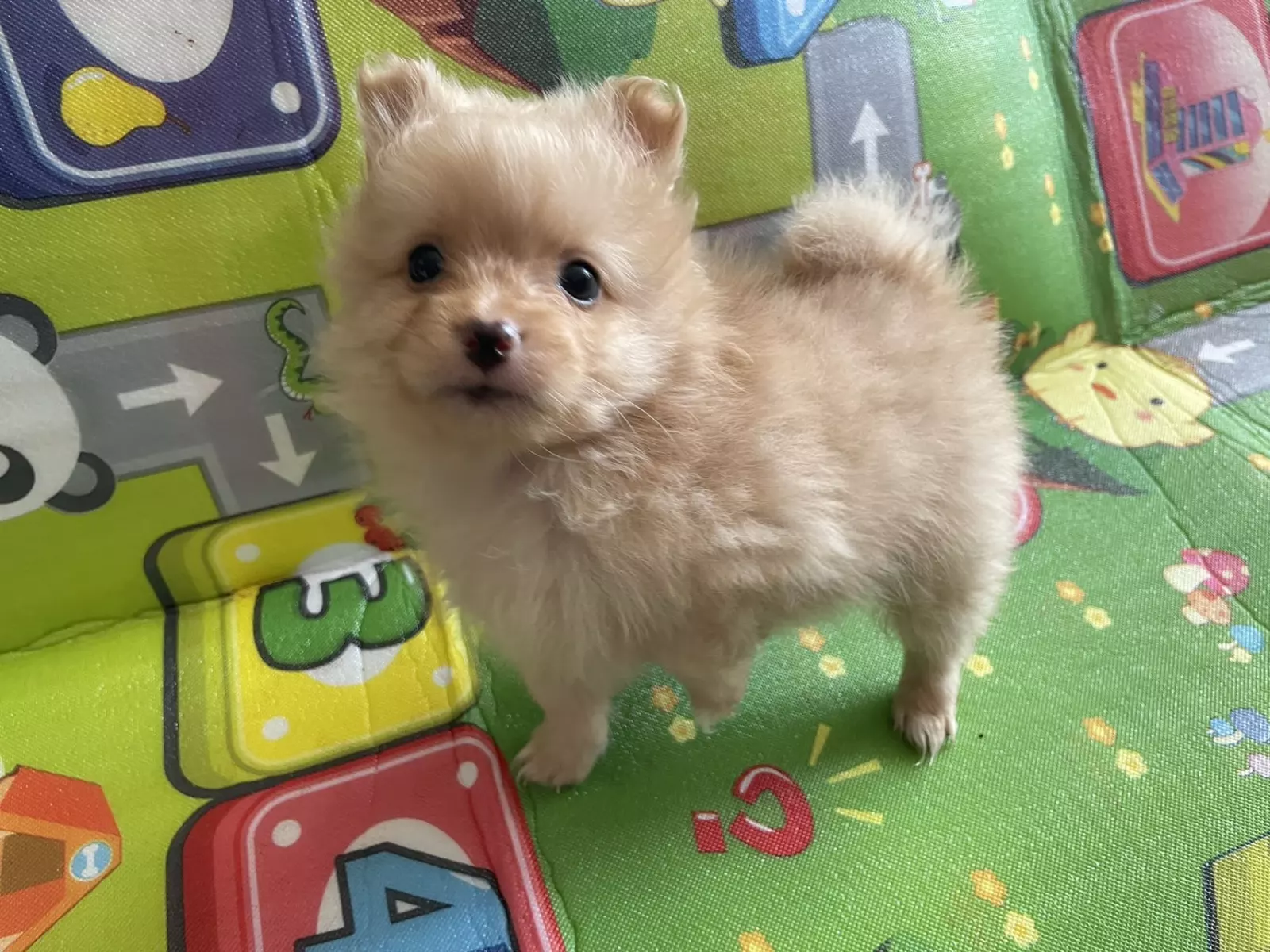 Boy is cream colour, will be very similar to his dad when he's bigger.