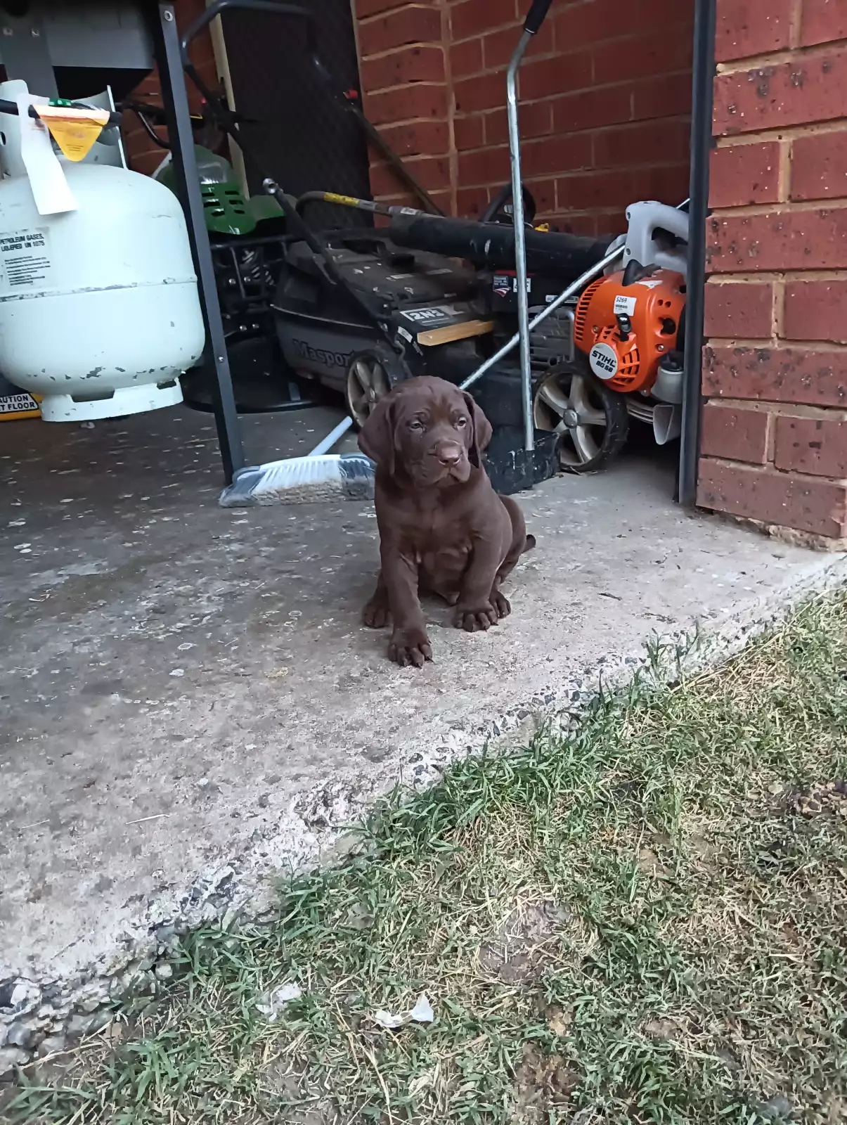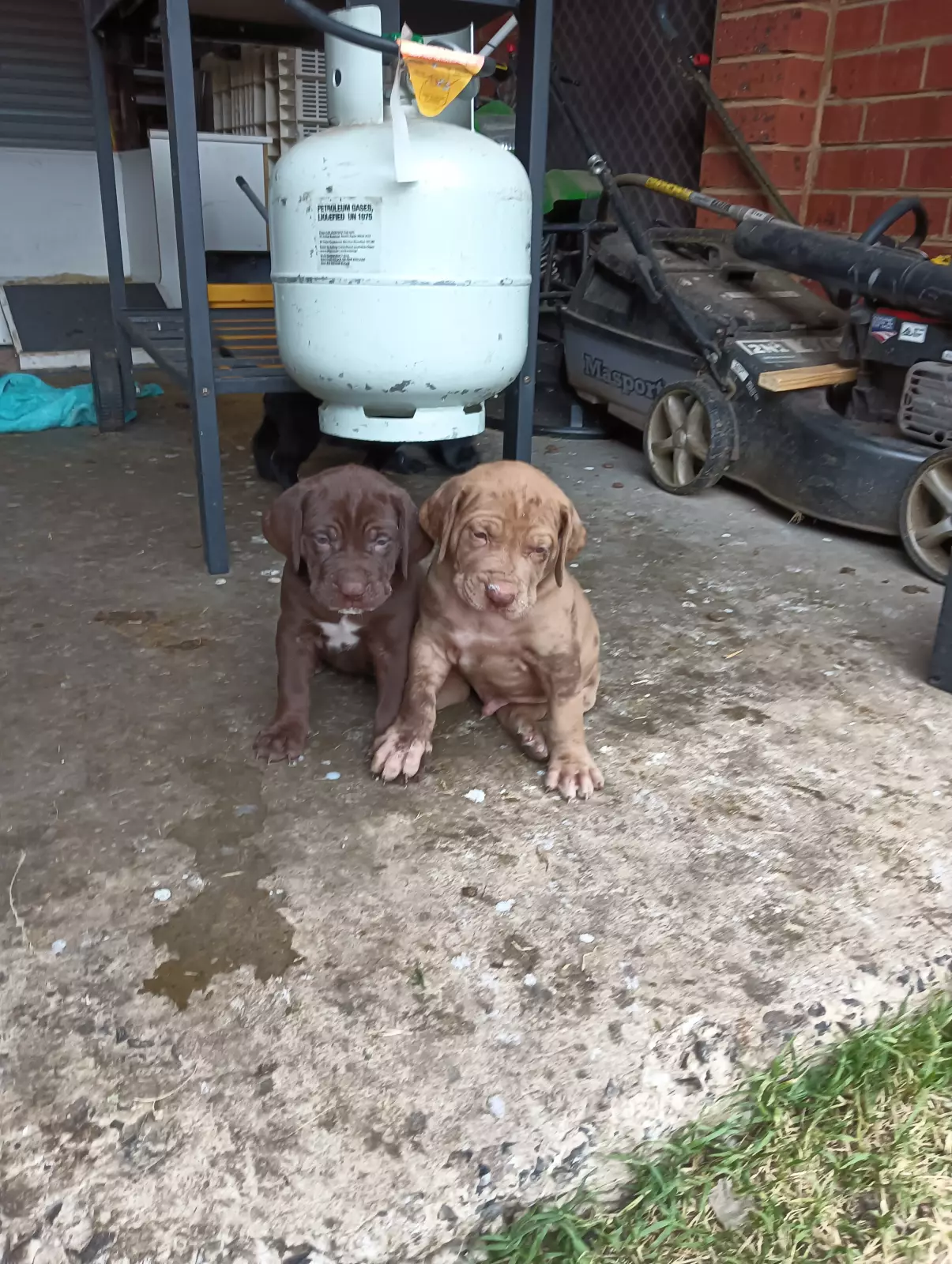 Chocolate male x 2, 1 with white bib.