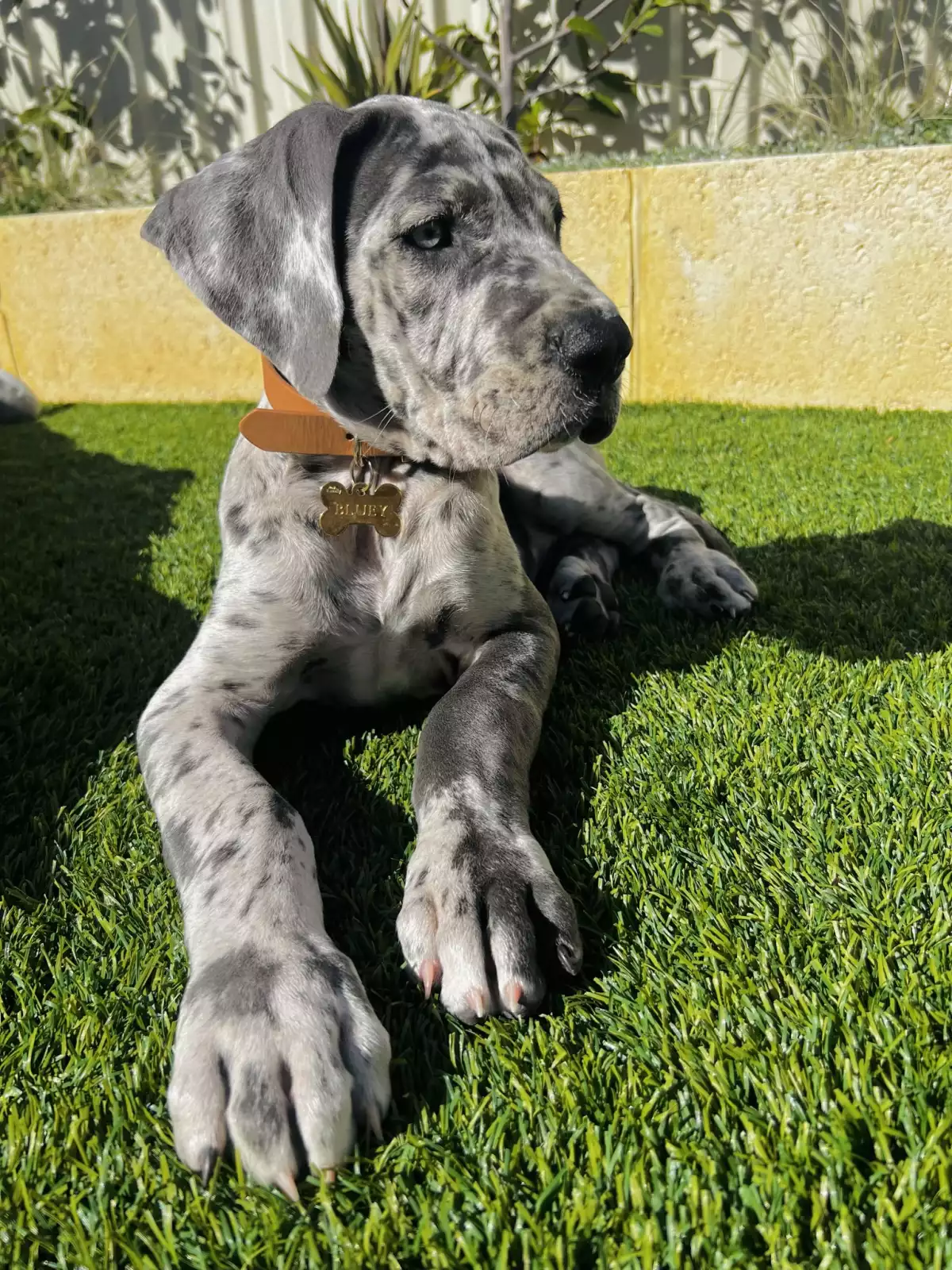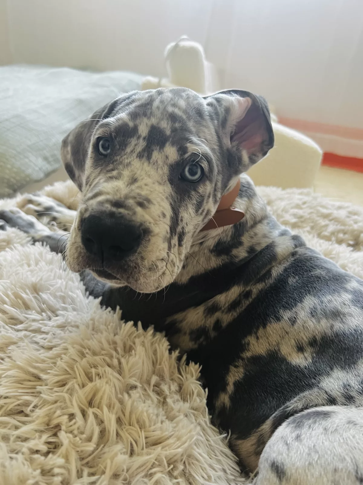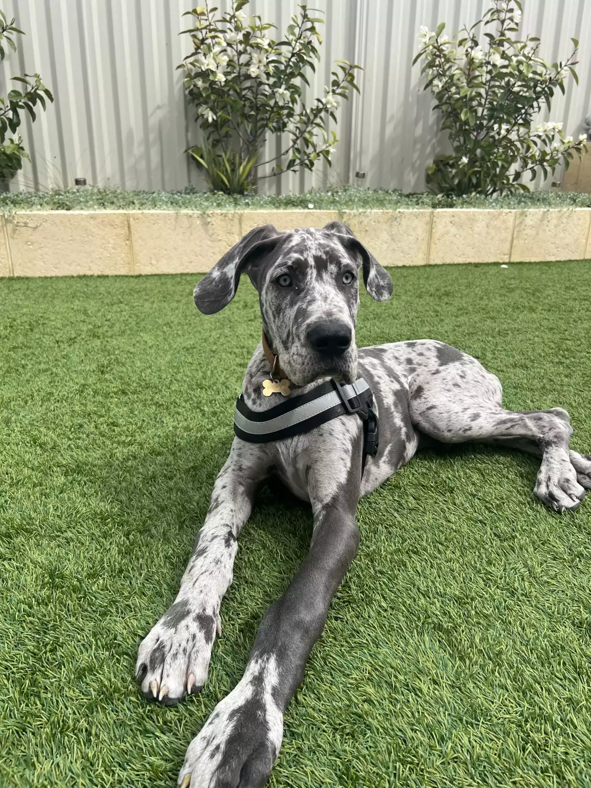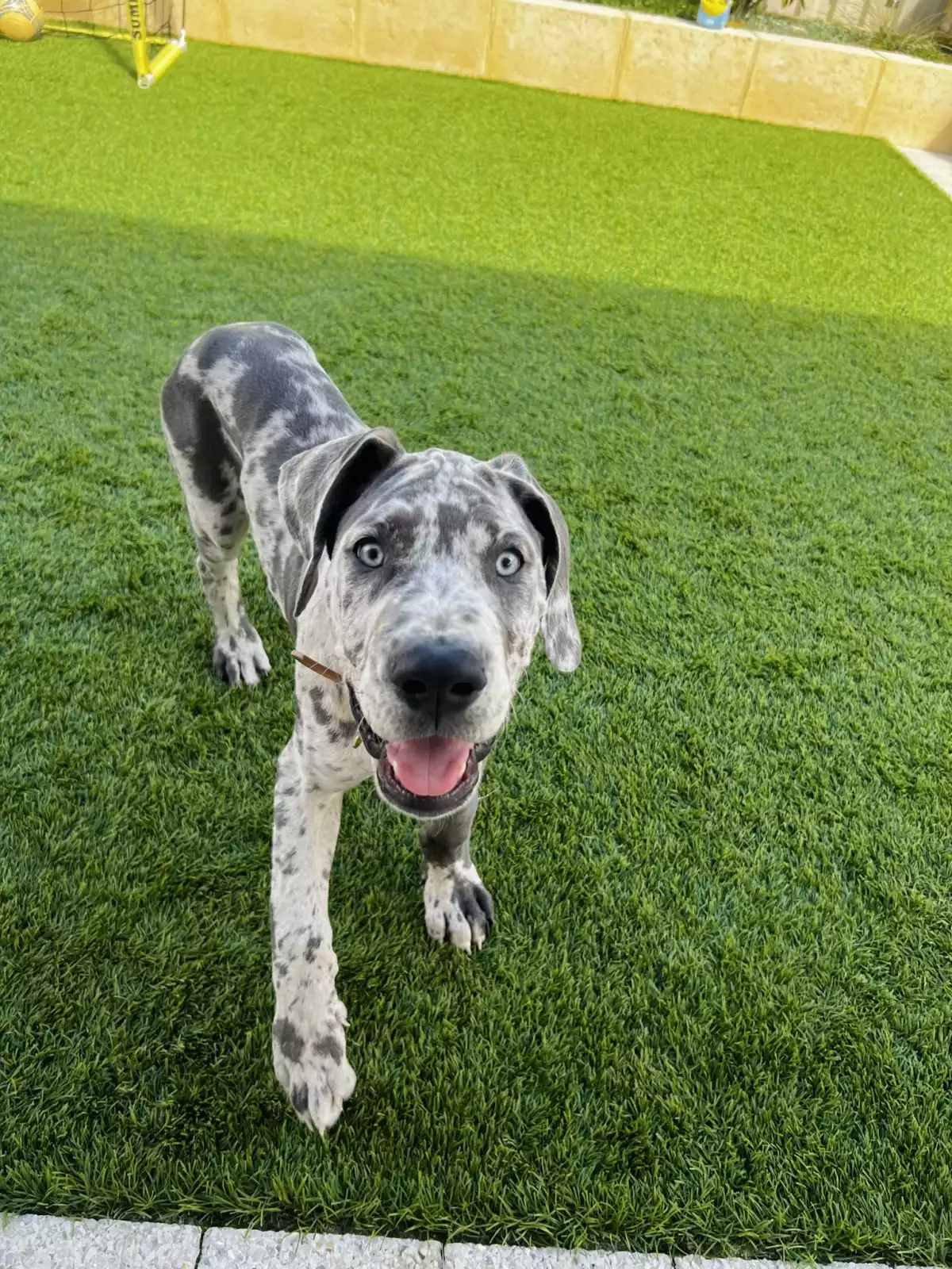 Male Great Dane puppy available for rehoming. His name is Bluey, born 31/05/2023, and he is a big, affectionate boy with a gentle personality. He has been vaccinated, microchipped, and is not desexed. Bluey is fantastic with children, other dogs, and even cats, making him a great addition to a family or household with existing pets. Unfortunately, due to financial and housing changes, we are no longer able to provide him with the stable environment he deserves. This is an urgent rehoming, so we are looking for a responsible and loving home that can offer him space, companionship, and care. Please reach out if you can provide Bluey with the secure future he needs.
