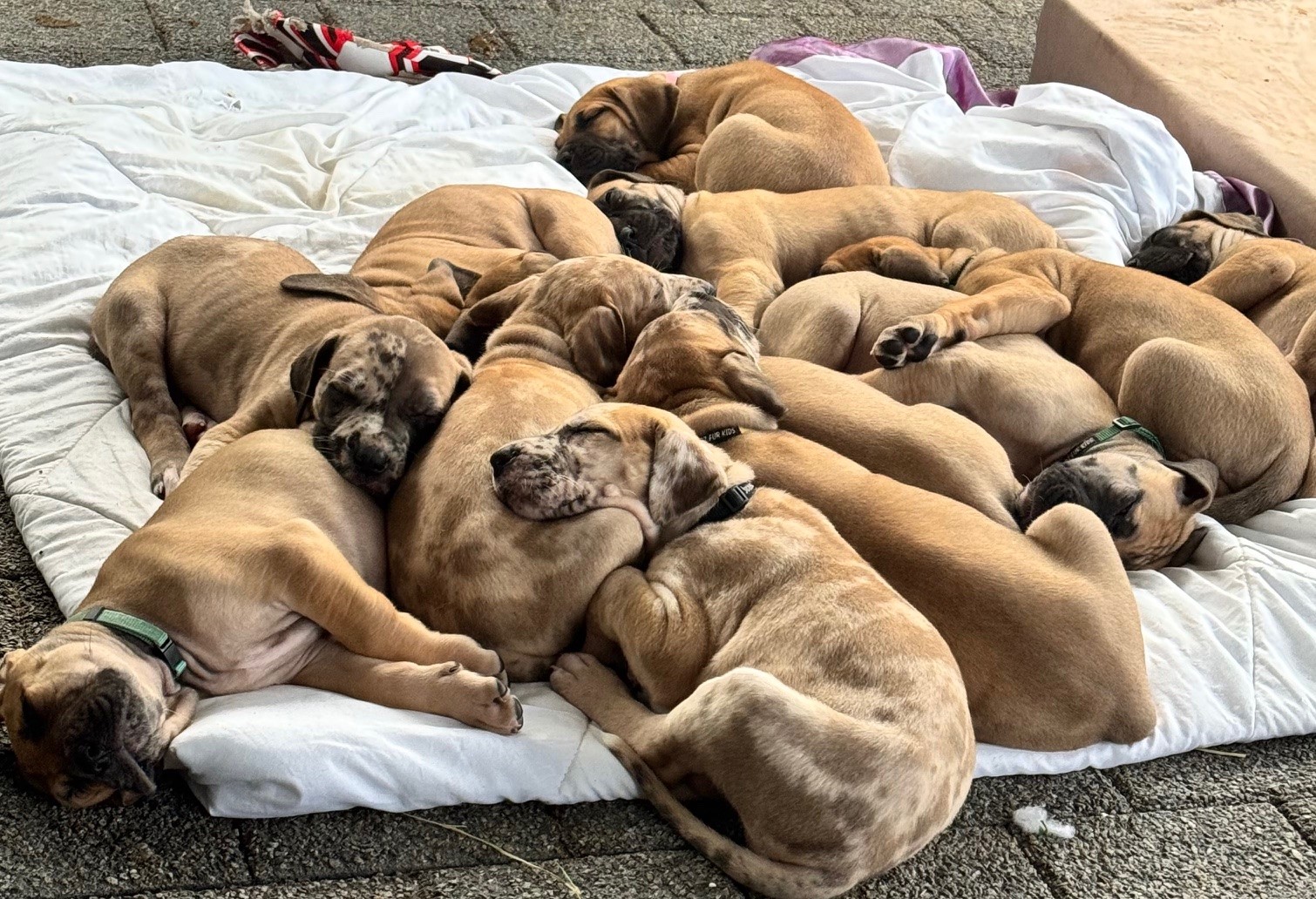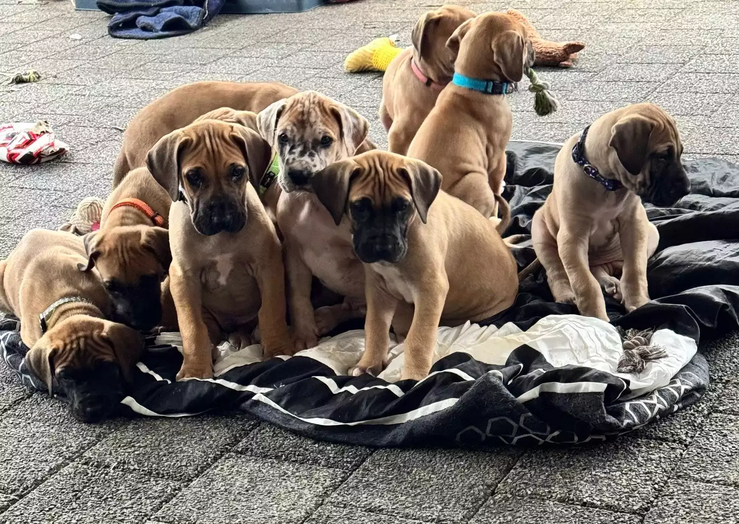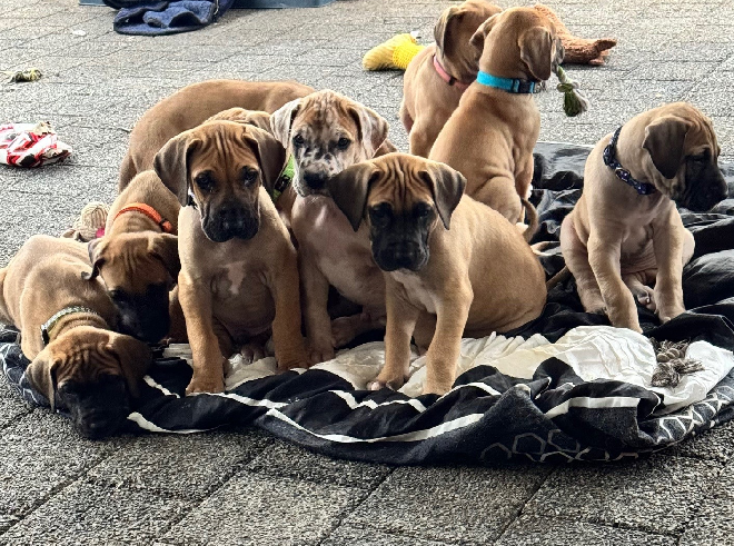 Zenyatta Great Danes proudly announce our gorgeous new litter of puppies. We have 9 beautiful females and 3 strong males available in a variety of stunning colours, including black mask fawn, fawnequin, and merle. All pups have been thoroughly vet checked, wormed, vaccinated, and microchipped to ensure they are healthy and ready for their new families. They will not be available to leave until after the 8/8/25, giving them time to grow and develop. Both parents are registered, DNA tested, and come from excellent lines with wonderful temperaments. Raised in a loving environment, these pups are well-socialised and will make loyal, affectionate companions. Serious enquiries welcome—secure your puppy now.