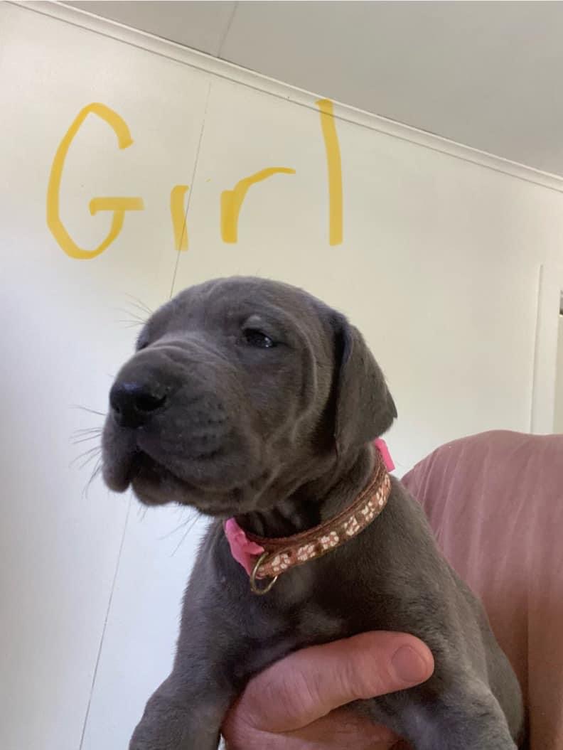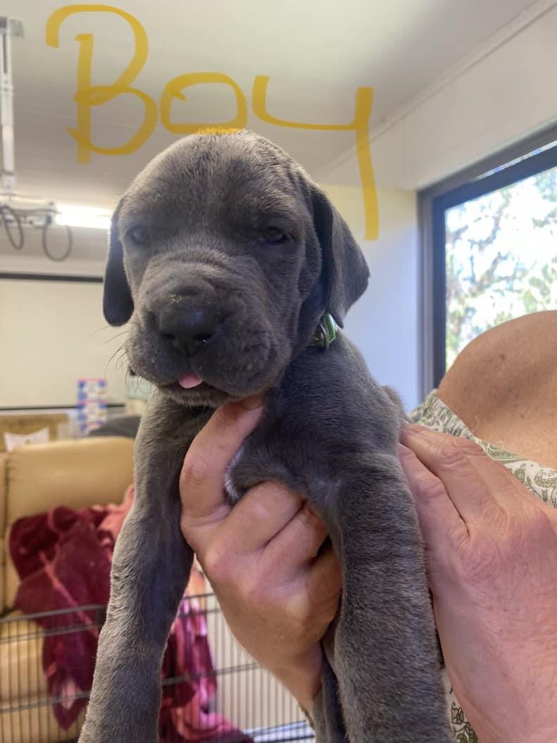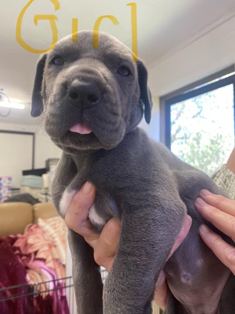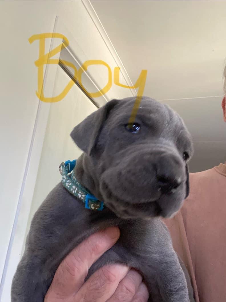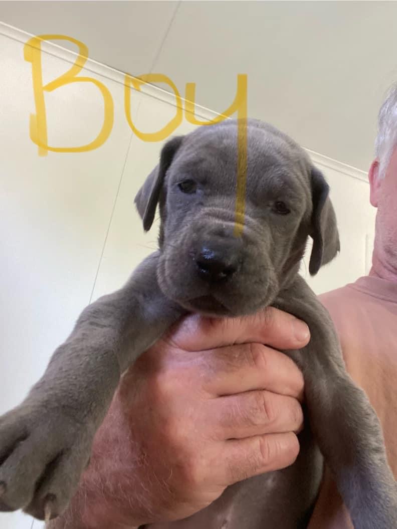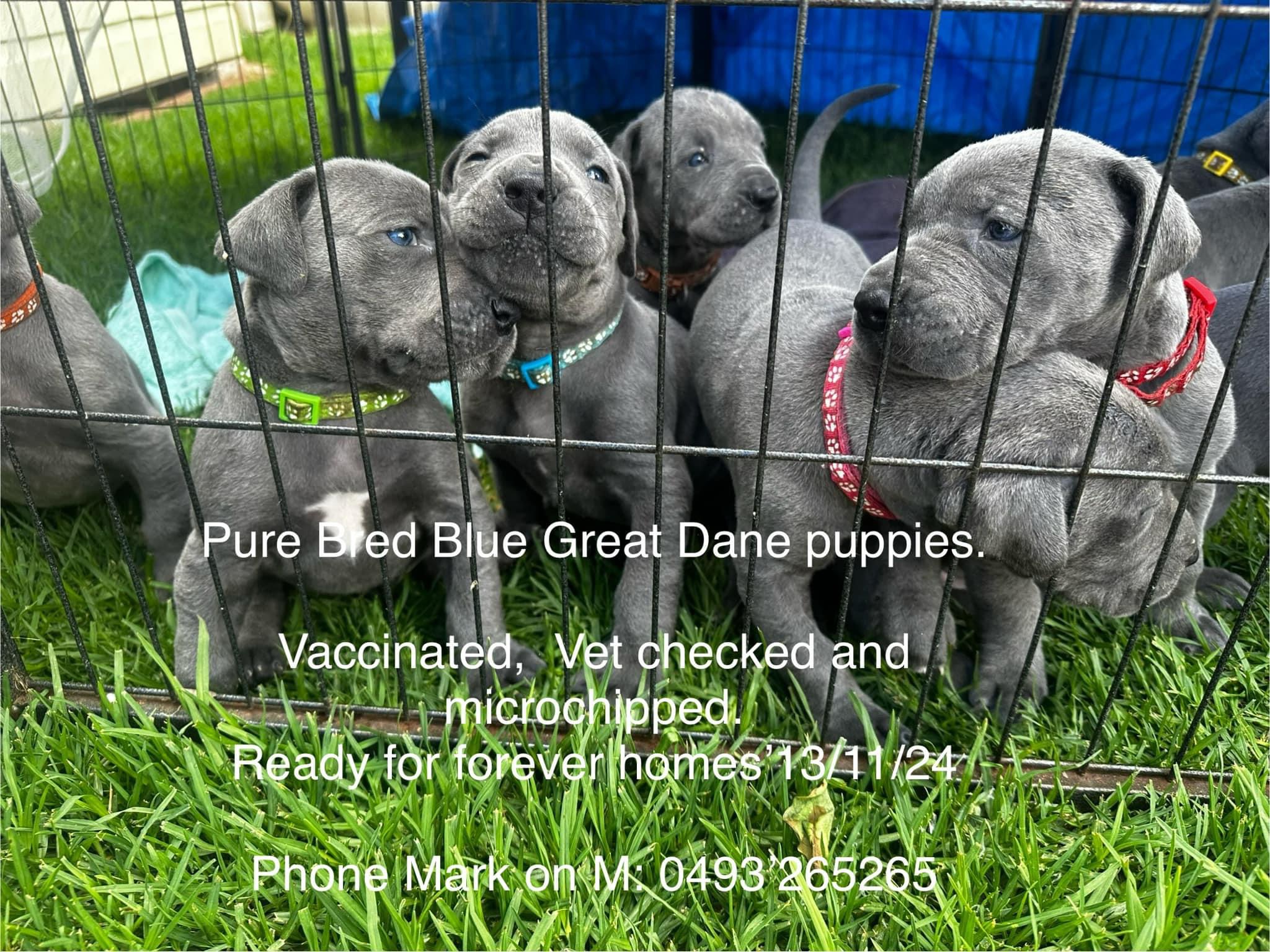 We have 9 stunning blue Great Dane pups searching for their forever families—6 girls and 3 boys. Born on 13/9/24, they will be ready to leave for their new homes from 8/11/24. Each puppy will be wormed, vaccinated, microchipped, and fully checked by a vet before they go, ensuring they are strong and healthy. These puppies have been raised in a family environment with lots of attention and early socialisation, making them well-adjusted and affectionate. Great Danes are known for their loyal and gentle nature, as well as their impressive size, so they need space and dedicated owners. Enquiries are welcome now to secure one of these special pups before they’re all taken.