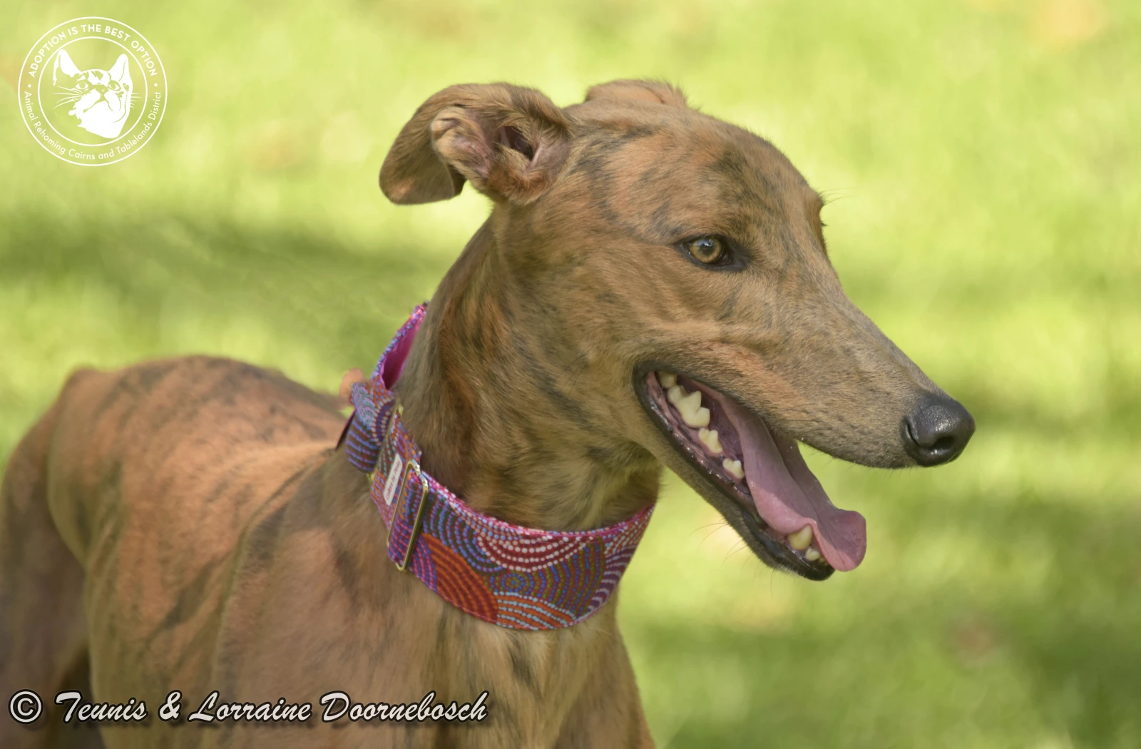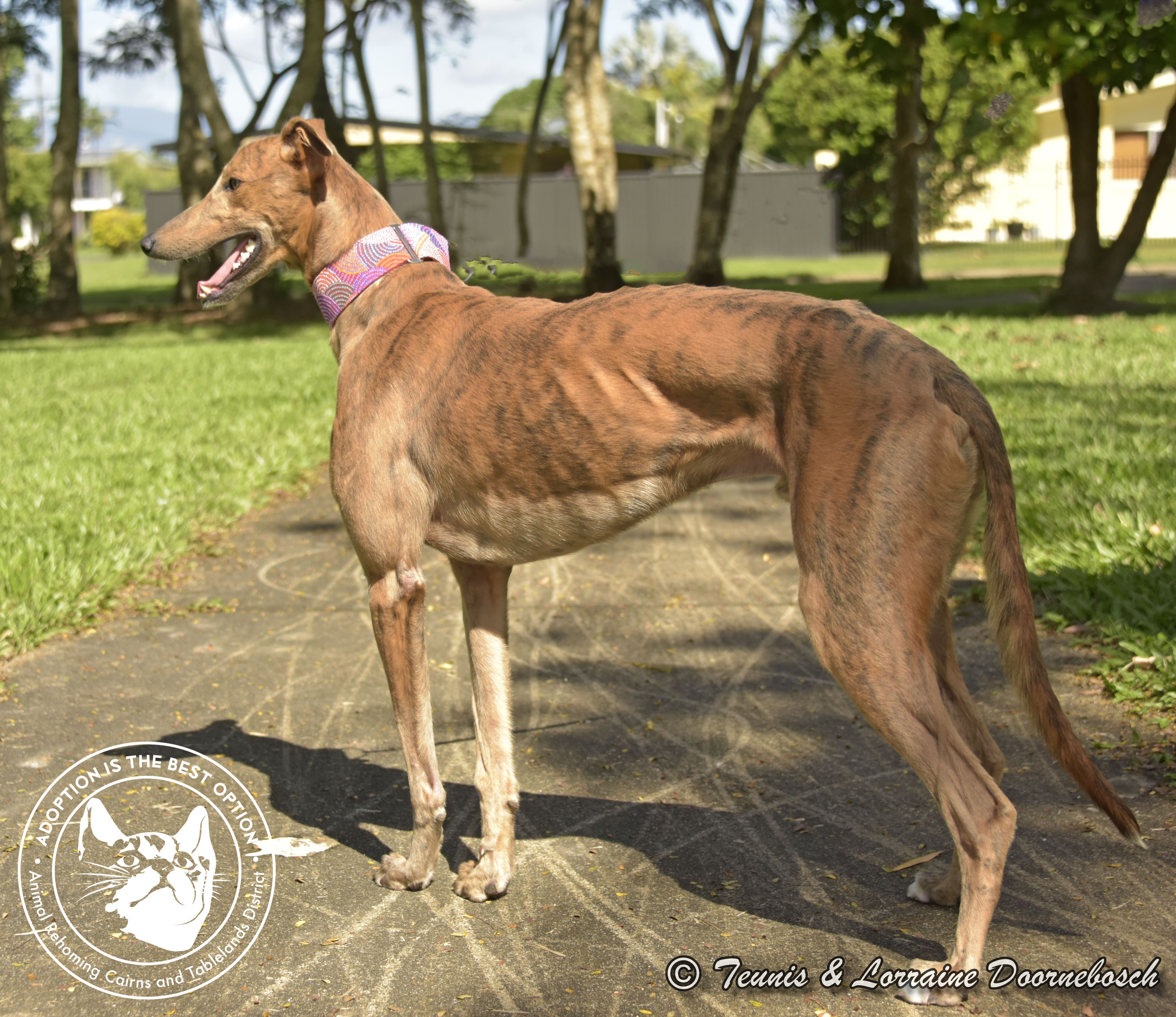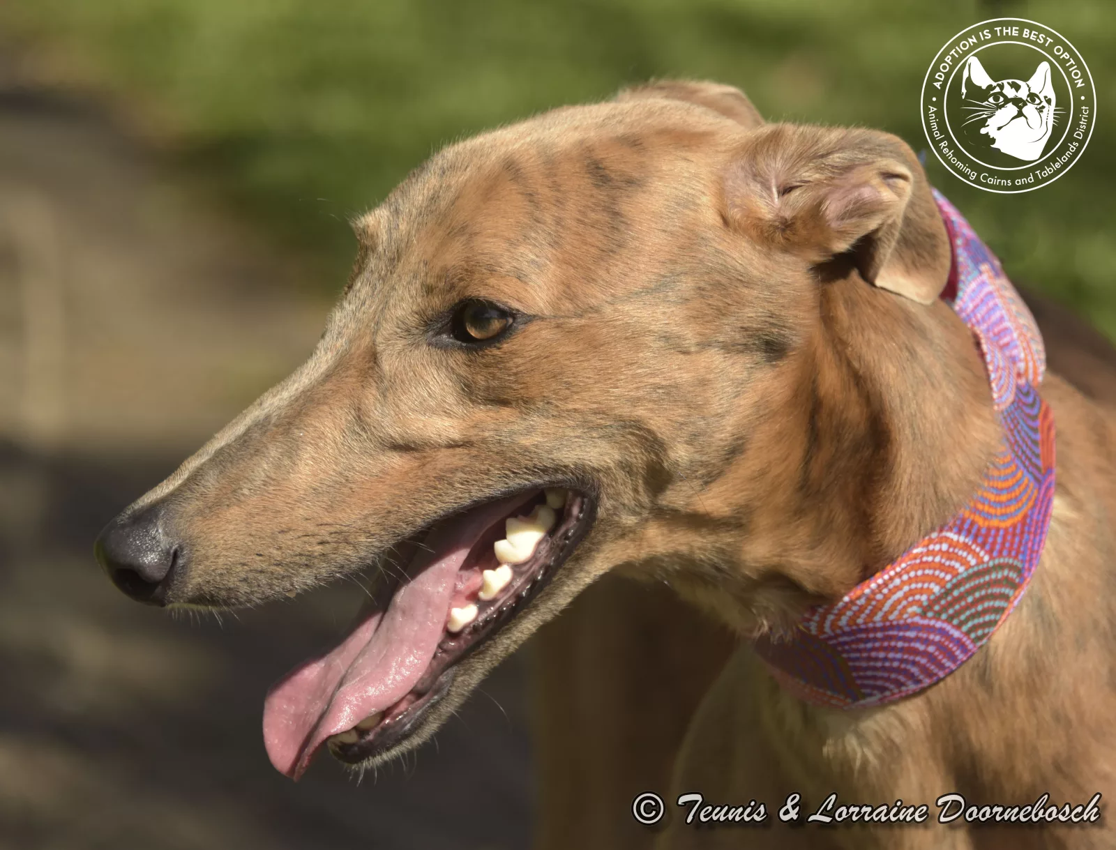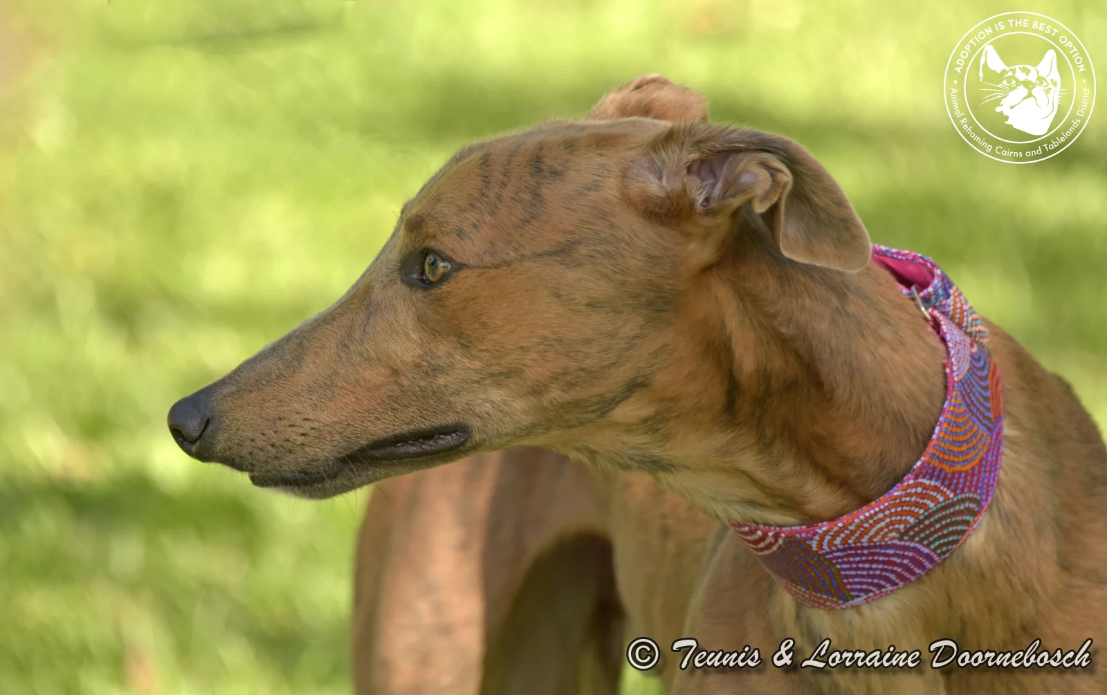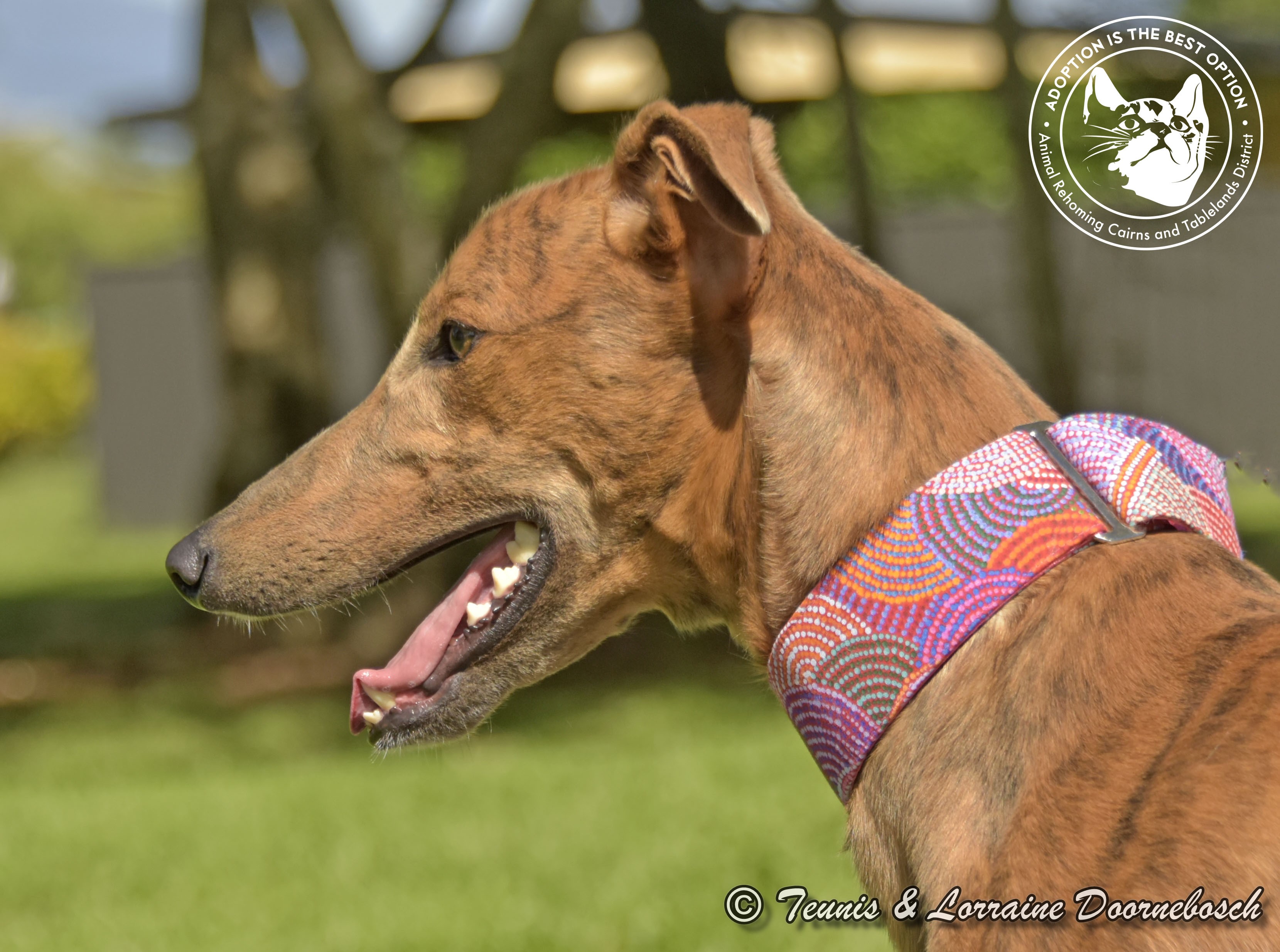 Well, apart from being drop dead gorgeous, Bailey is a very happy chappy who will fit into any family environment. Bailey is great with other dogs and even cat friendly. His placid, but playful nature, will add to the joy of sharing your life with him. Bailey has been well socialised having spent time indoors with a little Dachy and resident cats before coming to us to find his forever home. Bailey will come to his new home with a new coat and martingale collar.