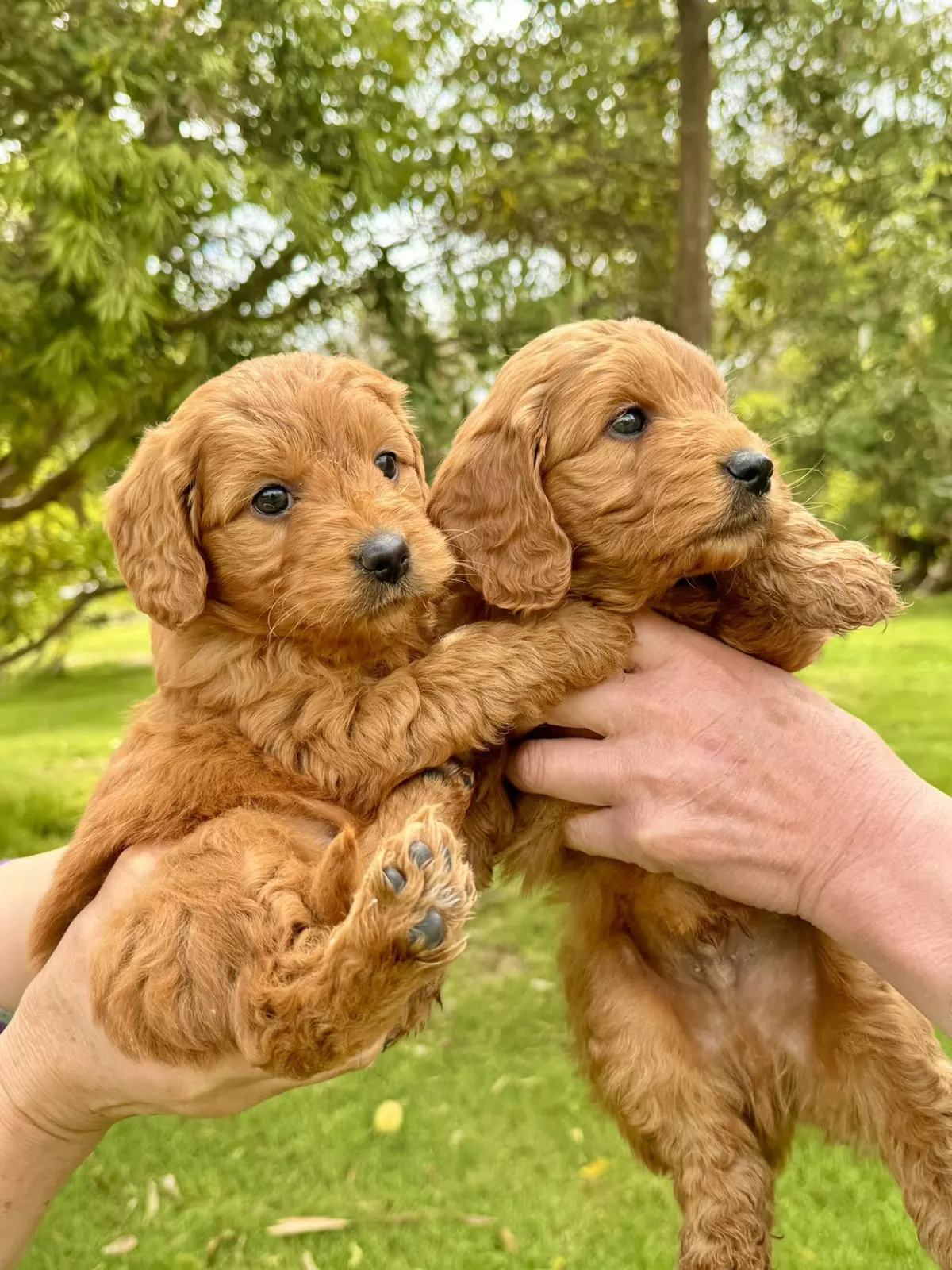 Appearance: Groodles can vary in appearance due to the mix ratio and genetic variations, but they are typically medium to large-sized dogs with charming looks. They have dense, often curly or wavy coats that come in various colors, including gold, cream, red, chocolate, and more.