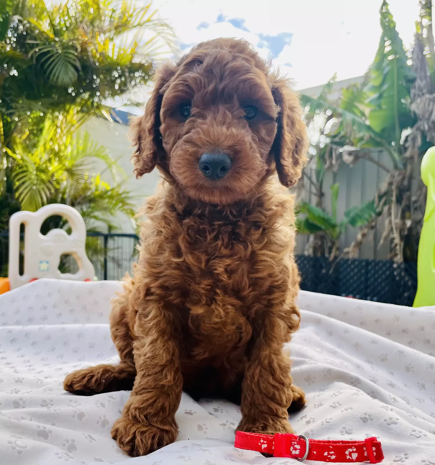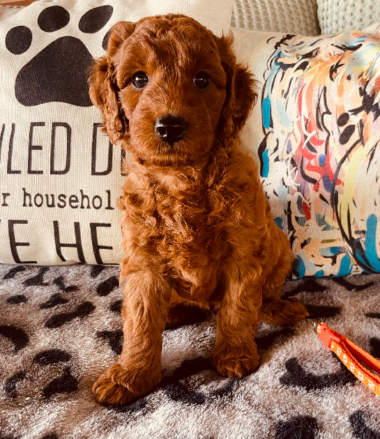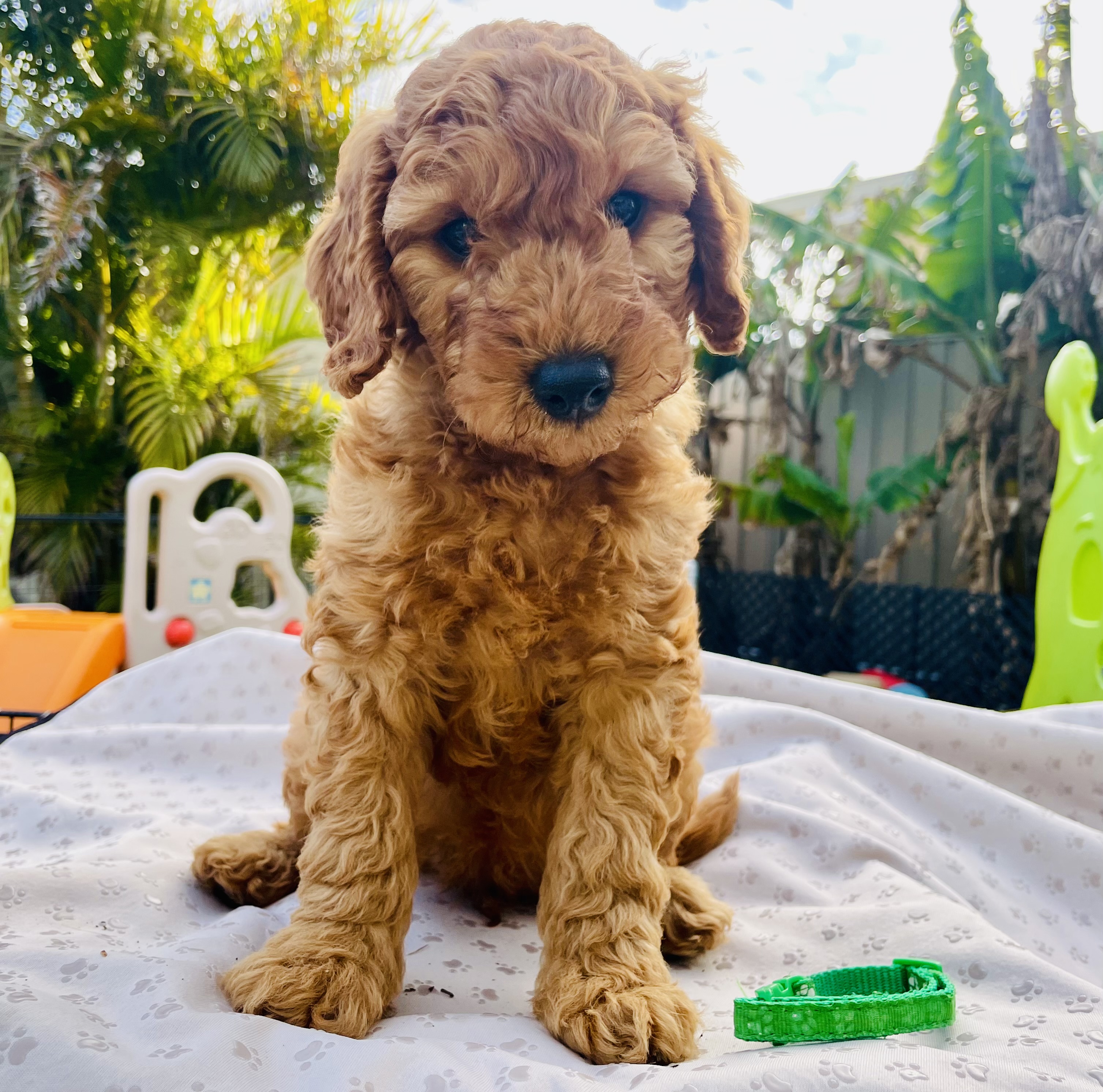 Pups will be temperament tested so you can find the perfect fit, whether that be a new family pet or therapy dog. Mum is an 18kg F1 Irish Oodle with an absolutely beautiful nature, she is an absolute sweetheart. She Loves her family cuddle time more than anything. Playing fetch is her ultimate fun time and she’ll drop it straight back into your hands. Dad is a handsome 6kg red pure Poodle with a happy, friendly and gorgeous personality, he is a very sweet and calm natured boy. These two have been specifically chosen for their outstanding personalities and temperaments.