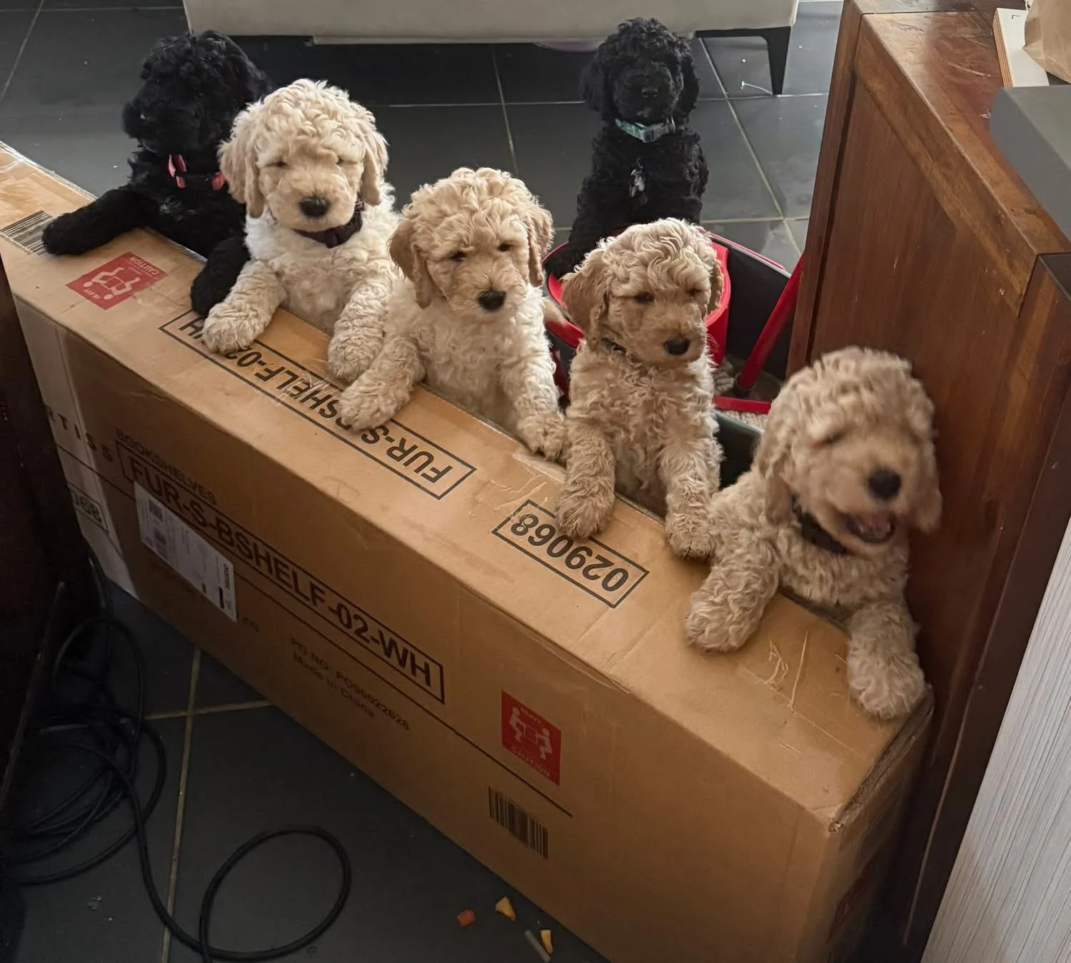 I would like to introduce you to our gorgeous F2 Purebred Groodle puppies of Sharnie 20kg and Wallace 28kg, born on Friday 28th May. They are now 7 weeks old and will be ready for their forever homes on Friday. They will come with first immunisations, microchipped, vet checked, they have been wormed every 2 weeks from birth and from next week will be protected from fleas, heartworm and worms. There is 2 boys $2500 each and 4 girls $2000 each, their hair/wool is hypoallergenic which means they produce less dander and shedding, great for those with allergies.