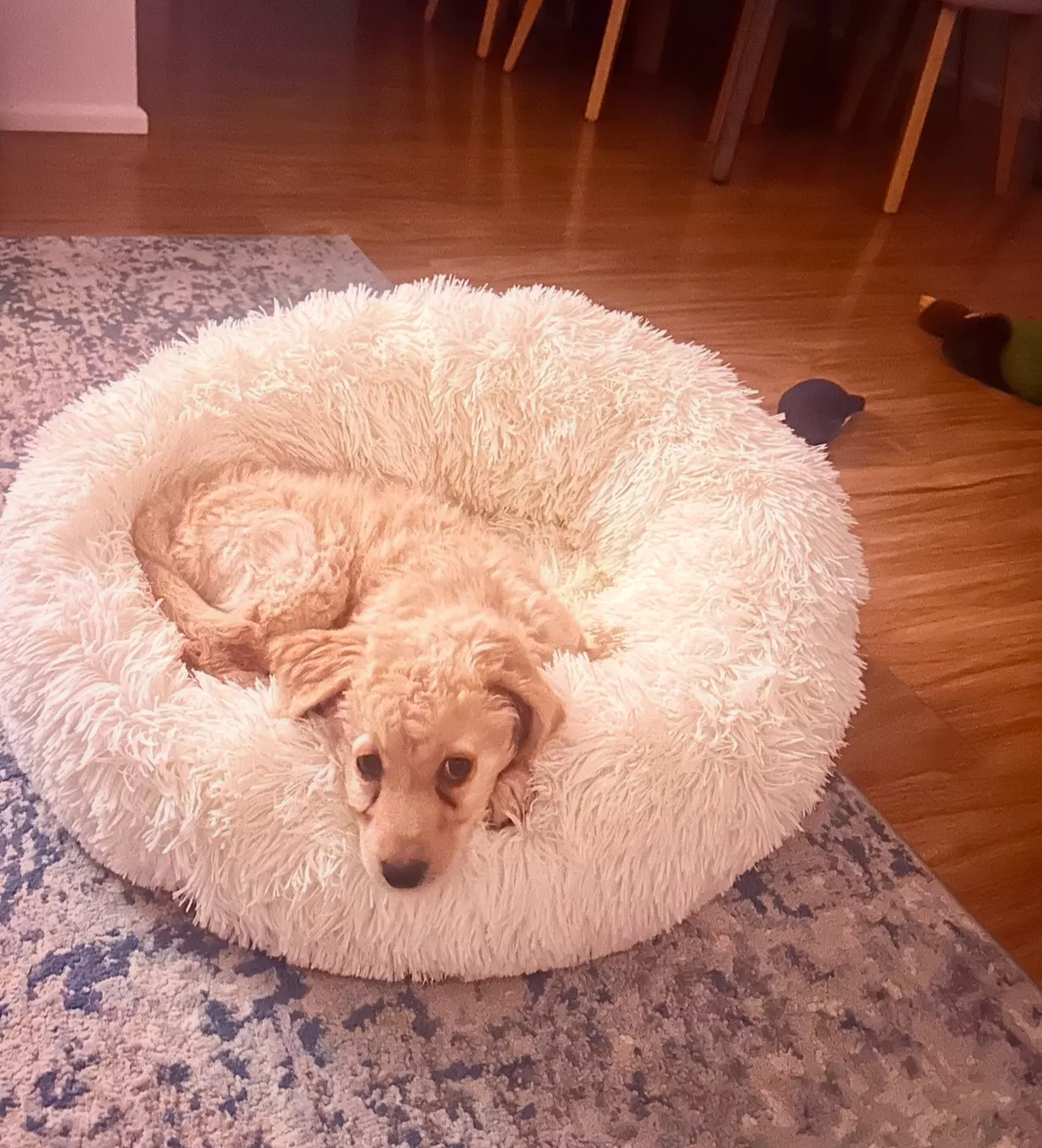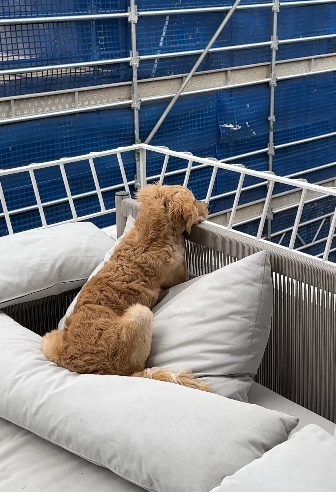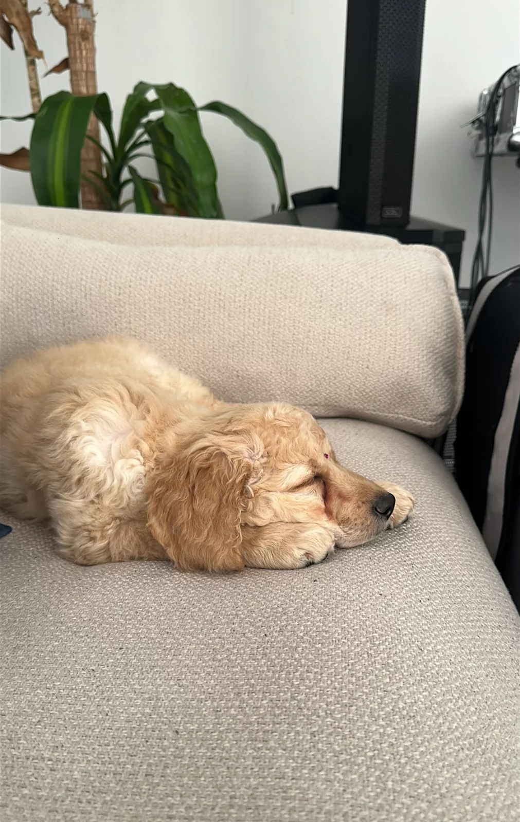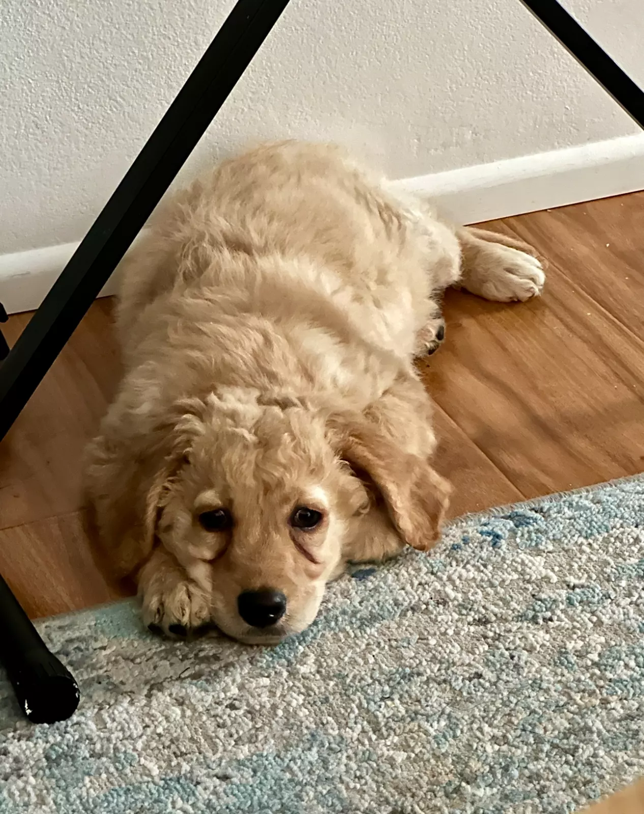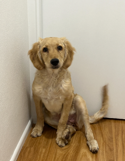 We are looking for a new home for our dog Skye, an 8-month-old Groodle who is very gentle, affectionate, intelligent, and full of energy.