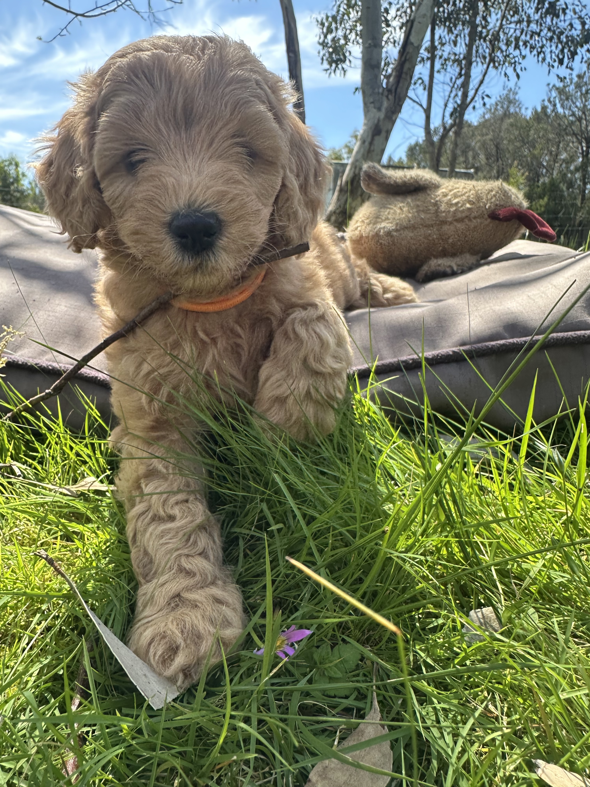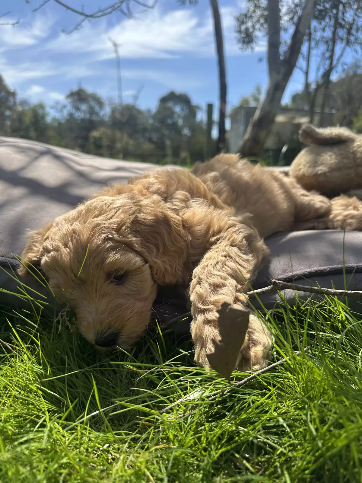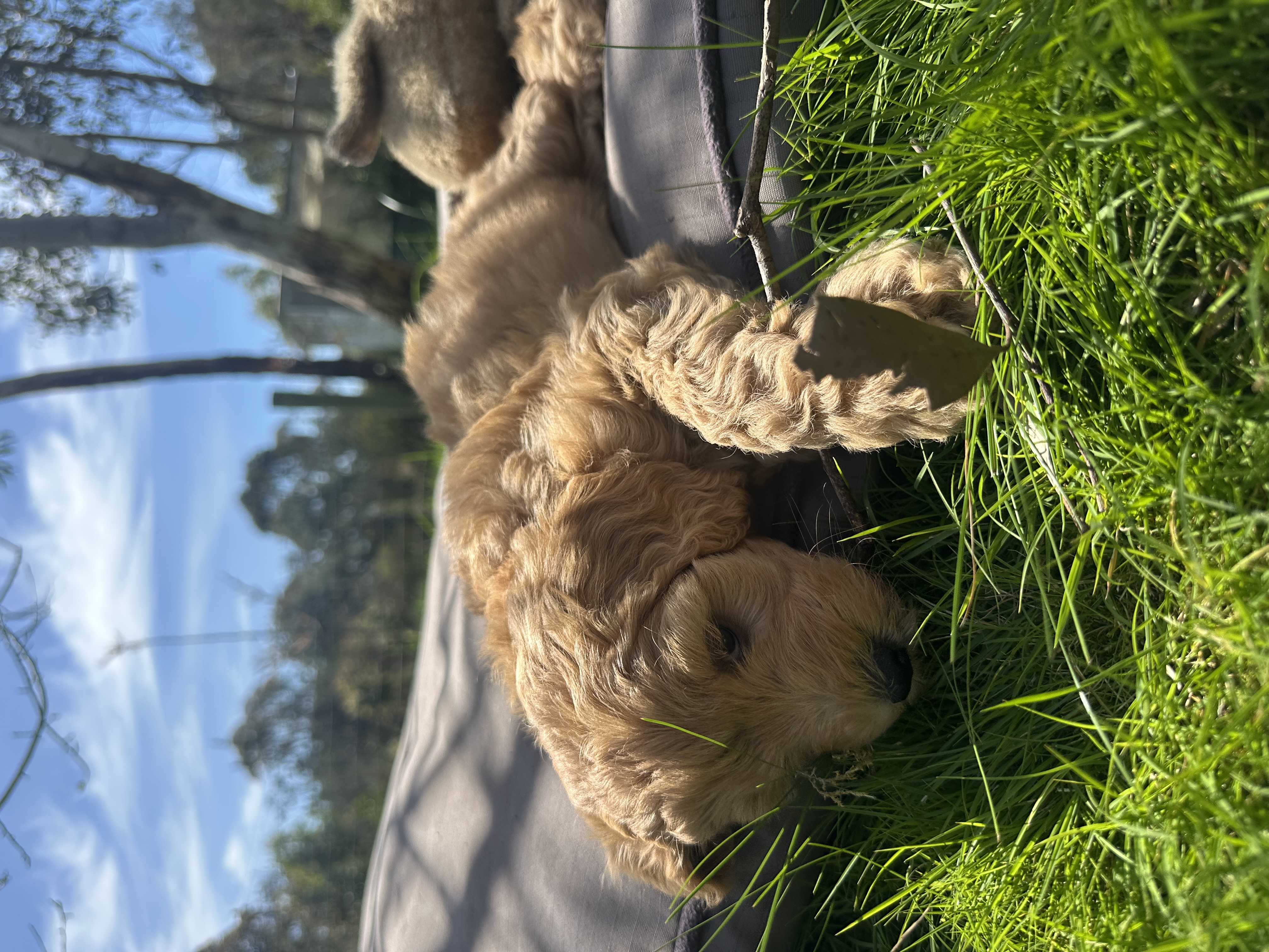 🐶 Mr Light Blue – Cream in colour with a soft wavy coat. He’s an affectionate little boy who adores attention and snuggles.