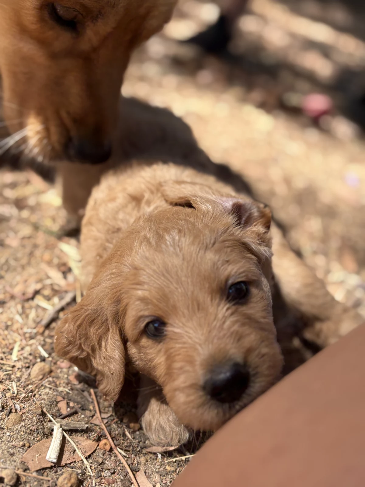 The parents are our family dogs and can be seen - Raia is our Golden Retriever mum and Eddie is our Standard Poodle dad. Both have clear full breed Orivet testing.