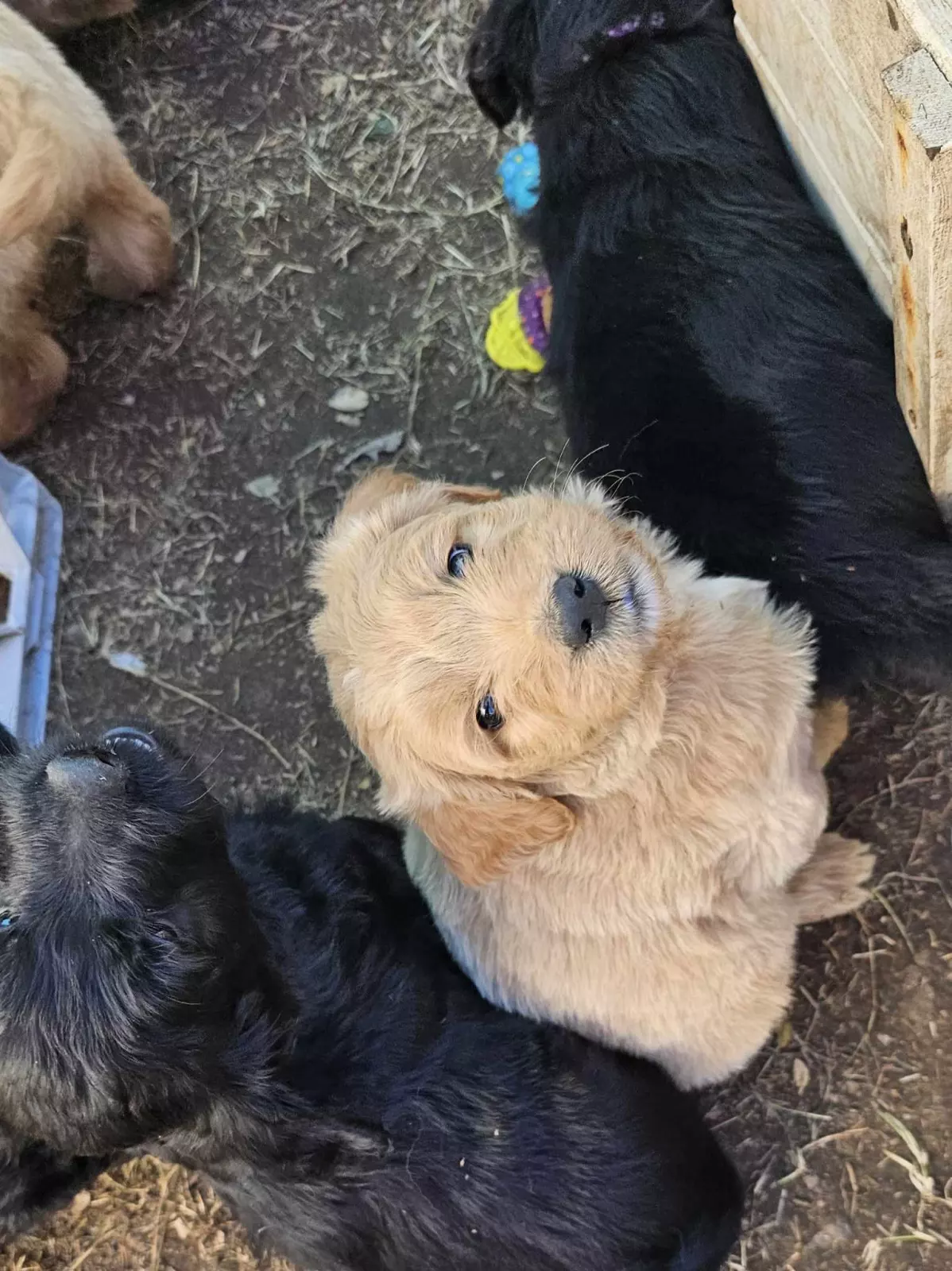 First litter for mum (Skylar) who is a Therapy dog, Dad is a working assistance dog. This was a planned litter created via TCI (doggy IVF) and born via C-section. Mum is a pure bread Golden retriever with a short sleek coat. Dad is a pure bread black standard poodle. Both parents have been health checked before breeding.