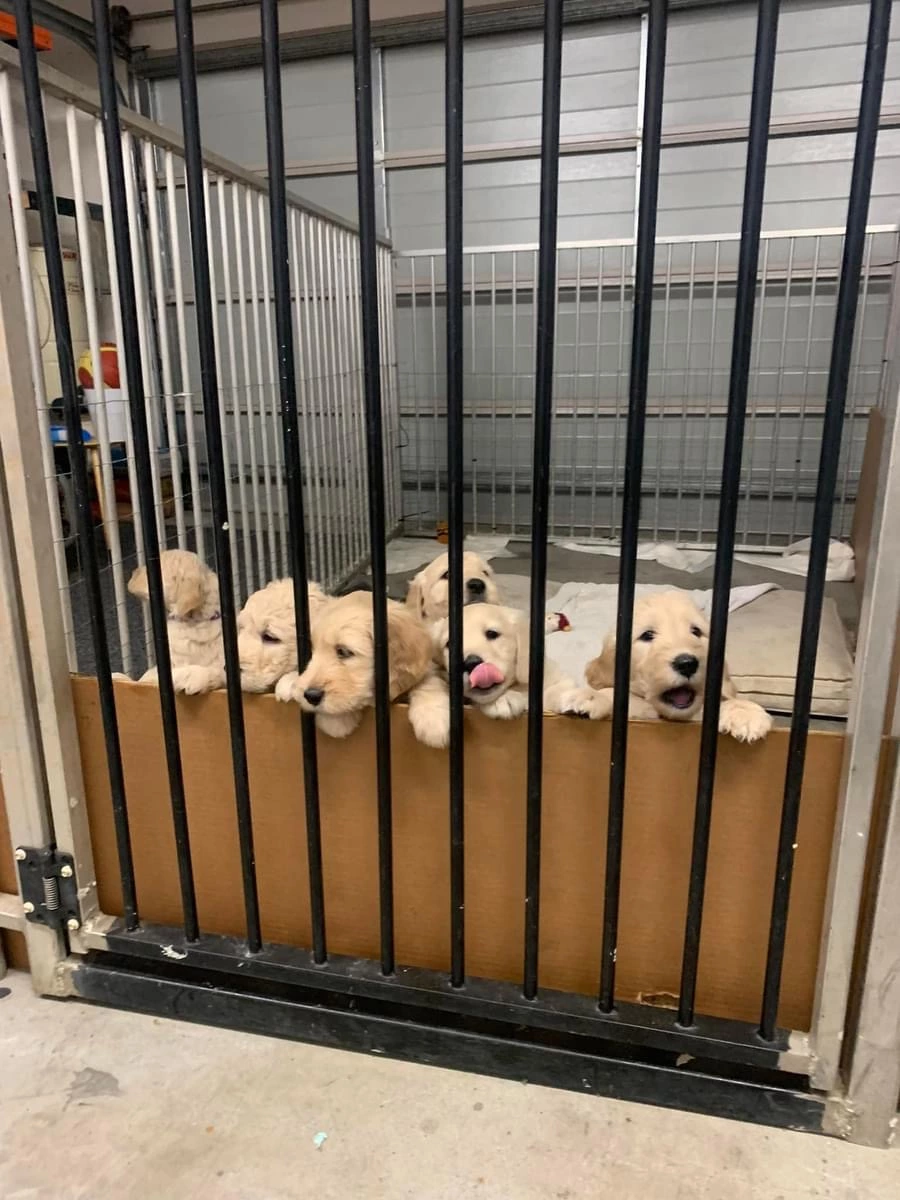 Dogs have access to: warm bedding, water at all times, ample space to exercise, natural light