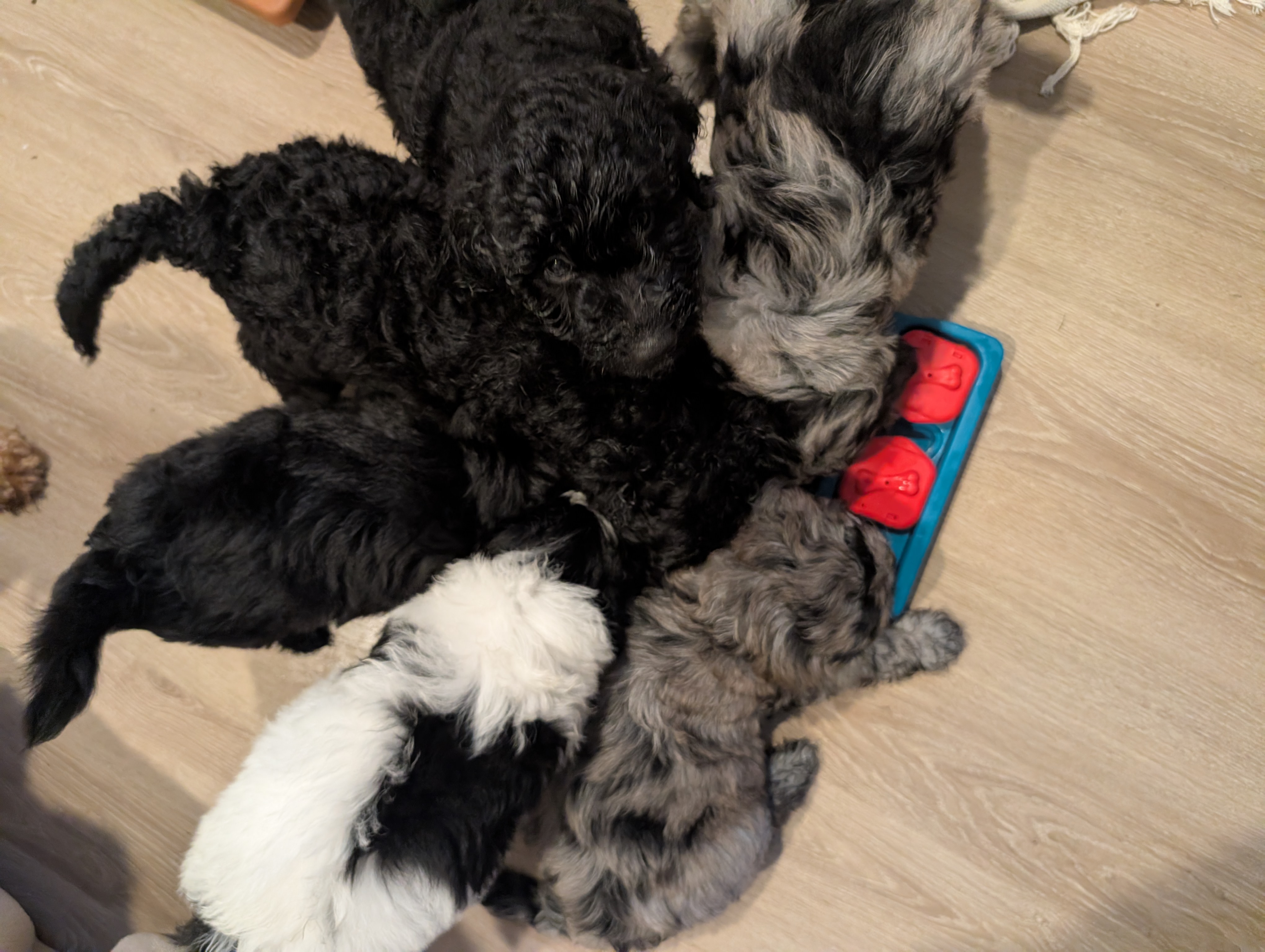 We have 2 beautiful Miniature Groodle puppies ready to go to their forever homes on the 16th of March. They are all showing signs of having excellent temperaments and each have their own unique personality.