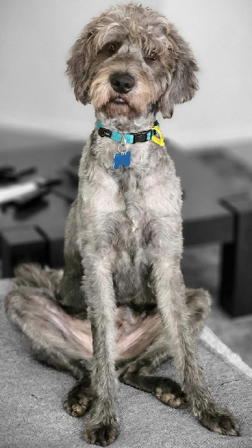Hi. Scooby is a male groodle. 4 years old and very lovely and well behaved boy.