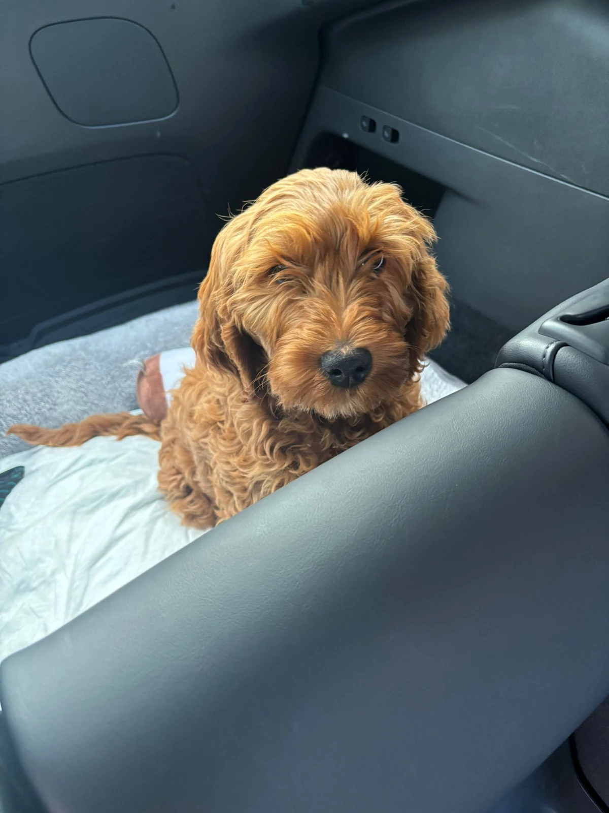 Our adorable red F1b Groodle (Golden Retriever x Poodle) puppy is looking for its forever family!