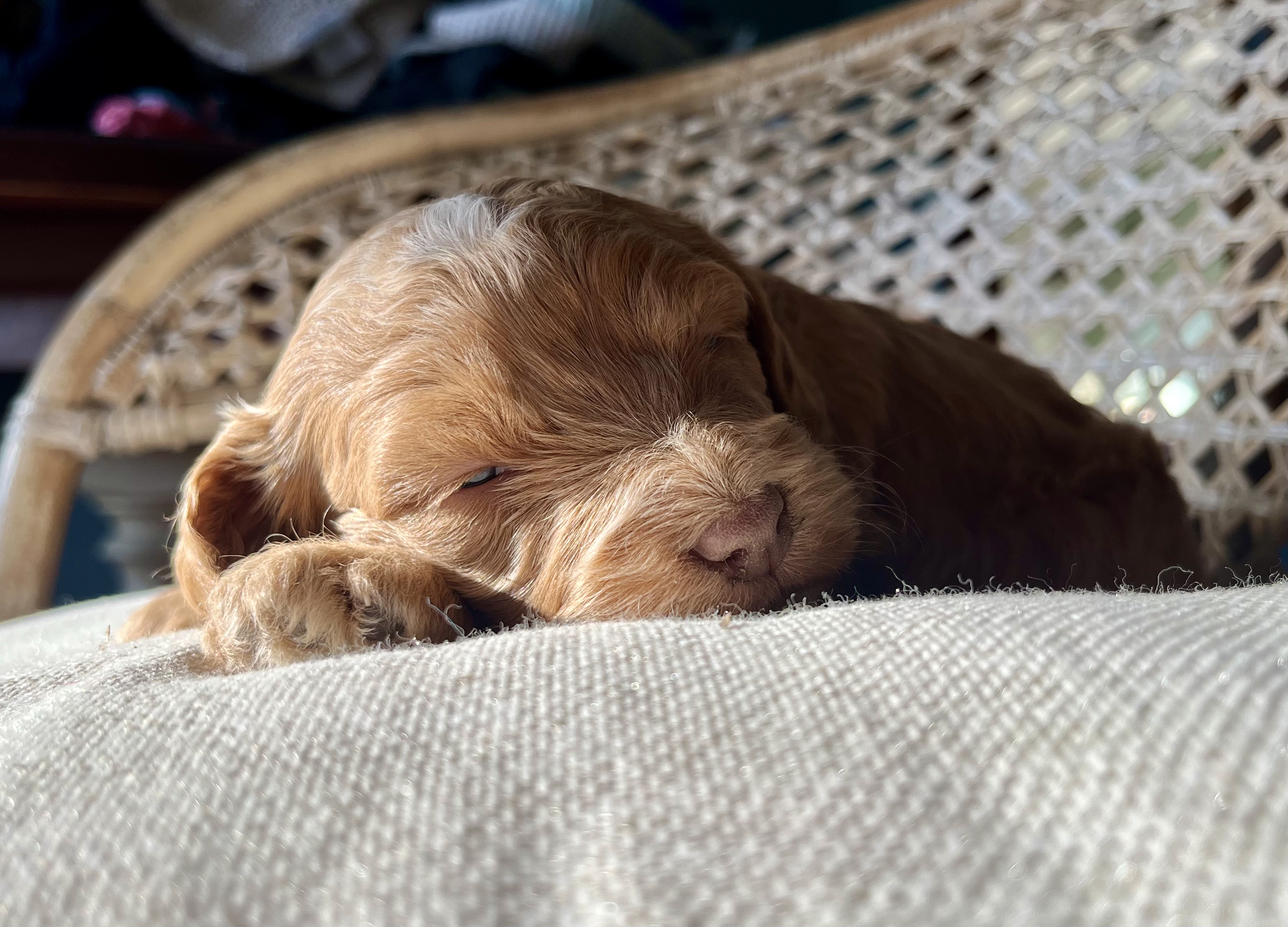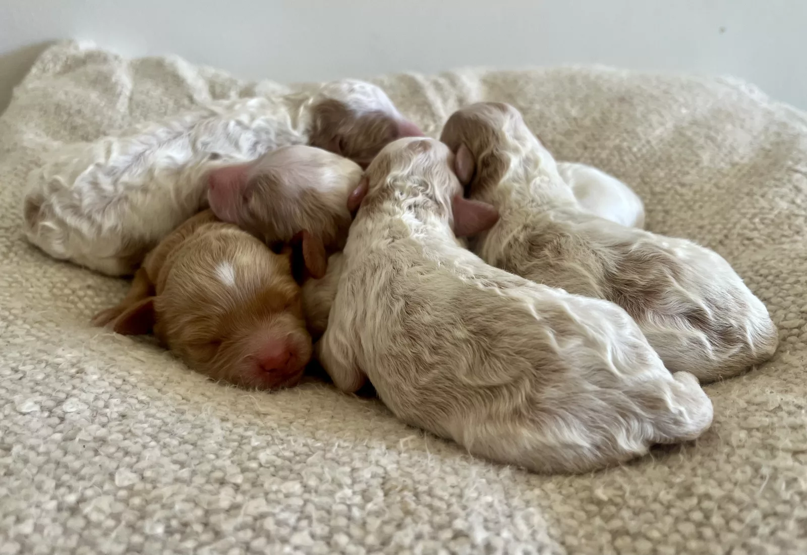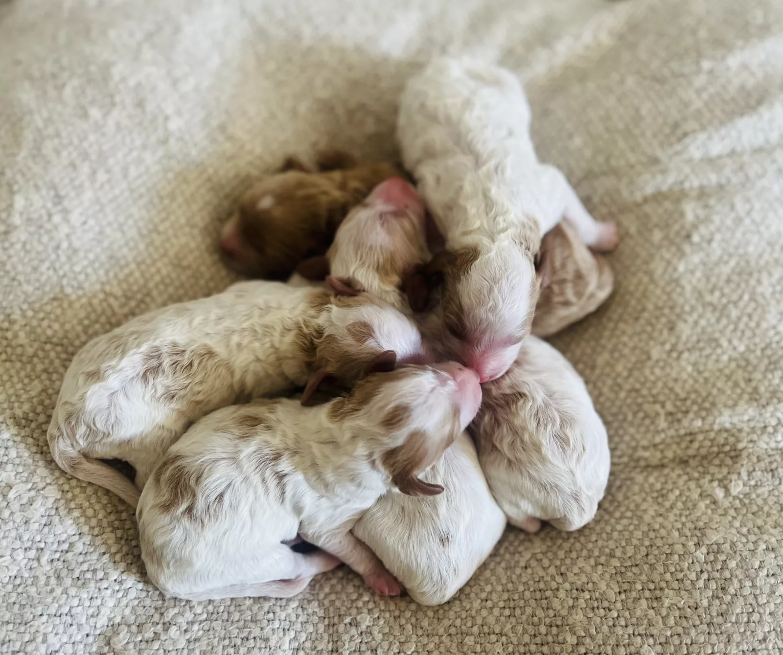 Mom is a groodle, dad is a Cavoodle. Pups are expected to mature at appr. 9-13kg, 30cm shoulder heigth.