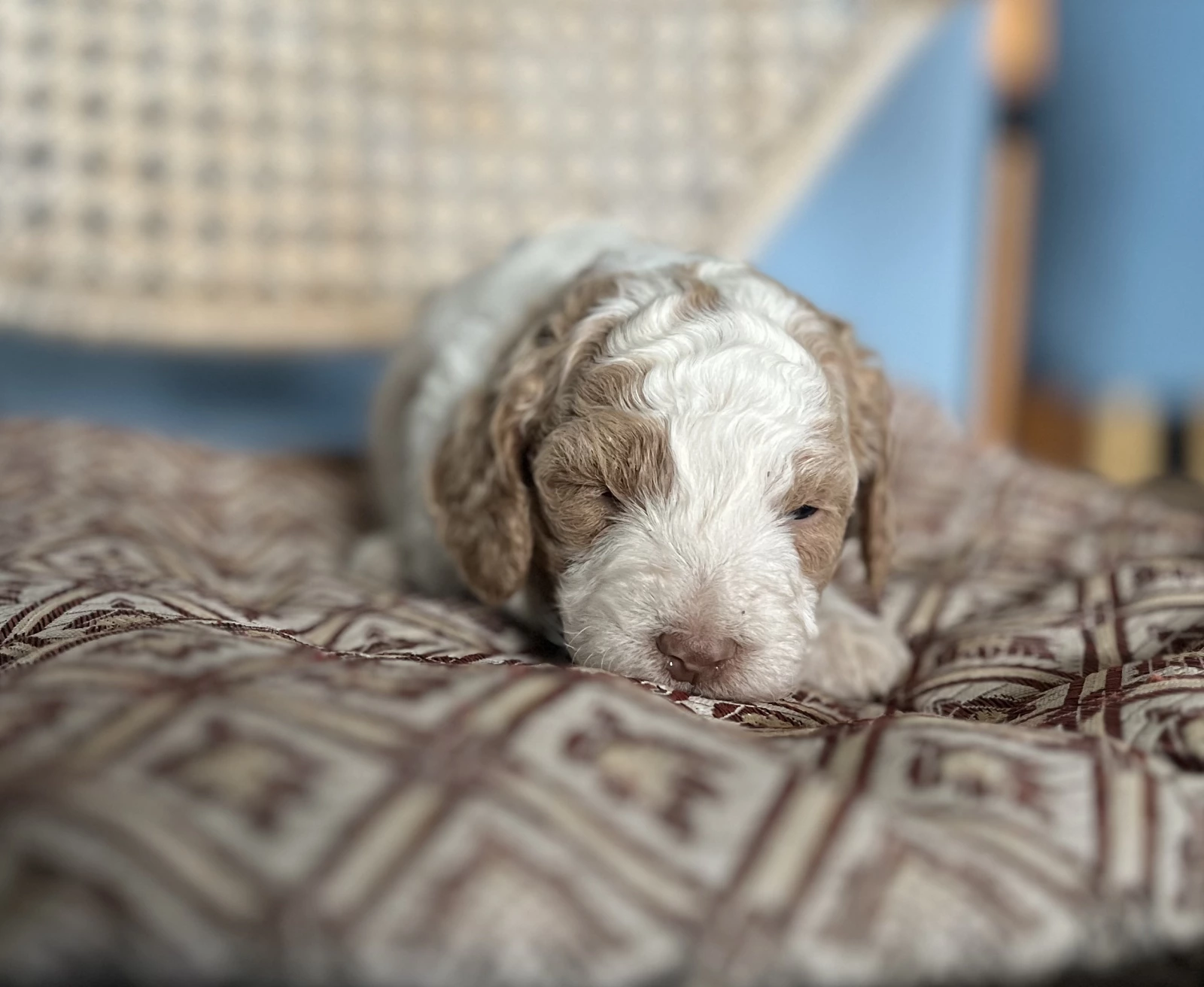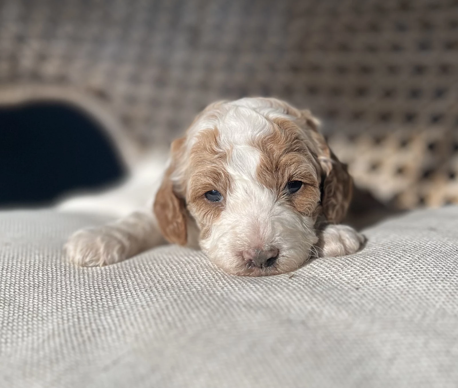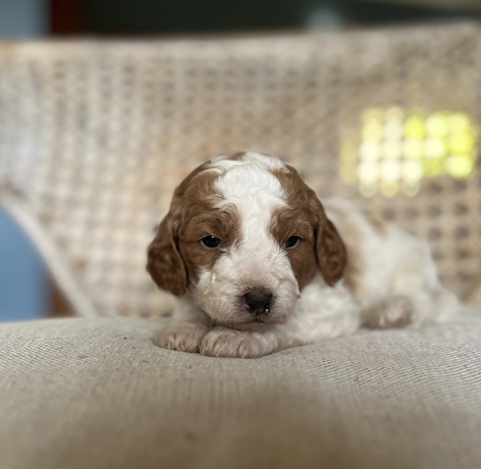 Mom is a groodle, dad is a Cavoodle. Pups are expected to mature at appr. 9-13kg, 30cm shoulder heigth.
