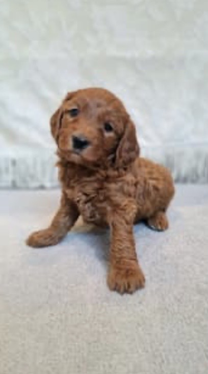 F1n mini Groodles are a wonderful combination of 25% Golden Retriever and 75% miniature Poodle this cross are all a fleece-wool coat that is nealy completely non shedding and hypoallergenic. They are intelligent, easy to train, great with kids and other animals, and will quickly become beloved member of your family.