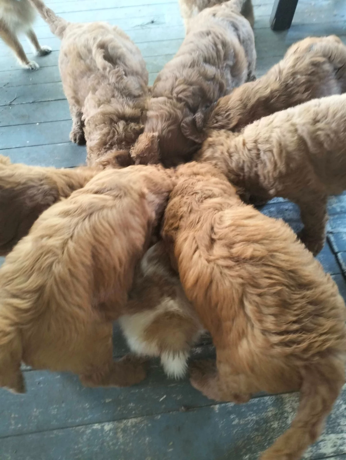 We have stunning large Groodles available for adoption to loving homes! This litter includes three girls and three boys, all raised in a family environment with other dogs, cats, kittens, and chickens. These loving puppies adore cuddles and playtime, making them excellent companions. Mum is a beautiful red standard pedigree poodle with papers, and Dad is a standard Groodle with a cream poodle dad and a Golden Retriever mum. These puppies are expected to be on the larger, fluffier side with low to no shedding, making them perfect for families seeking a hypoallergenic, affectionate dog. Contact us today to meet these sweet babies!