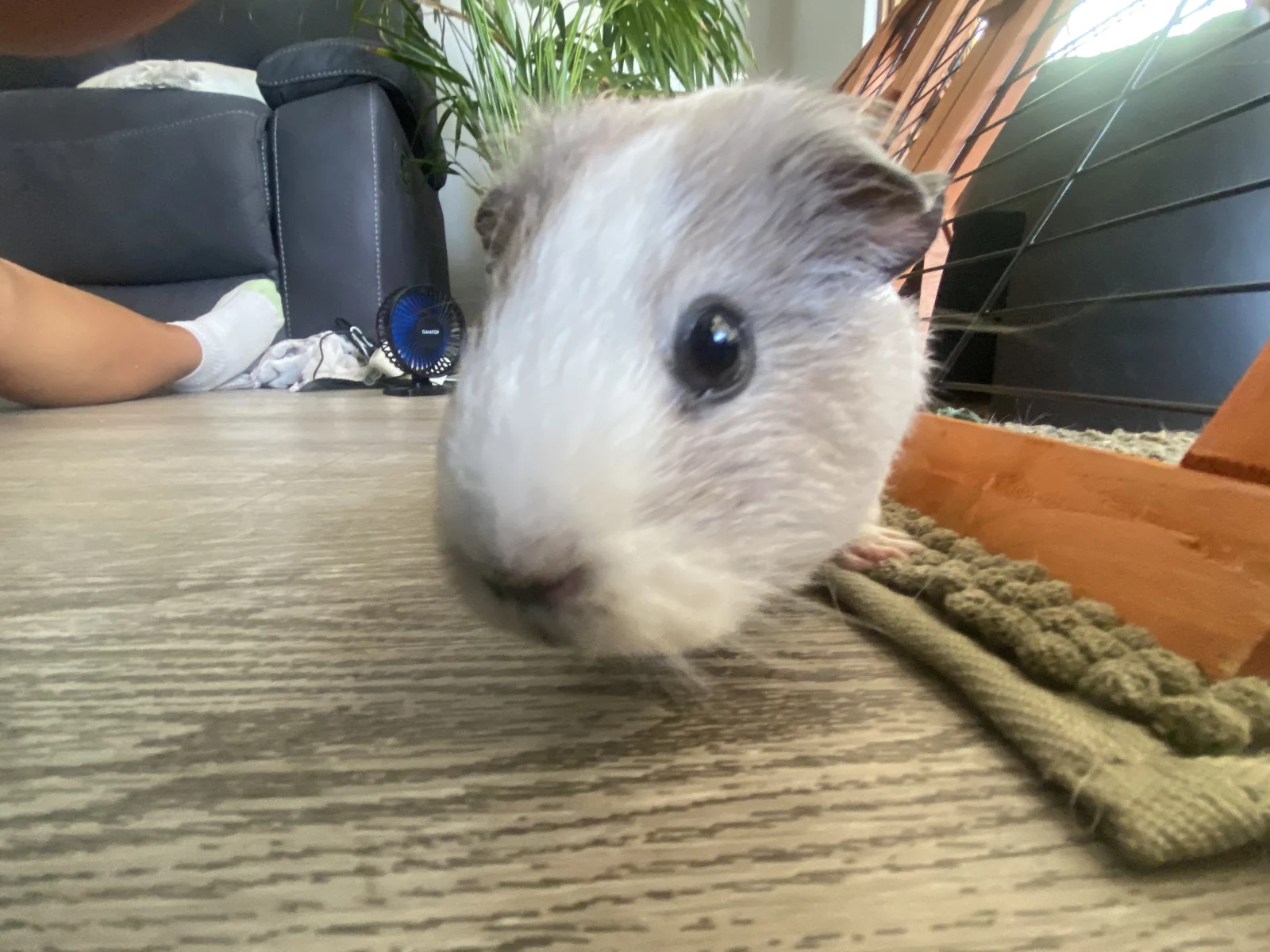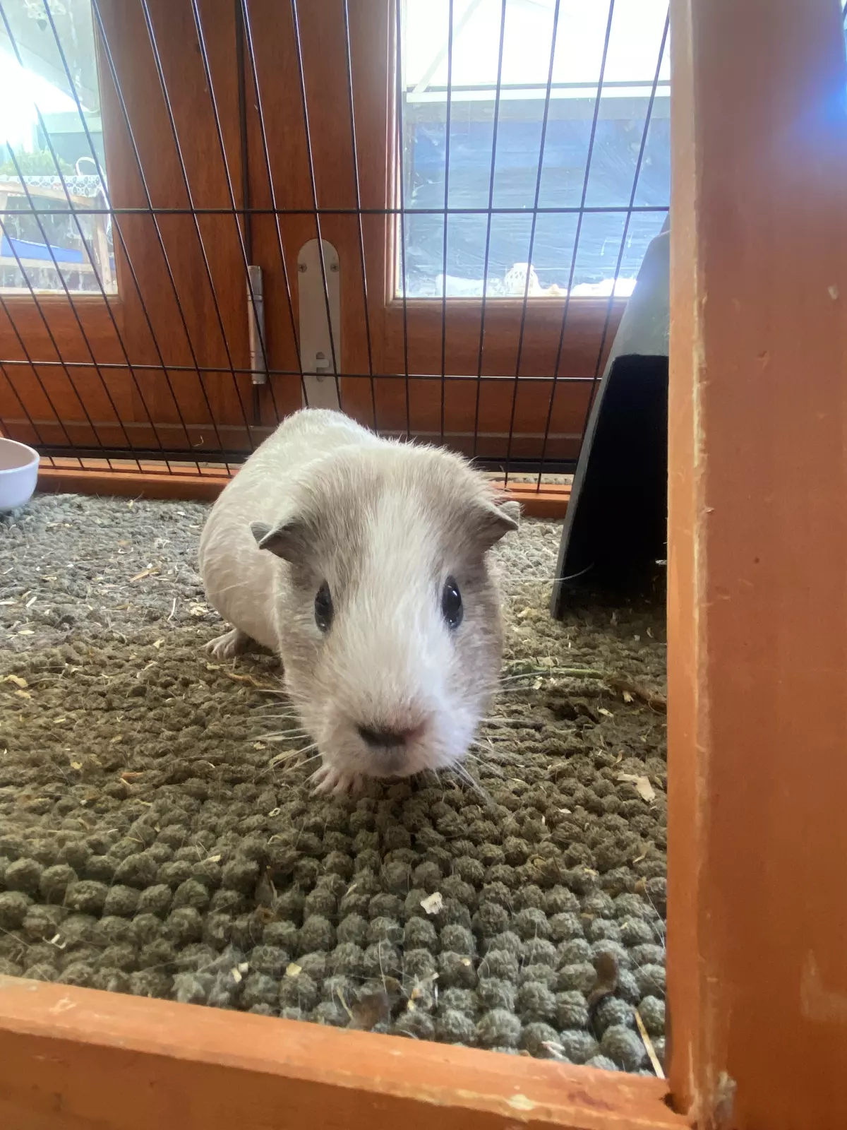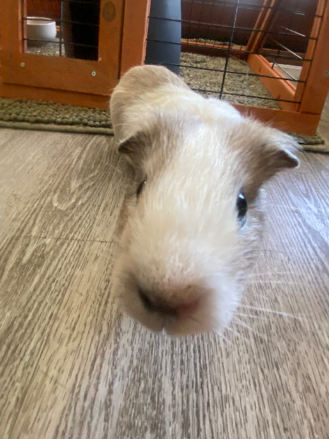 Stormy is a beautiful white and grey guinea pig who is very calm, gentle, and sweet natured. He may be a little shy at first, but once he feels safe he is very relaxed and easy to handle. He is looking for a loving home and ideally a buddy to keep him company, as guinea pigs are social animals. He especially loves cucumber and enjoys having space to explore.