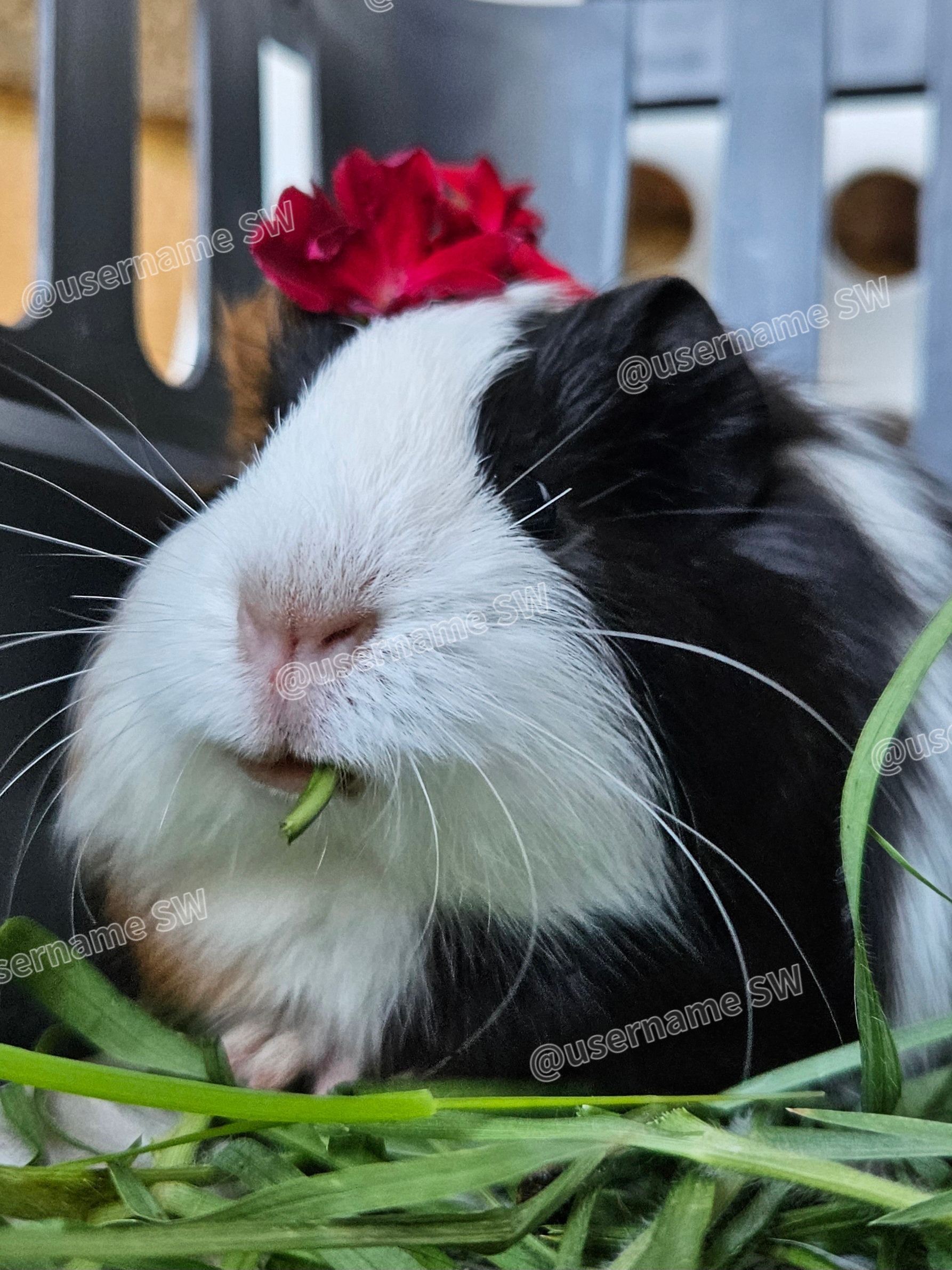 We'll provide a small paper box for transport, some hay, fresh grass, and a bit of guinea pig food to get you started
