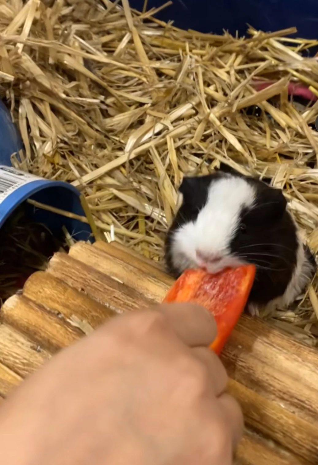 We feed them pellets in the morning and then feed them some veggies around 8pm.