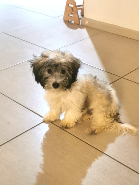 Black spots later on will fade and pups will be in white in colour as you groom them